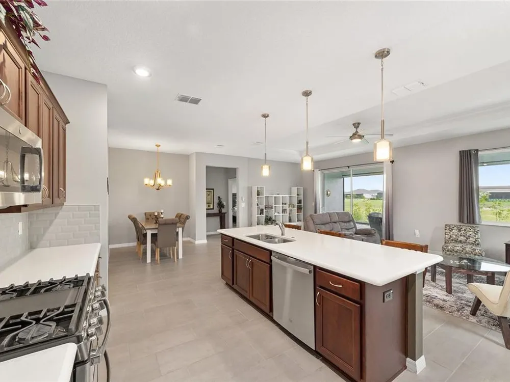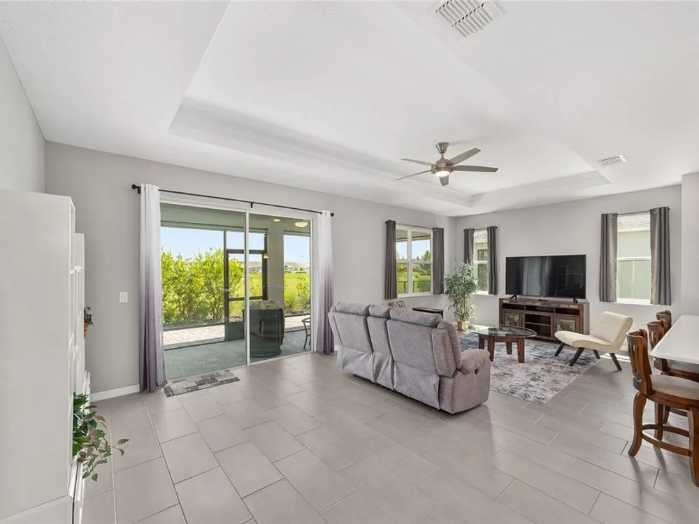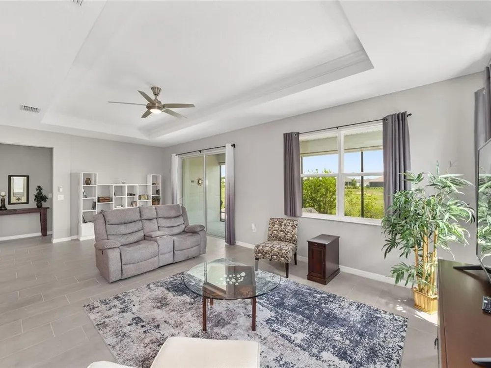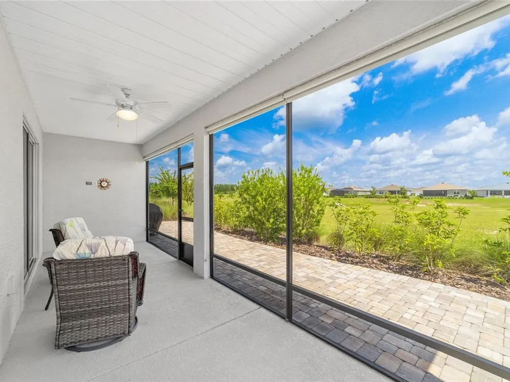 Welcome to this beautifully upgraded and furnished Sunflower model in the sought-after Weybourne Landing community. Featuring 3 bedrooms, 2 bathrooms, and a 2-car garage with a 4-foot extension, this home offers over $45,000 in builder upgrades and is situated on a premium privacy lot. The open layout showcases tile flooring throughout, tray ceilings in both the living room and primary suite, and a gourmet kitchen with bullnose quartz counters, designer backsplash, stainless steel appliances, and a gas range with dual oven and griddle. The primary suite includes a spacious walk-in closet with direct laundry access for convenience. Outdoor living shines with a screened lanai, solar shades, paver patio, and a grill with a dedicated gas line for grilling. Additional features include a whole-house surge protector, salt-free water softener, pre-wiring for a generator, and smart home technology with Ecobee, Ring, and Alexa devices. Enjoy resort-style community amenities such as a pool, pickleball courts, dog park, and mini golf in one of the area’s most desirable active adult neighborhoods.