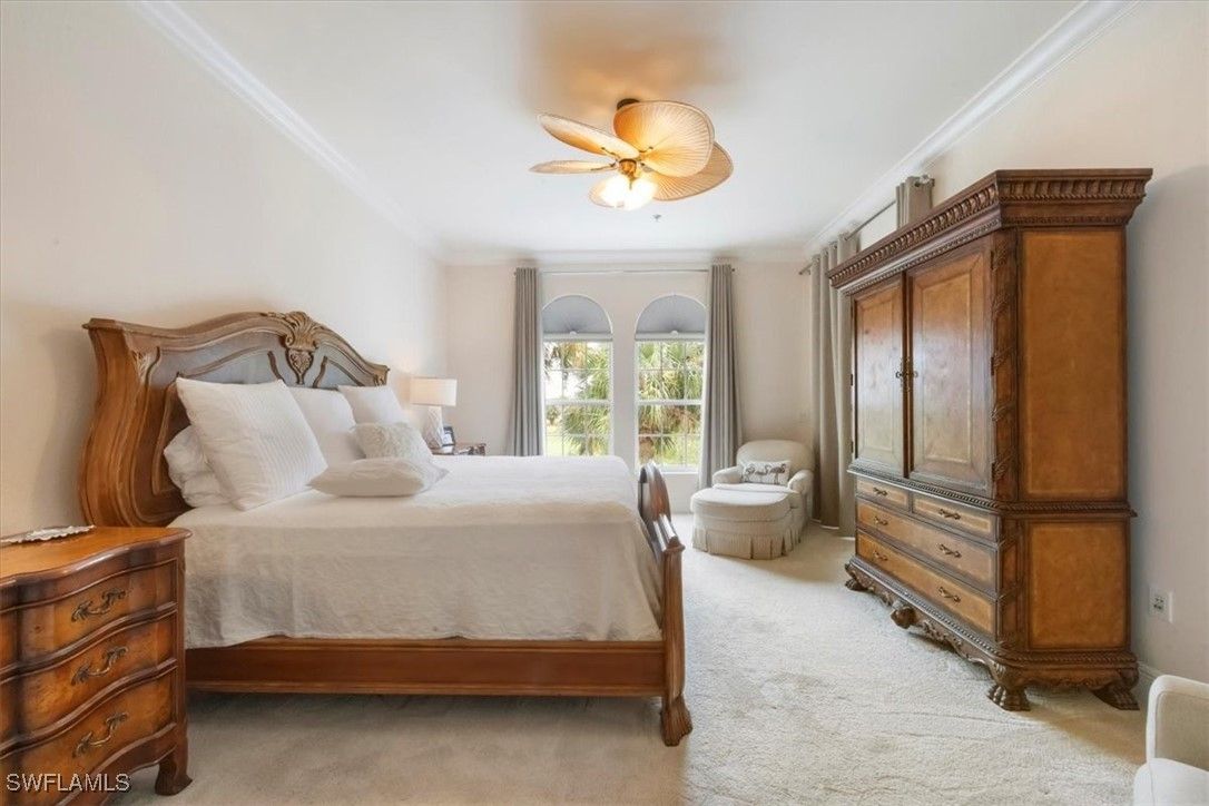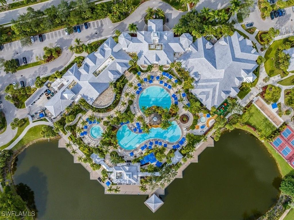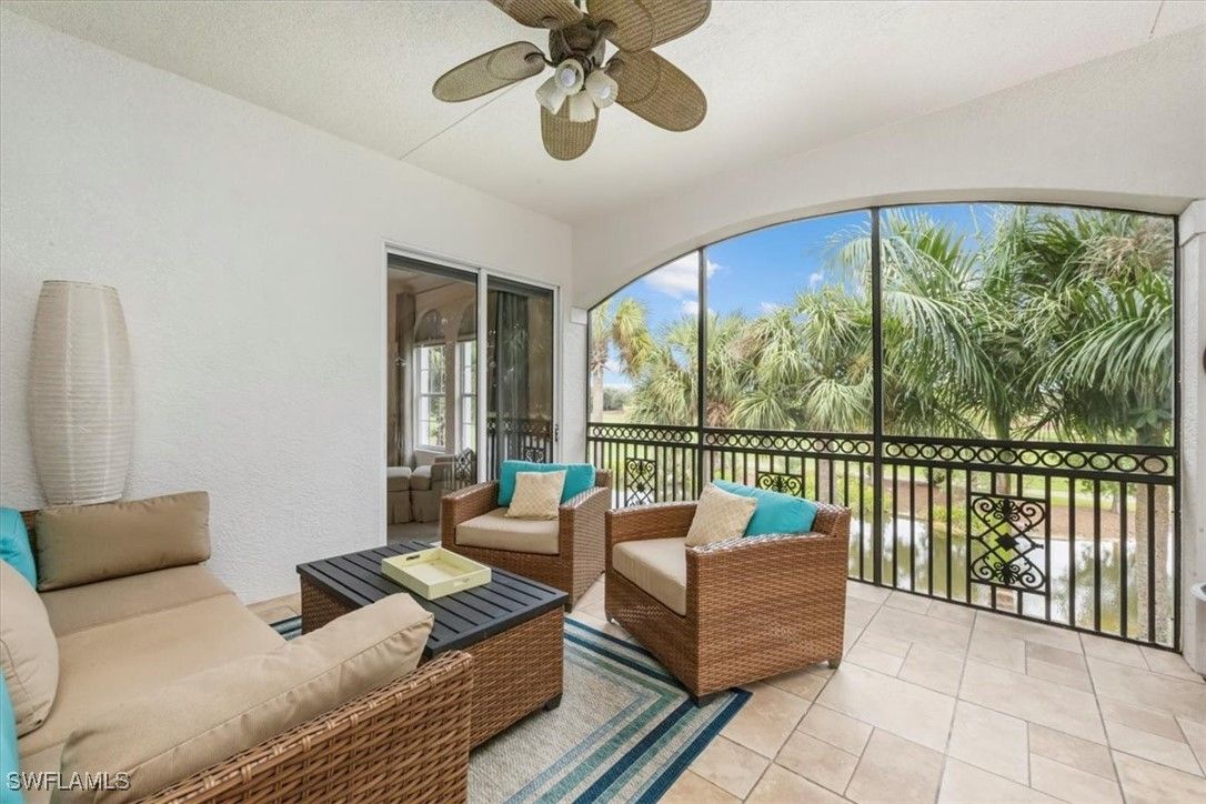 Relaxed Florida living meets timeless quality—all within one of Naples’ most sought-after gated communities of Fiddler’s Creek. Perfectly situated directly across from the Cascada neighborhood pool, Experience the perfect blend of comfort, space, and scenic beauty in this southeast-facing, second-floor end-unit coach home with a PRIVATE ELEVATOR, located in the highly desired gated community of Cascada within Fiddler’s Creek. With an abundance of morning sunlight stunning golf and lake views, this residence offers a rare opportunity to enjoy resort-style living at its finest. The open and airy floor plan ideal for both relaxed everyday living and entertaining. Capital portion of the CDD is PAID IN FULL! Highlights include beautiful light tile flooring set on the diagonal, crown molding, high ceilings, and plush carpeting in the bedrooms. The light-filled kitchen features custom cabinetry, under-cabinet lighting, gas cooking, pantry, and Corian countertops and tumbled marble backsplash. The kitchen seamlessly opens to the family room and expansive 12X24 screened lanai, creating a natural gathering space with tranquil lake and golf vistas. The spacious primary suite offers dual walk-in closets, lanai access, and a well-appointed bath with dual vanities, a soaking tub, and a glass-enclosed shower. Two guest bedrooms and a den provide ample room for family or guests, while the laundry room with cabinetry and sink and a spare refrigerator adds everyday convenience. The garage offers a 50 volt charging station for your EV car and a new wireless garage door opener allows easy access in & out of the property. Centrally located within the development, This home provides effortless access to the exceptional & newly renovated amenities of Fiddler’s Creek, including a stunning clubhouse, resort-style pool, fitness center, tennis courts, spa services, and fine dining. Don’t miss out on this fabulous opportunity!