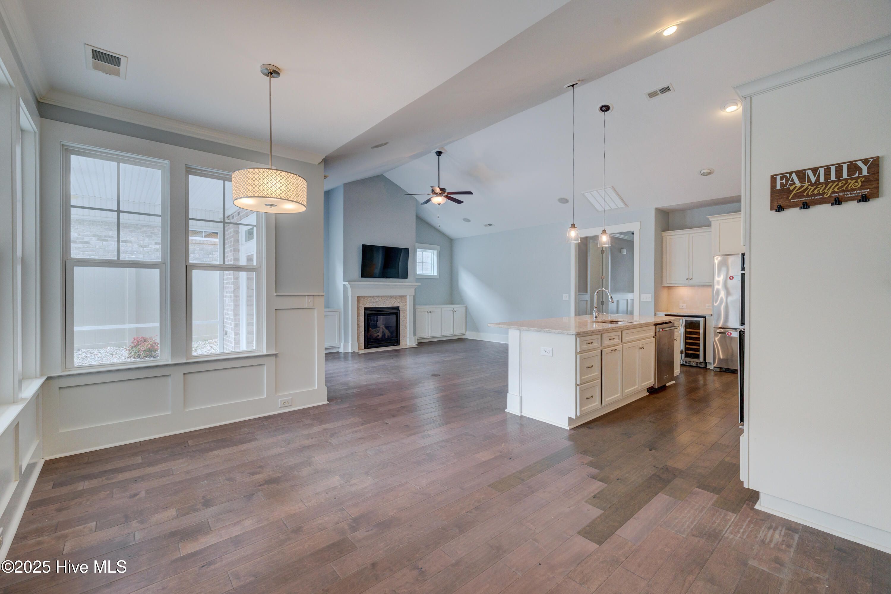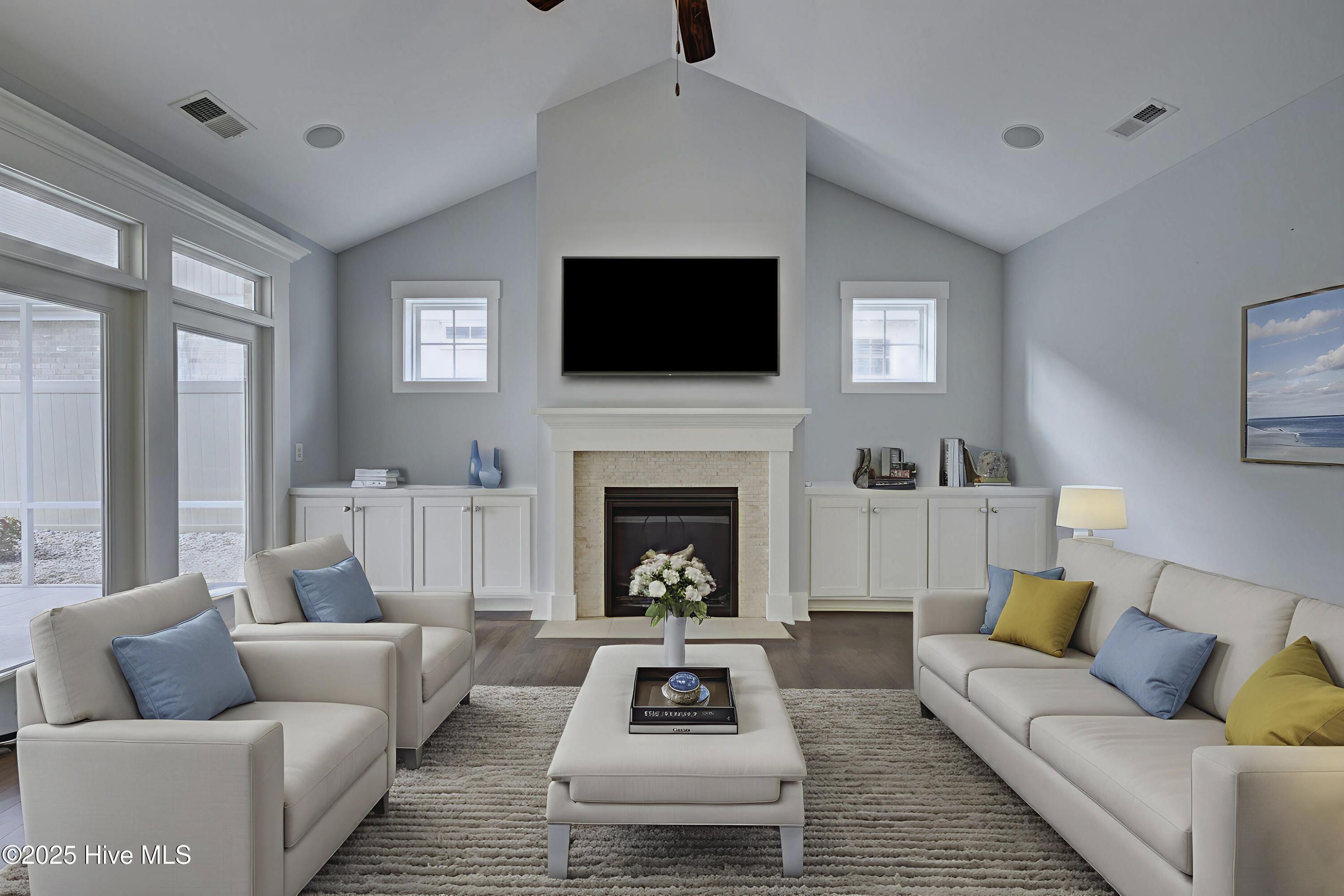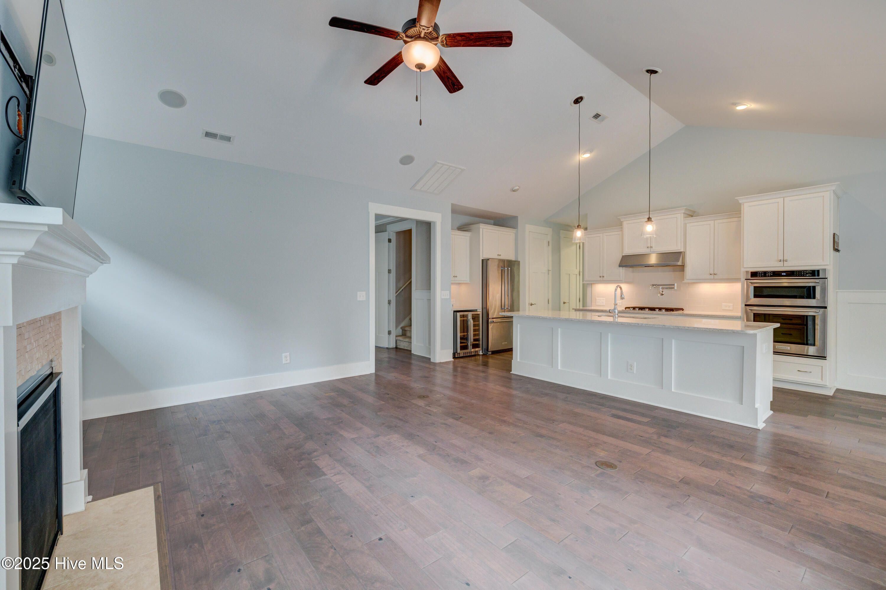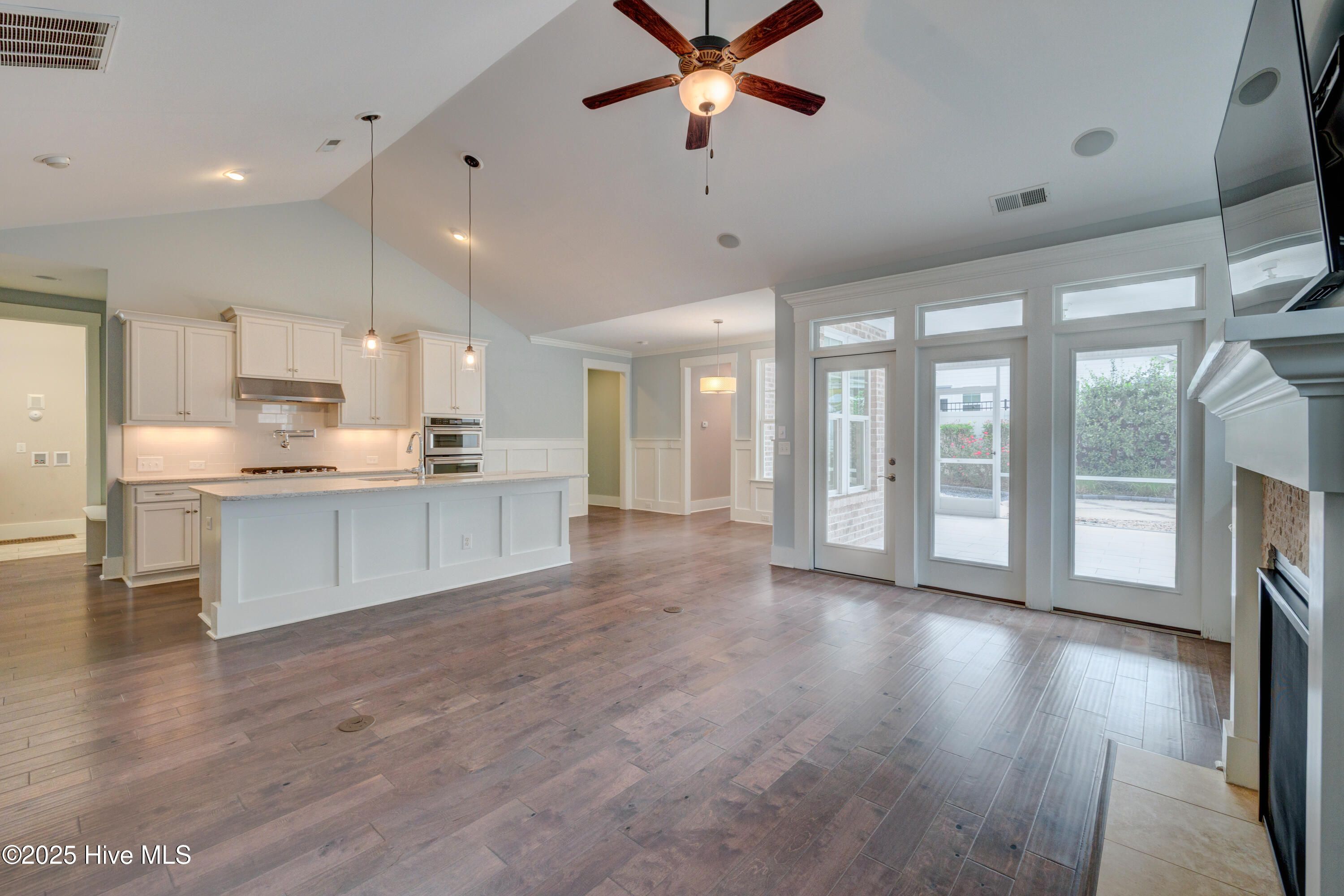 - Sound System, Master Downstairs, Walk-In Closet(s), Vaulted Ceiling(s), High Ceilings, Entrance Foyer, Bookcases, Kitchen Island, Ceiling Fan(s), Pantry, Walk-In Shower