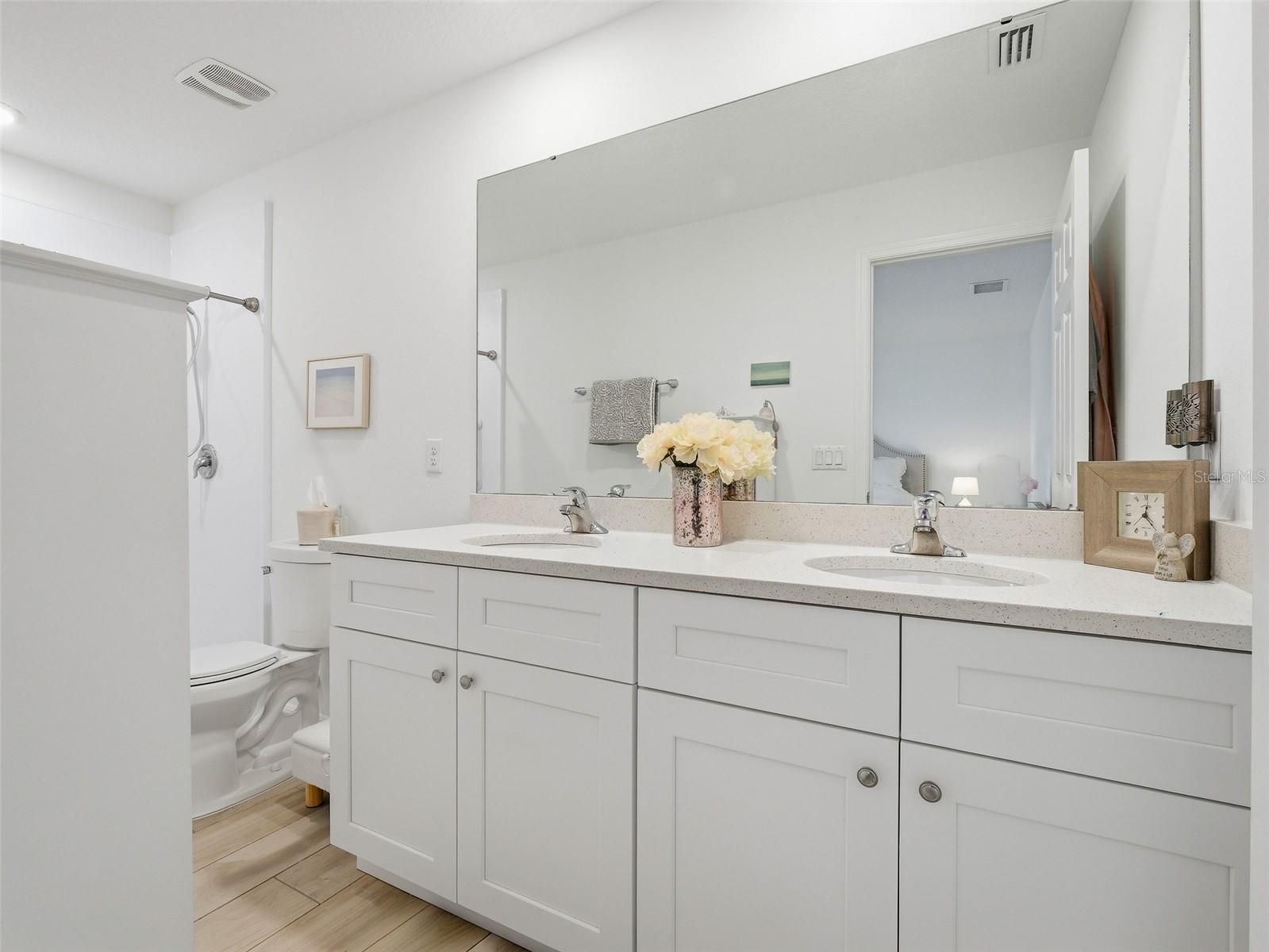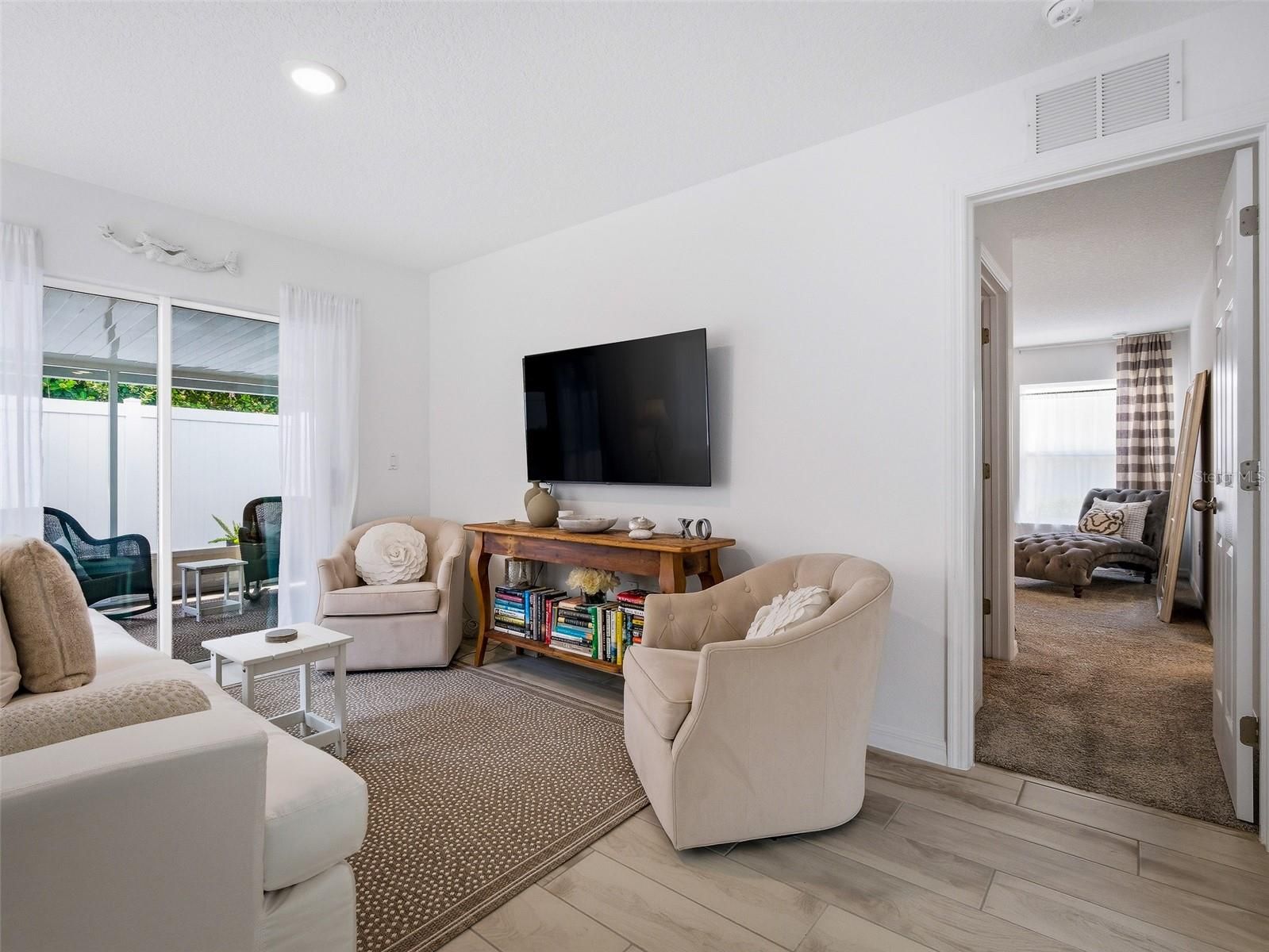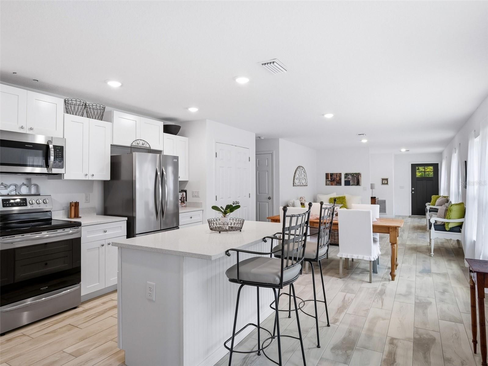 - Kitchen/Family Room Combo, Living/Dining Room, Open Floorplan, Main Level Primary, Split Bedrooms, Stone Counters, Thermostat, Walk-In Closet(s)