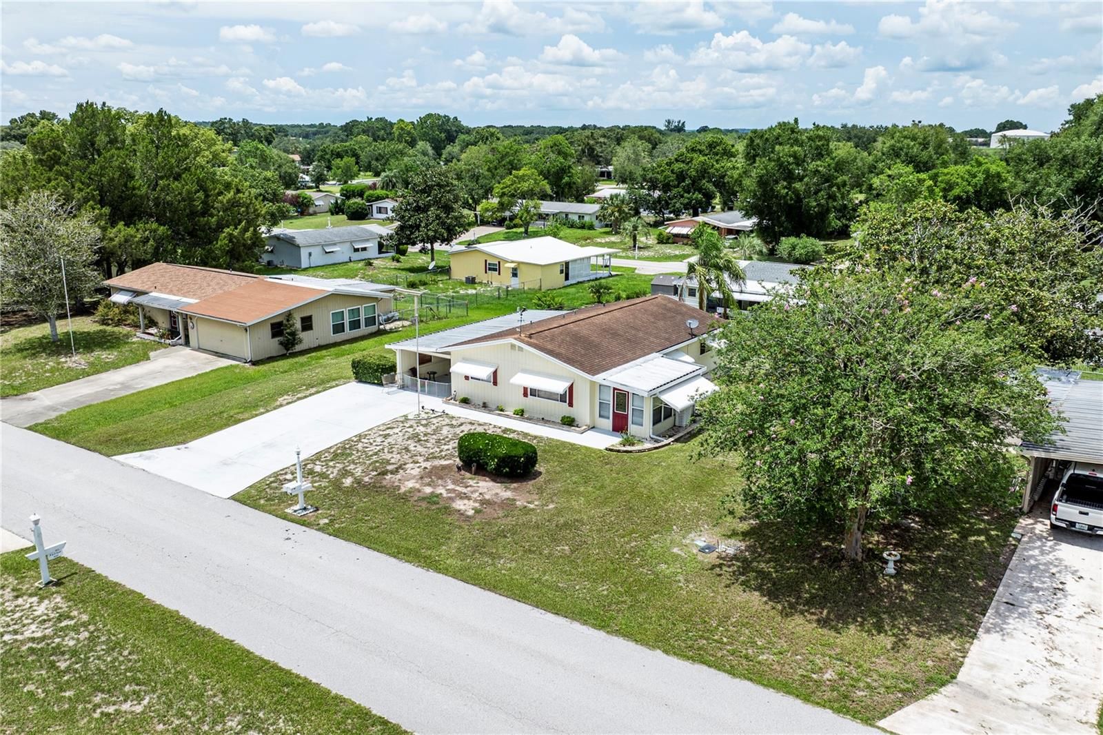 Price Improvement! Welcome Home to 9035 SW 102nd is now offered for sale and is ready for its New Owners. The home sits on a large lot that is partially fenced, perfect for your furry friends to run around. It's located in a 55+ Community that offers a community pool, pickleball, tennis and other recreational activities for a low monthly fee. This sweet home is move in ready and offers two sizable bedrooms and two full bathrooms with an attached carport. You have a large 12x14 workshop. The kitchen has newer cabinetry, newer countertops and all the appliances stay with the home including the washer and dryer. You have tile and laminate floors throughout. This home is perfect for year-round living or if you are just looking to snow-bird. Do not miss this opportunity to call this Home! All information recorded in the MLS is intended to be accurate however, it should be independently verified by buyer and their agent. Be sure to check out the Virtual Tour!