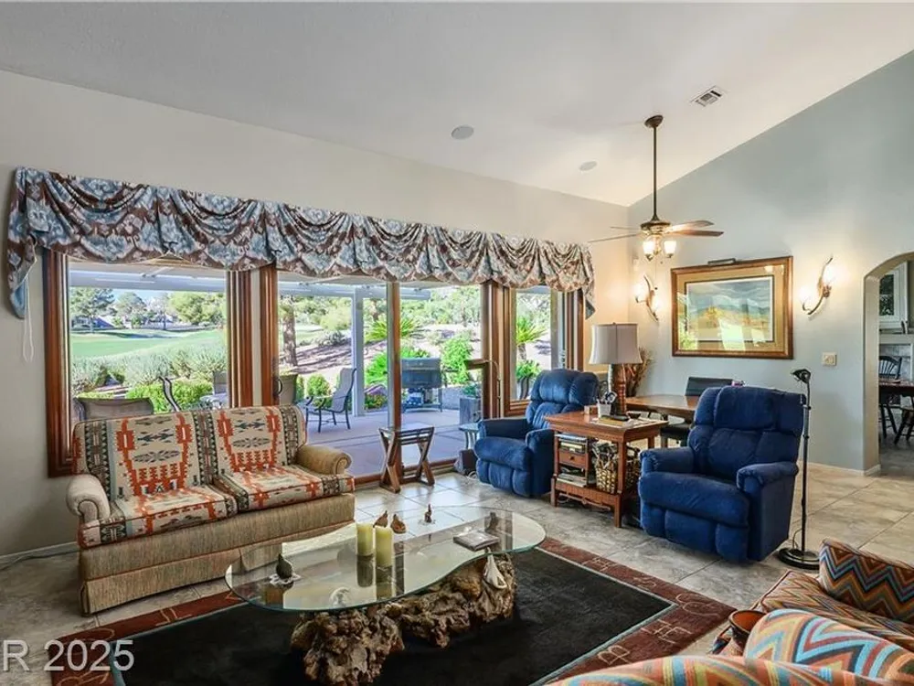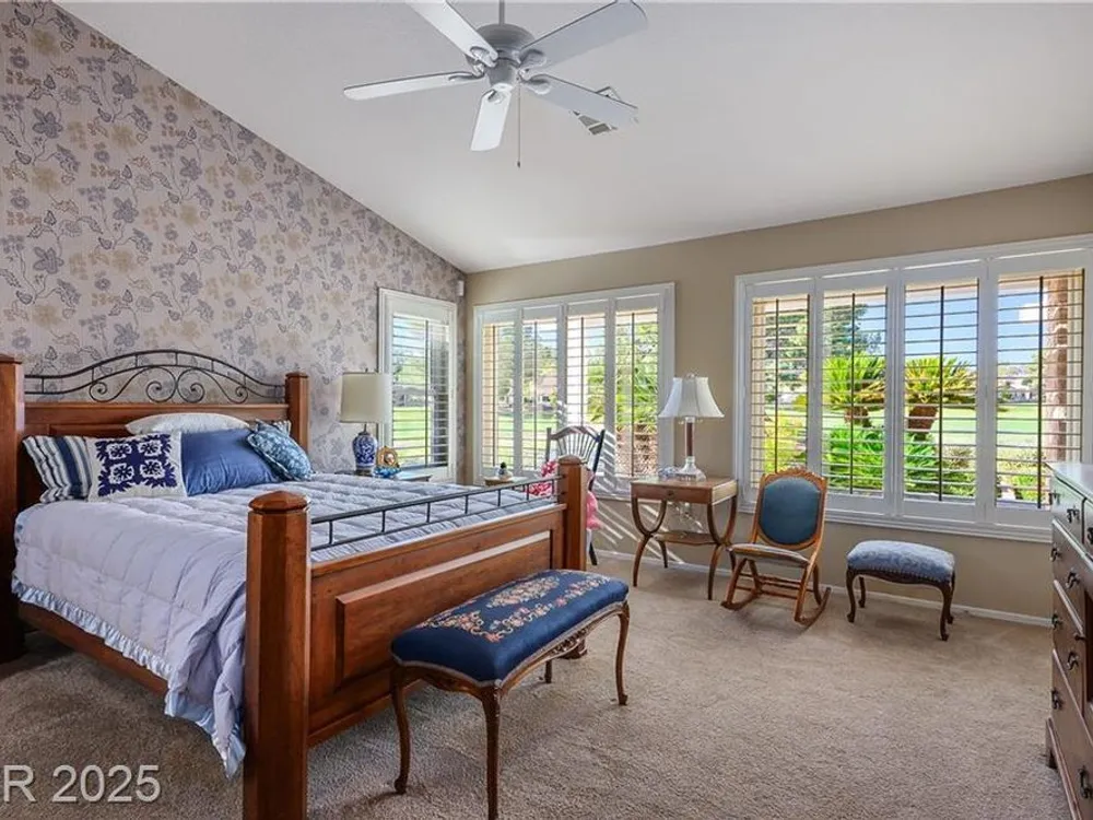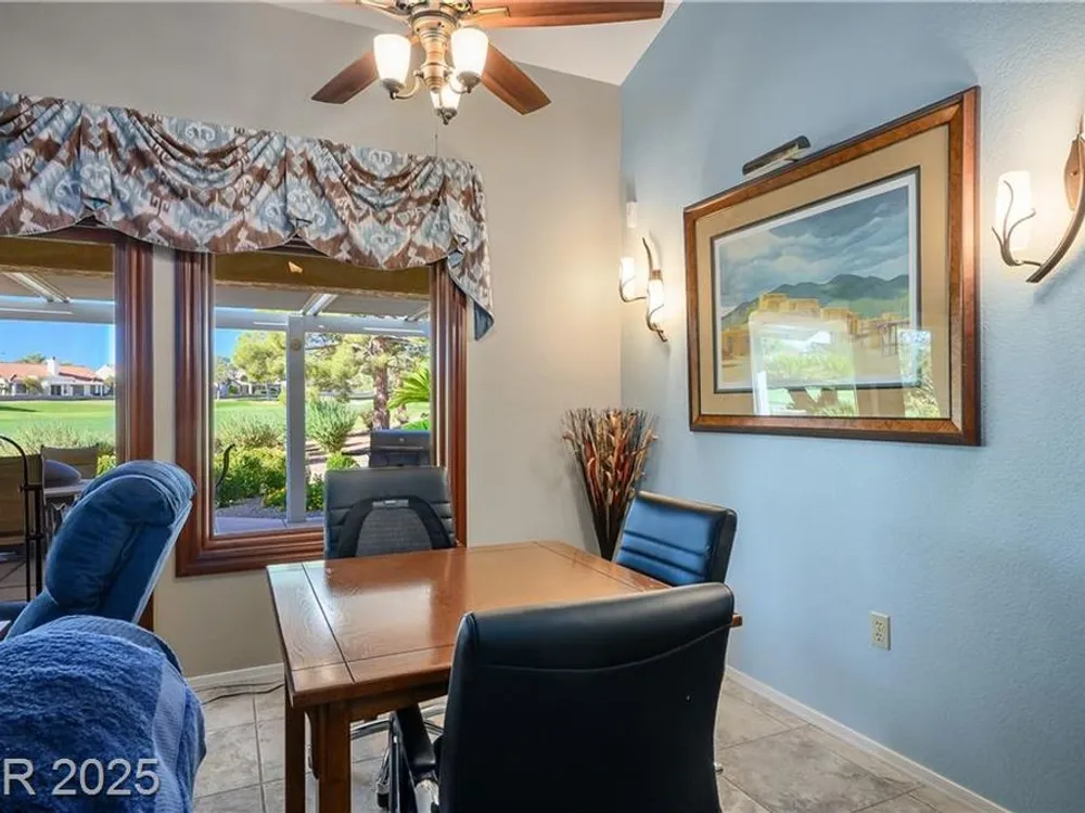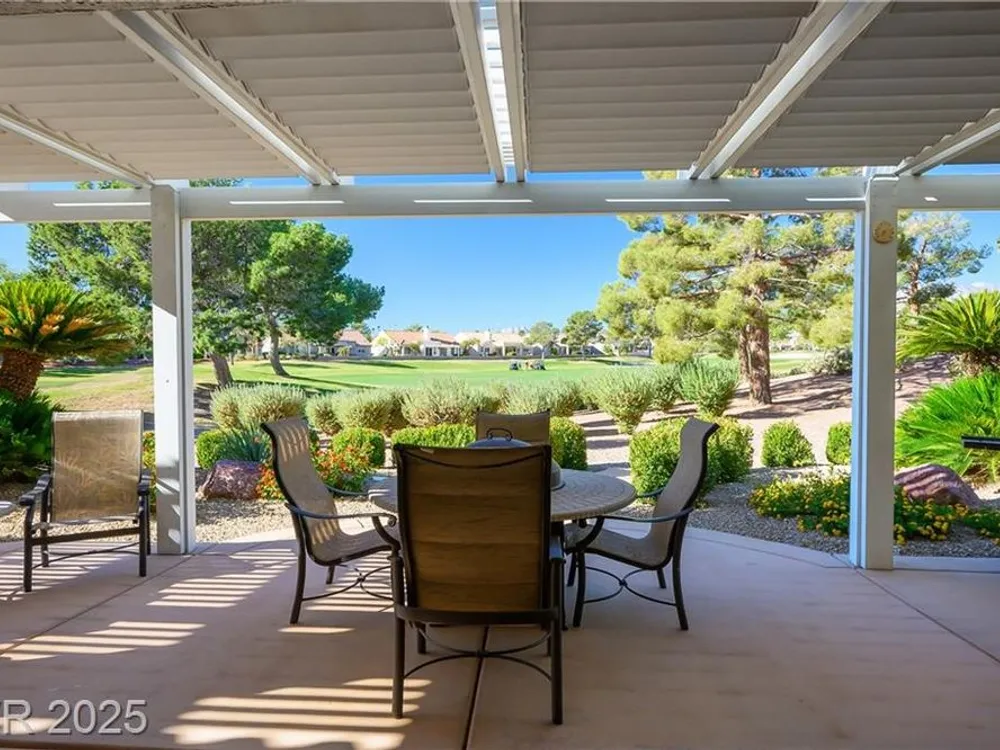 There are golf course views—and then there’s this one, with no neighboring homes in sight! This 3-bedroom, 2,115 sq. ft. Matara model features an expanded, tastefully upgraded kitchen with custom natural knotty alder cabinetry, richly veined granite, and upgraded SS appliances. It opens to a spacious room currently used as a dining area, originally designed as a great/family room. The oversized living room boasts floor-to-ceiling windows framing the expanded covered patio and beautifully maintained golf course with lush greenery and mature trees. The large primary ensuite includes a custom walk-in shower, dual vanities, and a third closet for exceptional storage. Two additional bedrooms and a full bath are nearby. An oversized two-car garage with epoxy floor and ample storage completes this exceptional home in Sun City Summerlin, the premier 55+ active community with golf, pools, spas, sports courts, and clubs located nearby Down Town Summerlin's dining, entertainment & sports venues.