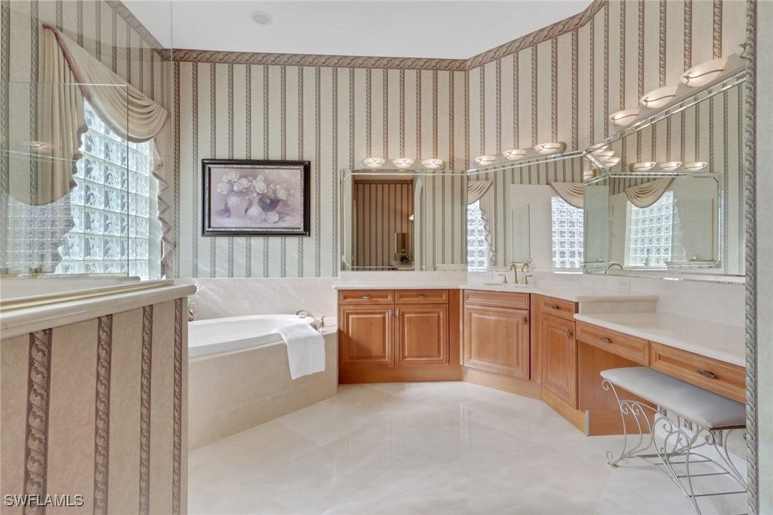 - Bidet, Breakfast Area, Bathtub, Tray Ceiling(s), Dual Sinks, Eat-in Kitchen, French Door(s)/Atrium Door(s), Kitchen Island, Living/Dining Room, Pantry, Separate Shower, Cable TV, Walk-In Closet(s), Window Treatments, Split Bedrooms