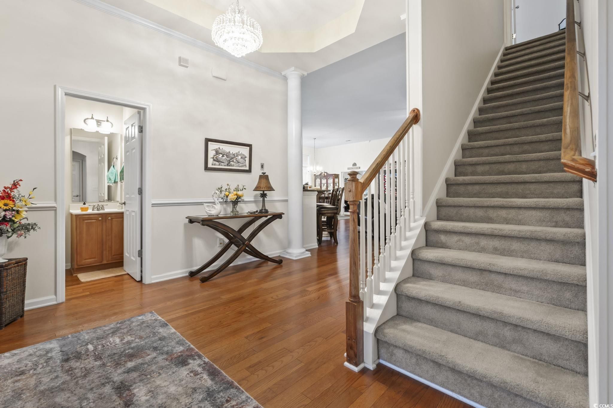 ***OPEN HOUSE Saturday January 3rd 12-2:30pm*** Spend the holidays in your new home located in the desirable Myrtle Trace Grande 55+ community! This spacious Cumberland model offers plenty of room and storage throughout. From the moment you walk in, you’ll feel right at home. The grand open entry flows seamlessly into the living, dining, and kitchen areas perfect for entertaining your family and friends. Featuring 3 bedrooms and 2.5 baths on the main level, including a large primary suite with both a walk-in and linen closet, huge double vanity and gorgeous walk-in shower, this home provides comfort and convenience. Upstairs, you’ll find an additional bedroom, full bath, and a versatile den/bedroom ideal for guests . The main floor also includes a private office with elegant glass French doors and a serene Carolina room for enjoying your morning coffee or quiet afternoons. Love to cook? The spacious kitchen offers plenty of room for everyone to join in and help prepare your favorite holiday treats with tons of counter space and storage throughout. This well-maintained home features beautiful wood floors, a recent HVAC upgrade with a UV light system, tinted windows throughout the entire home and gorgeous landscaping with a stunning driveway. Unwinding by the community pool or just Barbequing in your backyard, Myrtle Trace Grande is the perfect place for you. Conveniently located near shopping, dining, golf, and the beach. Come see why this home is the perfect place to spend the holidays and every season beyond!