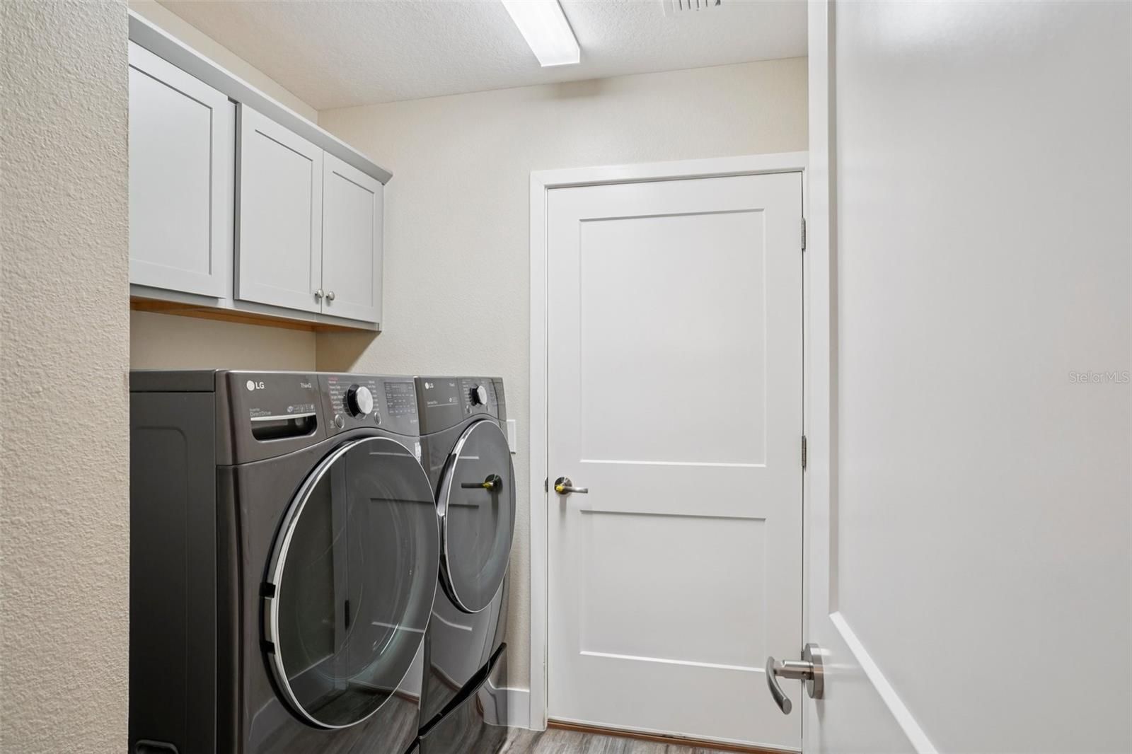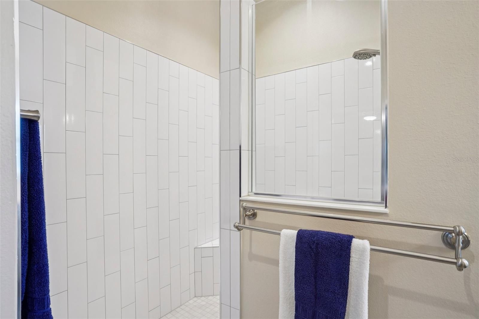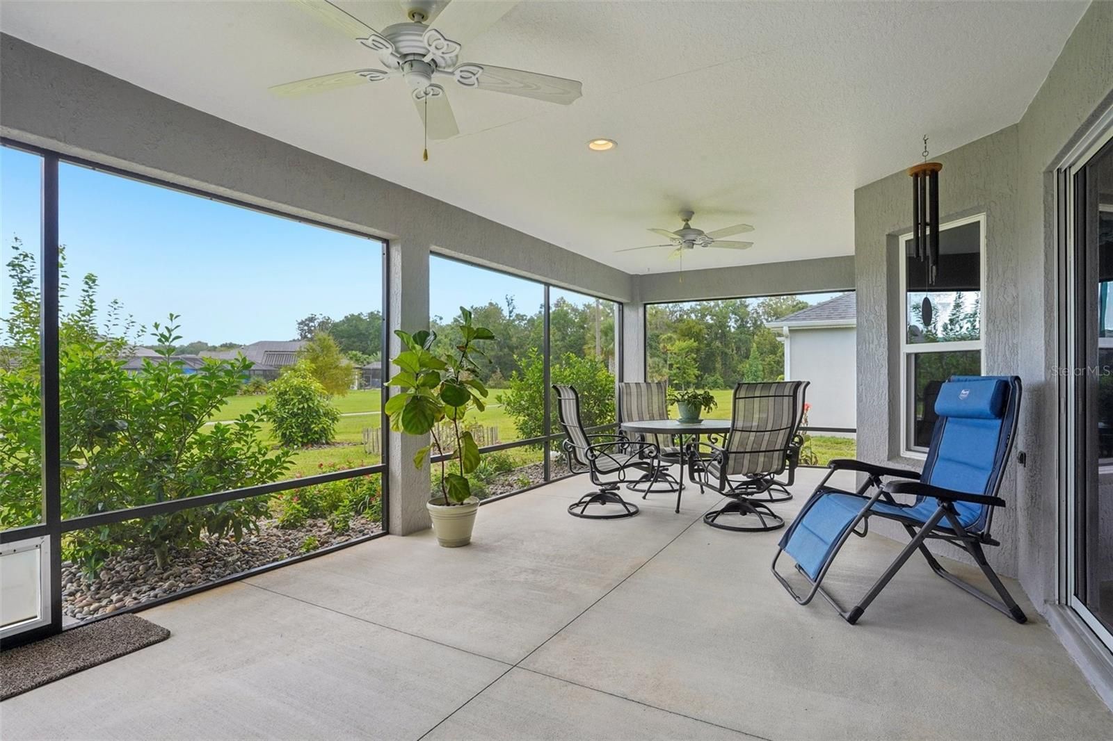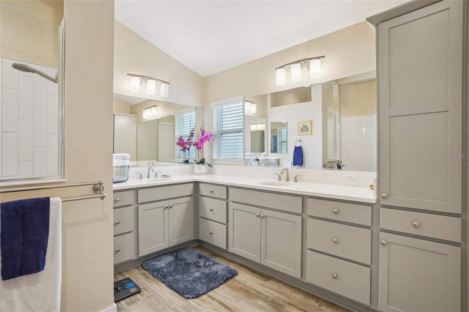 This luxury designer Iris model offers three bedrooms and two baths . From the moment you step inside, you’re welcomed by a roomy entrance with a coat closet for guests. Tile flooring graces the main living areas and baths in a warm, neutral wood-look finish, while the bedrooms feature carpeting for added comfort. The kitchen is a chef’s delight, featuring cabinetry with pull-out drawers, under-cabinet and indirect lighting, and a large island with sink. The open design flows seamlessly into the living area, where a Bose surround sound system enhances your entertainment experience. Each bedroom is equipped with a custom closet system—one room thoughtfully configured into a private office with desk and hutch. The third bedroom serves as a comfortable guest retreat. The primary suite is a true sanctuary with a tray ceiling and windows overlooking the serene green space. Its bath offers a tiled walk-in shower and a remarkable converted closet, designed as a luxury dressing room with vanity, shoe storage, cabinetry, and lined drawers for jewelry. This home is enriched with smart and practical upgrades including a lighted flagpole, gutters, invisible pet fence with dog door, Kinetico water softener, whole-house surge protector, lightning rods, and tinted windows throughout. Natural light pours in through three solar tubes, brightening the kitchen, guest bath, and primary closet. The garage is as functional as it is refined, featuring custom cabinetry, a utility sink, insulated doors, pull-down ladder access to an insulated attic with solar powered fan, and a gleaming epoxy-coated floor. Outdoors, the professionally landscaped lot showcases St. Augustine lawn with concrete edgeing and river rock, complemented by a variety of fruit trees—peach, ponderosa lemon, orange, mulberry, avocado, and fig—as well as vibrant flowering plants including gardenia, camellia, lantana, plumeria, hibiscus, bottle brush, and Bird of paradise. A mandevilla vine greets you at the entry with a cascade of blooms. The home backs to tranquil green space with a bike and walking path that leads to shaded trails and peaceful ponds, perfect for quiet strolls and relaxation. Its location is ideal—just steps from the Aviary Recreation Center with a family pool and minutes from the Ezell Recreation Center, offering a gym, sports pool, bocce, and pickleball. Nearby you’ll also find the Sawgrass Entertainment Market with its dining and live entertainment, plus convenient access to Brownwood Square and the up-and-coming Eastport Square, which will feature even more shopping, dining, and entertainment options.