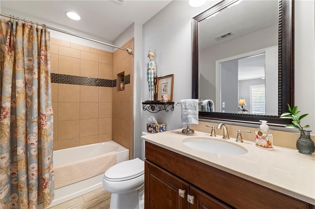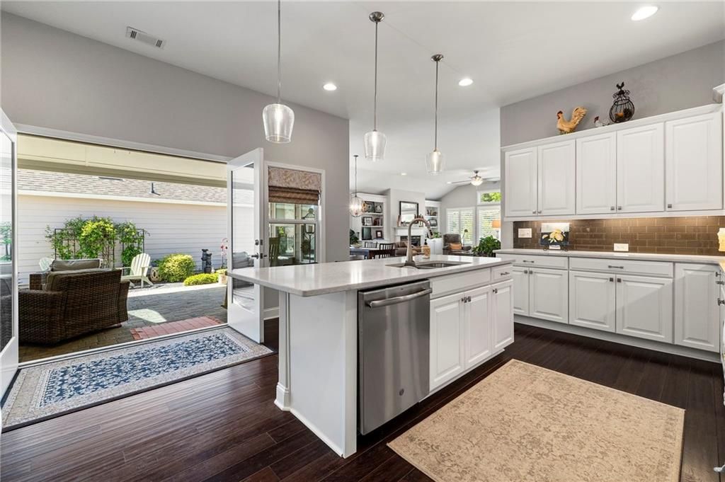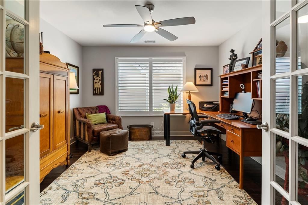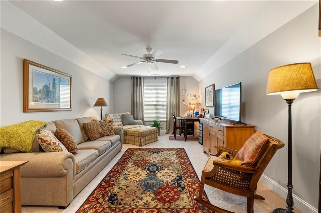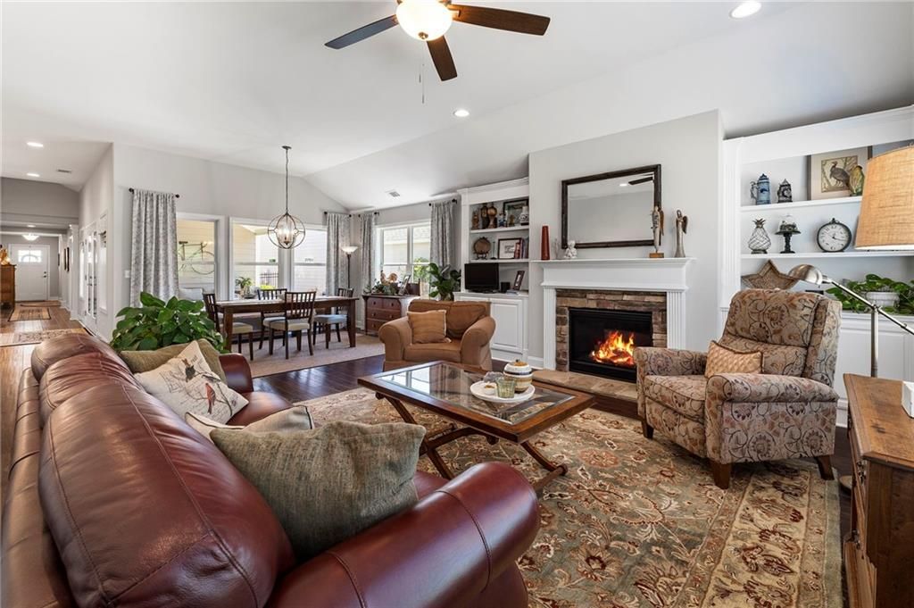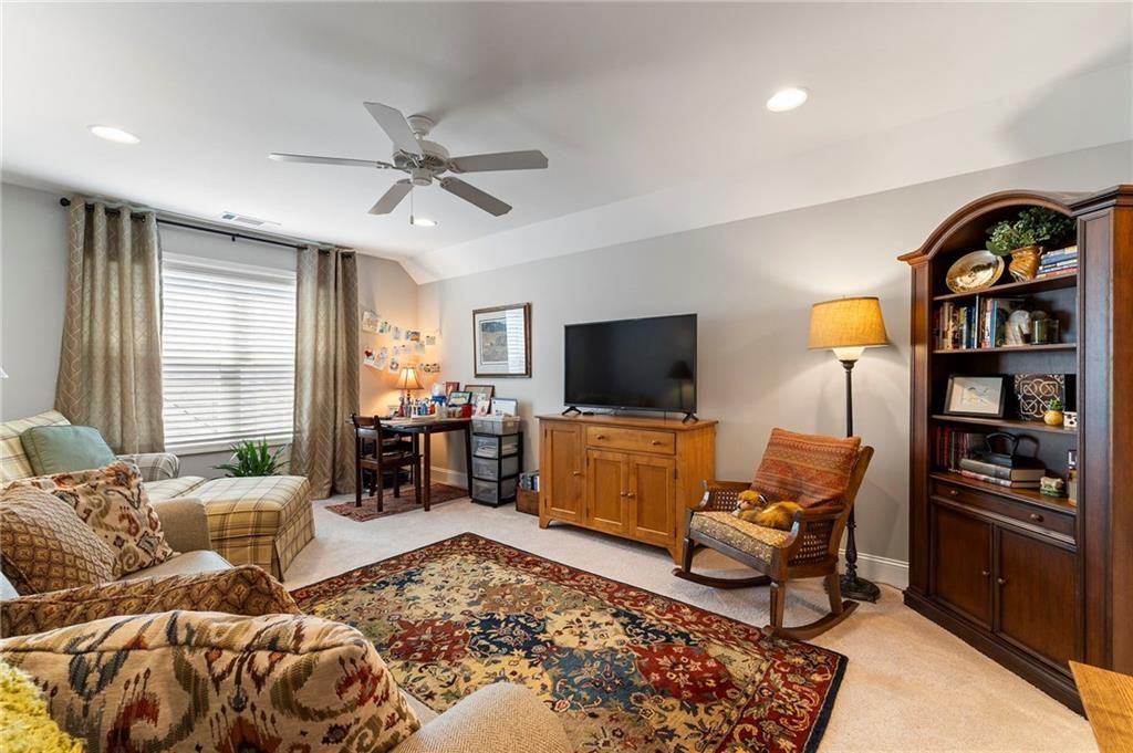 Welcome to the Active 55+ Community of McConnell Green* Want an Easy Life Style? This is it! Located in the Heart of West Cobb and Conveniently located close to Grocery Store, Wellstar Hospital, Costco, Walmart and The Avenues of West Cobb* This Craftsman Style Detached Home has 3 Bedrooms + HOME OFFICE THAT COULD BE THE 4TH BEDROOM if needed* Front Entry has a Covered Front Porch and Foyer* Scraped Hickory Wood Flooring grace the Foyer, Kitchen, Living and Dining Area* The Chef's Kitchen has Quartz Counters, White Cabinets, Stainless Appliances (including the Refrigerator), Double Oven, Microwave, Large Island, Pendant Lighting, Under Cabinet Lighting and Walk In Pantry* The Living Area has a High Ceiling, Stacked Stone Gas Starter Fireplace and Transom Window for Lots of Natural Light* Main Level Home Office has French Doors and Closet* Guest Bedroom has Full Bath with Tiled Surround Shower/Tub and Pretty Vanity* Washer/Dryer, Utility Sink, Drying Rack, Folding Counter and Cabinets are in the Laundry Room* Primary Bedroom has Transom Window, Double Vanities, Double Tiled Shower, and Large Walk In Closet* Upstairs you will find a Guest Bedroom, Full Bath and Don't miss the Floored Attic Storage that has extra shelving for Miscellaneous Items* Plantation Shutters on all Windows except in Dining Area and Ceiling Fans in all Bedrooms* Another Amazing Feature is the Covered Patio that has Sky Lights, Ceiling Fan and most Patio furniture is staying!! The Courtyard was Professionally Landscaped with Perennials, lighting, water fountain w/remote, electrical, gas grill, hose reel and bird bath* The Garage has Laser parking-assist and hanging bike hooks* Hot Water recirculating pump and 3-zone HVAC Controls help with Utility Costs* For Extra Security there is a Ring Doorbell and Backyard lighting* The Low Monthly Fees Cover all Exterior Grounds Upkeep, Trash Pick Up, Termite Control and use of the Amazing Club House that has a Full Kitchen, Library, Work Out Room with Equipment, Large Room For Parties and Gathering with Neighbors, and Covered Patio for Bar B Ques!! Don't miss the Community Garden for fresh vegetables!! Original Owner and Pristine Condition make this home a Must See!!
