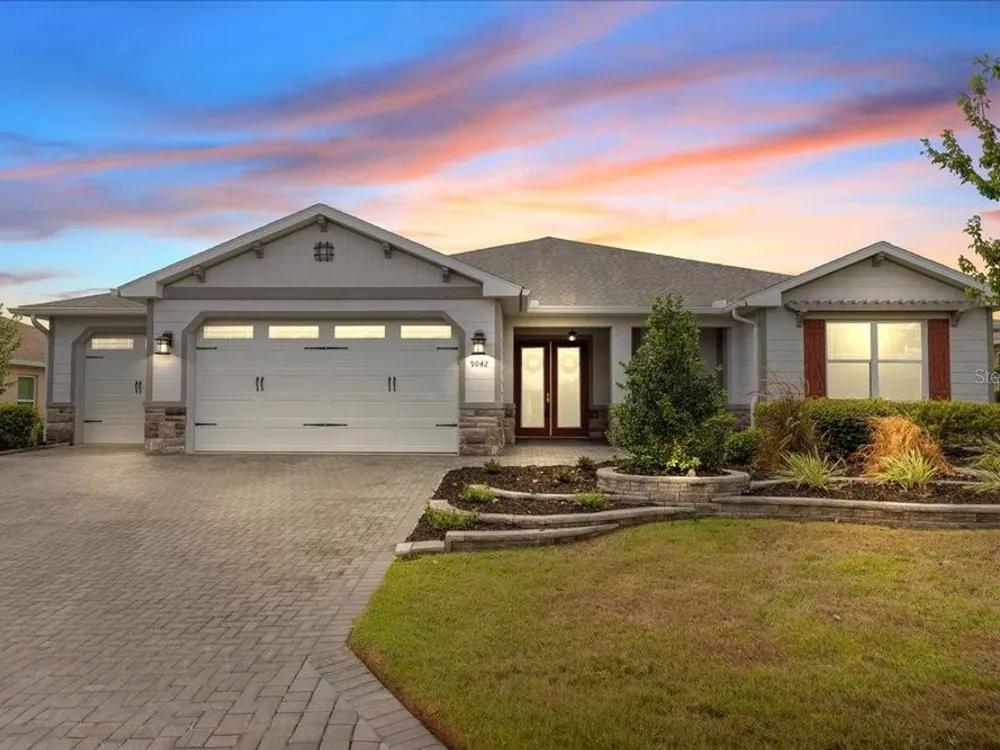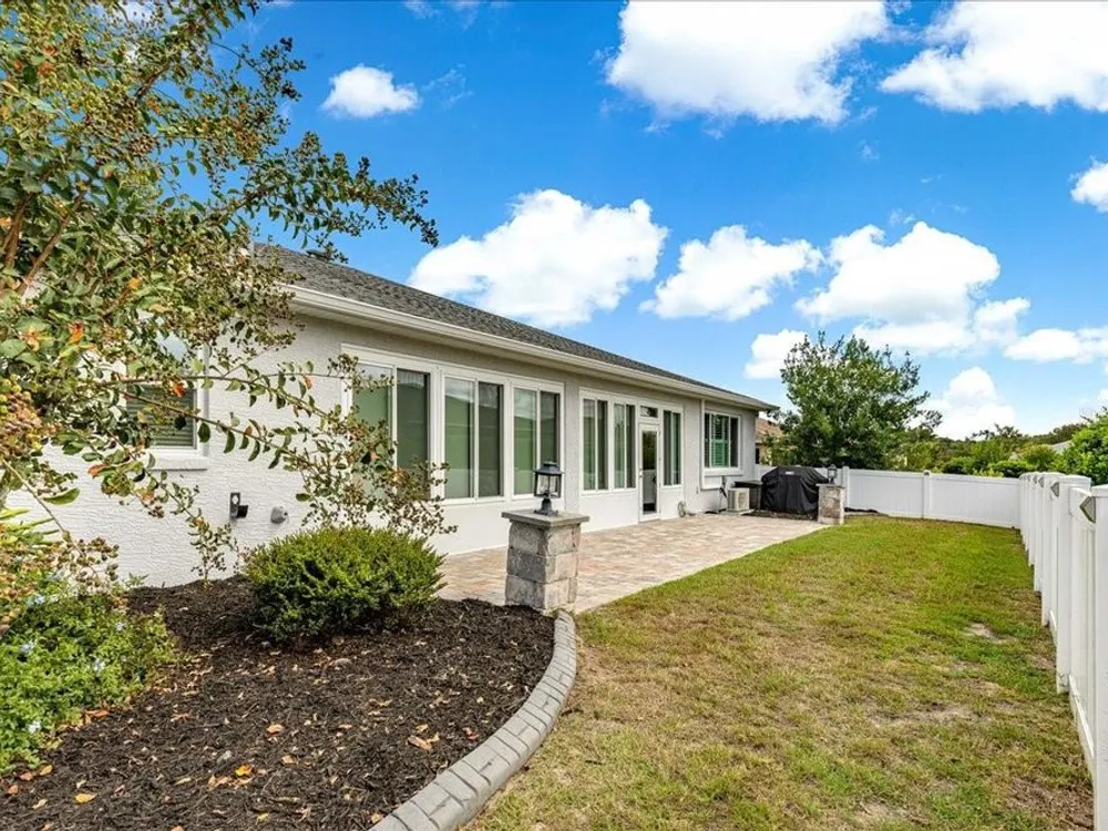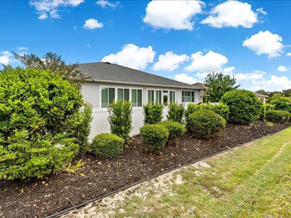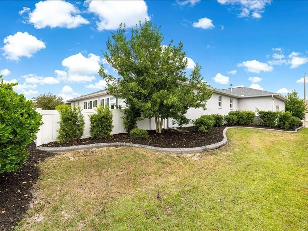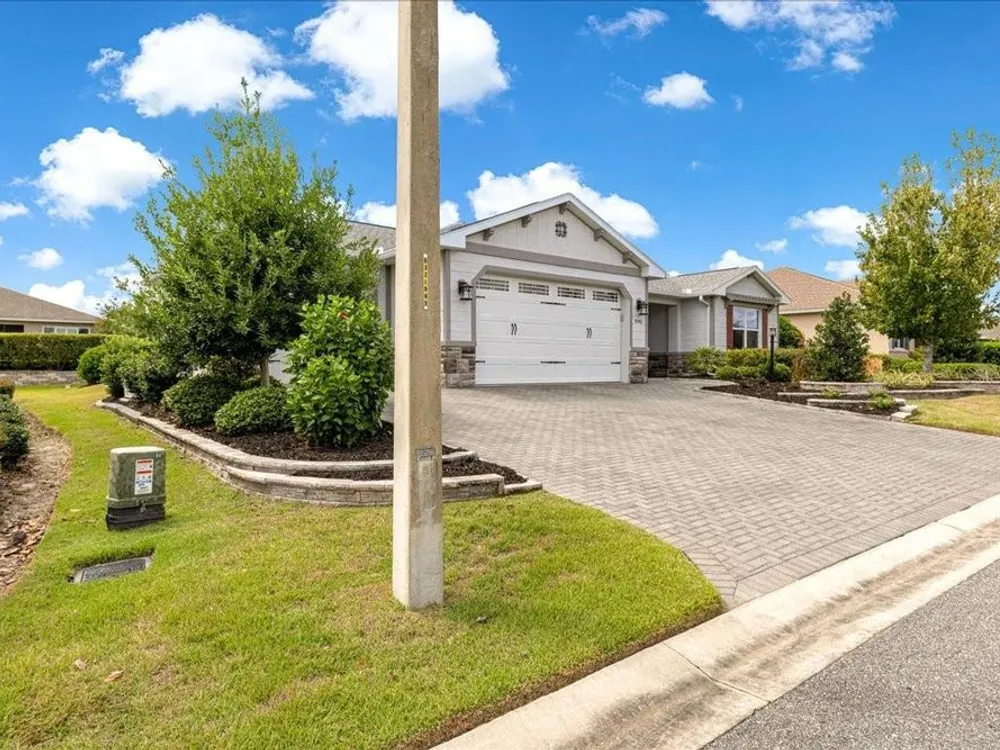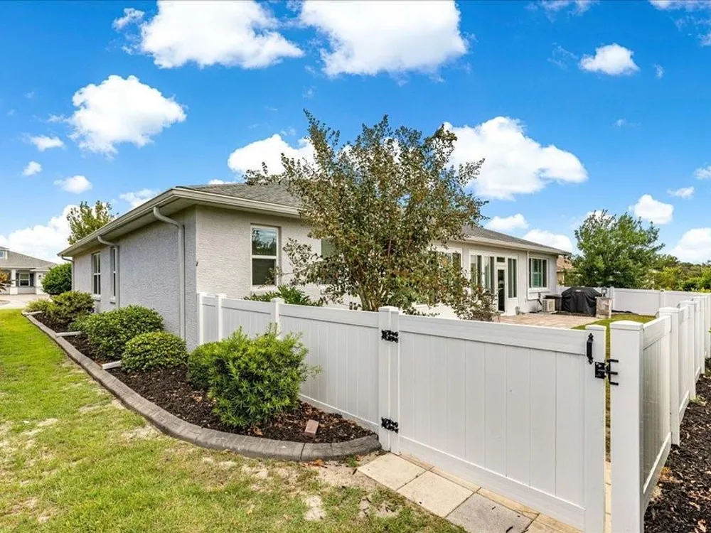 Welcome to this stunning Wellington model home located in the 55+ community of Candler Hills in On Top of the World. This 2018 home is in the Sanctuary section and better than new! Are you looking for a home that is move in ready with ALL of the bells and whistles? Well this one will check all those boxes and more! When you pull up you will immediately notice the paver drive, and beautiful landscaping with stacked stone beds. Walk to the front paver porch with an extension to the oversized double door entrance. Inside is diagonal tile flooring throughout the main living areas, bathrooms, laundry and halls. Crown molding throughout the entire home! It also features a gourmet kitchen with wall oven and microwave, gas top range, staggered white cabinetry with pull outs and a farm sink. New dishwasher so quiet you will not know it's running. Pretty pendant lighting over the huge island/bar area. Recessed lighting and upgraded fans throughout the home. Granite counters in the kitchen and laundry area. Kitchen is wide open to your spacious living room. Tray ceilings at the entrance, living room and master. Which has sliders to your Florida room. Featuring tile flooring, ceiling fans, solar blinds, custom entertainment center and split HVAC unit. This room has views to your paver patio, perfect for grilling and relaxing. And PVC fencing for privacy and the furbabies. There is a formal dining room, making this the perfect home for entertaining family and friends. The den/flex space features laminate flooring. Interior paint with custom colors. The bedrooms have upgraded, custom carpeting. The large primary has a tray ceiling, primary bath with double sink, quartz vanity, a walk-in shower with glass surround and a bench. The walk-in closet is to-die-for and leads directly to the laundry room. The laundry room has plenty of cabinet and storage space, a laundry sink and newer washer and dryer. The second primary has a built in entertainment center, it's own personal bathroom with walk in shower and quartz counter vanity. The third bedroom is also nicely appointed with an accent wall and carpet flooring. The third bathroom has a tub/shower combo and quartz top vanity. The 4 foot extended 2 car garage plus a golf cart garage has epoxied floors, two garage door openers, 20 amp golf cart charger outlet, central vacuum for cars and golf cart, ceiling storage racks & wall shelving. There is so much more! Please be sure to look at the photos for a more complete list of features and upgrades. Don't miss your opportunity to purchase this home! Call for your appointment today!