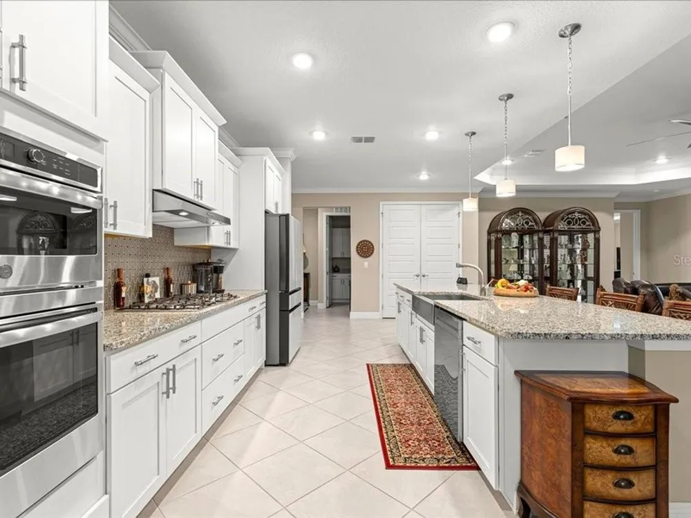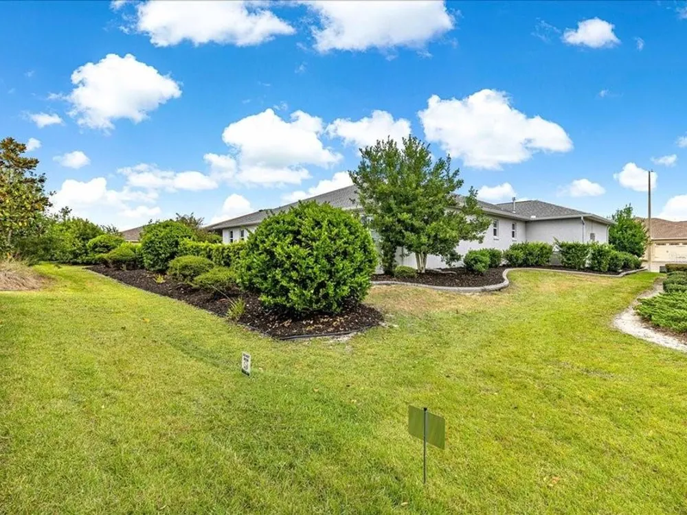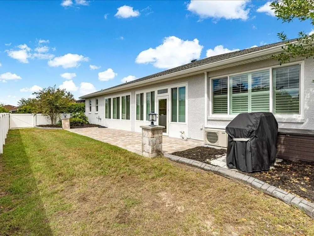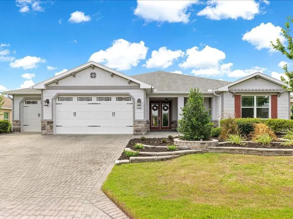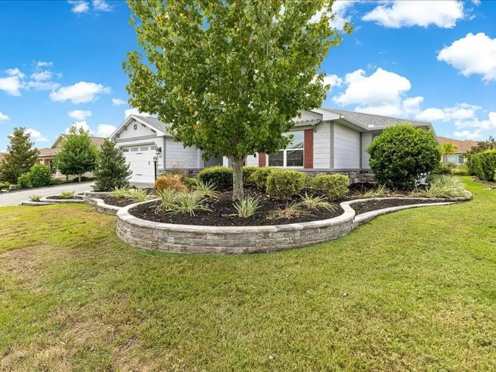 Welcome to this stunning Wellington model home located in the 55+ community of Candler Hills in On Top of the World. This 2018 home is in the Sanctuary section and better than new! Are you looking for a home that is move in ready with ALL of the bells and whistles? Well this one will check all those boxes and more! When you pull up you will immediately notice the paver drive, and beautiful landscaping with stacked stone beds. Walk to the front paver porch with an extension to the oversized double door entrance. Inside is diagonal tile flooring throughout the main living areas, bathrooms, laundry and halls. Crown molding throughout the entire home! It also features a gourmet kitchen with wall oven and microwave, gas top range, staggered white cabinetry with pull outs and a farm sink. New dishwasher so quiet you will not know it's running. Pretty pendant lighting over the huge island/bar area. Recessed lighting and upgraded fans throughout the home. Granite counters in the kitchen and laundry area. Kitchen is wide open to your spacious living room. Tray ceilings at the entrance, living room and master. Which has sliders to your Florida room. Featuring tile flooring, ceiling fans, solar blinds, custom entertainment center and split HVAC unit. This room has views to your paver patio, perfect for grilling and relaxing. And PVC fencing for privacy and the furbabies. There is a formal dining room, making this the perfect home for entertaining family and friends. The den/flex space features laminate flooring. Interior paint with custom colors. The bedrooms have upgraded, custom carpeting. The large primary has a tray ceiling, primary bath with double sink, quartz vanity, a walk-in shower with glass surround and a bench. The walk-in closet is to-die-for and leads directly to the laundry room. The laundry room has plenty of cabinet and storage space, a laundry sink and newer washer and dryer. The second primary has a built in entertainment center, it's own personal bathroom with walk in shower and quartz counter vanity. The third bedroom is also nicely appointed with an accent wall and carpet flooring. The third bathroom has a tub/shower combo and quartz top vanity. The 4 foot extended 2 car garage plus a golf cart garage has epoxied floors, two garage door openers, 20 amp golf cart charger outlet, central vacuum for cars and golf cart, ceiling storage racks & wall shelving. There is so much more! Please be sure to look at the photos for a more complete list of features and upgrades. Don't miss your opportunity to purchase this home! Call for your appointment today!