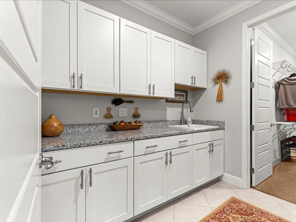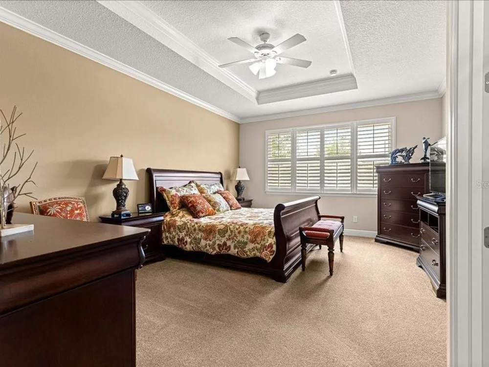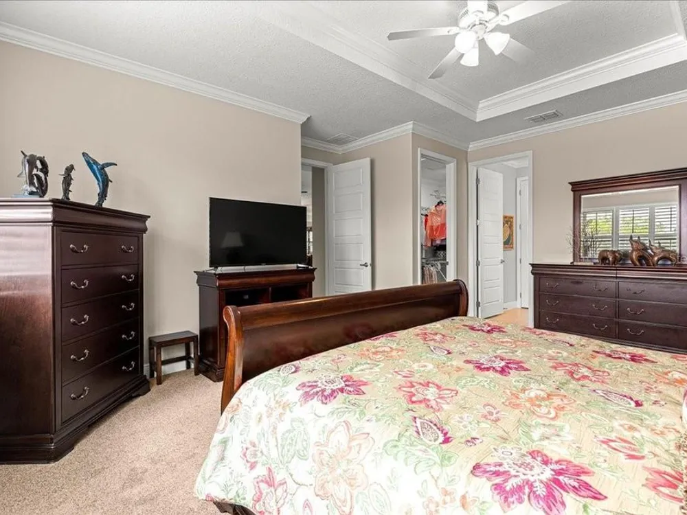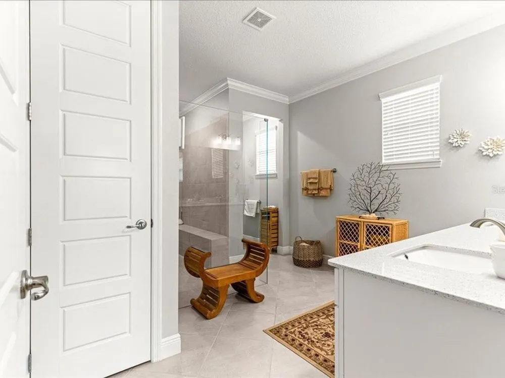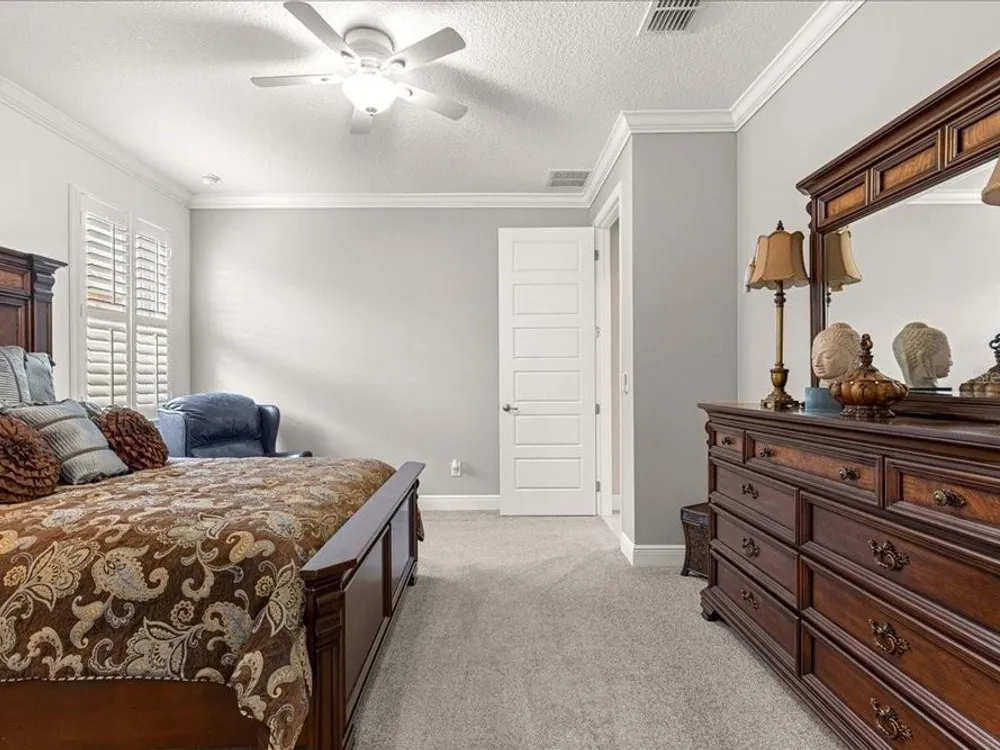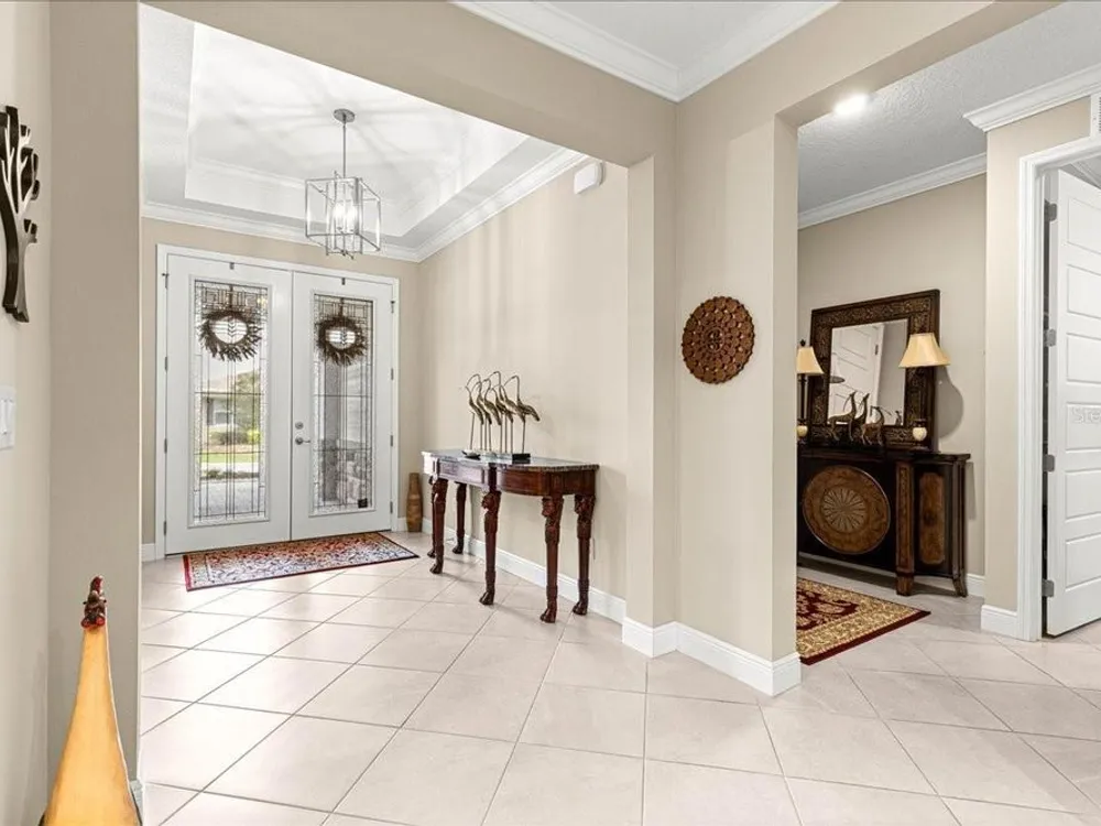 - Central Vacuum, Crown Molding, High Ceilings, Kitchen/Family Room Combo, Open Floorplan, Main Level Primary, Smart Home, Solid Surface Counters, Split Bedrooms, Thermostat, Tray Ceiling(s), Walk-In Closet(s)