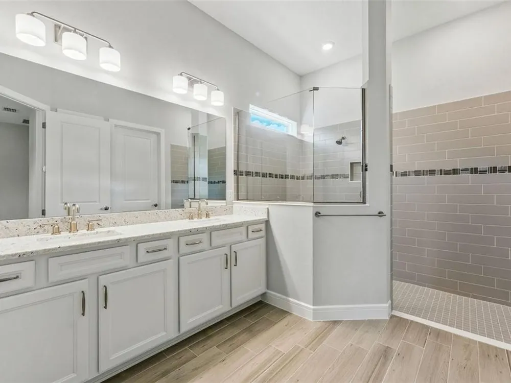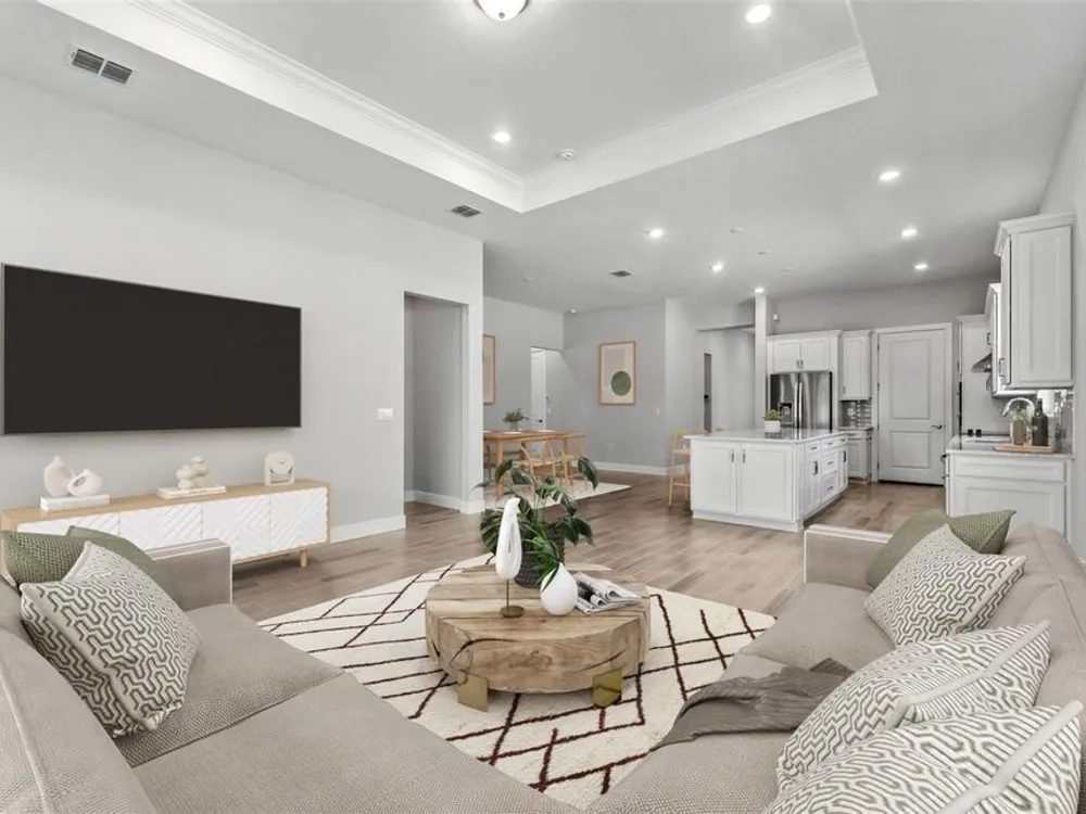 - Built-in Features, Eat-in Kitchen, In-Wall Pest Control, Open Floorplan, Main Level Primary, Solid Surface Counters, Thermostat, Tray Ceiling(s), Walk-In Closet(s)