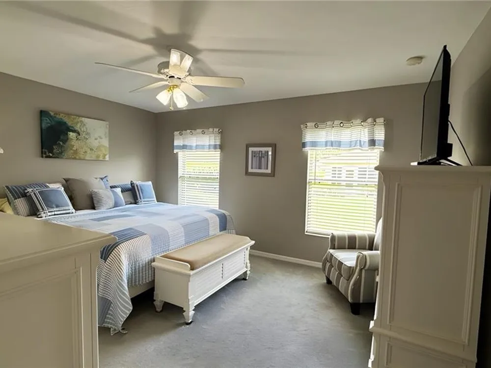 - Ceiling Fan(s), Kitchen/Family Room Combo, Open Floorplan, Main Level Primary, Stone Counters, Thermostat, Walk-In Closet(s), Window Treatments