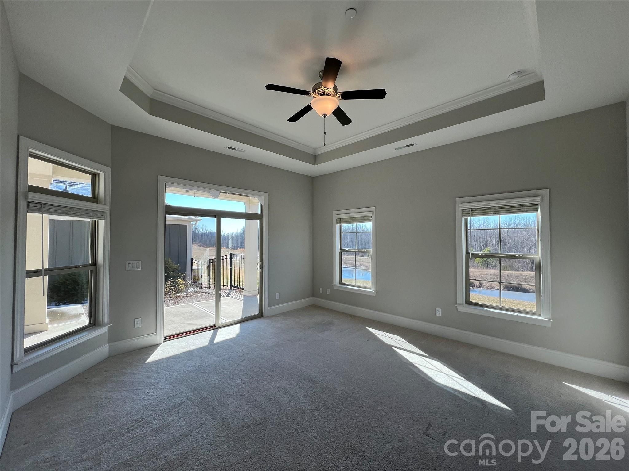 Beautifully upgraded 3-bedroom, 3-full bath home located in a small and desirable 55+ community, thoughtfully designed for high-quality, low-maintenance living. One of the best lots in the community with gorgeous lake/fountain view! This home offers nearly every upgrade available from the builder. A formal entryway welcomes you into an open, efficient floor plan showcasing exceptional craftsmanship throughout. Fresh neutral paint extends throughout the home, including the garage. The gourmet kitchen features a gas range with hood, oversized central island, abundant cabinetry, and generous counter space, opening to a light-filled dining area and great room highlighted by a striking brick-enclosed fireplace. The sought-after first-floor primary suite includes a tray ceiling, walk-in closet, and a luxurious en-suite bath with dual vanities and an oversized zero-step entry tile shower. Step directly from the great room or primary bedroom onto the oversized patio with covered area and ceiling fan—perfect for outdoor relaxation. Enjoy peaceful lake and wooded views from the courtyard, great room, and primary bedroom, with scenic surroundings that include a lake with fountain and walking trails. A secondary bedroom with full bath and a formal office are also conveniently located on the main level. Upstairs features a large bonus room, third bedroom, and full bath—ideal for guests or flexible living space. The garage is equipped with a 240-volt outlet and a tankless gas water heater. HOA amenities include lawn care outside of the individual courtyard, termite and pest control, clubhouse, fitness center, saltwater pool, walking trails, and an active calendar of social activities. Conveniently located near shopping, Concord Mills, and I-85, this exceptional home offers comfort, convenience, and a true lock-and-leave lifestyle. Don’t miss the opportunity to enjoy effortless, active-adult living in a vibrant community.