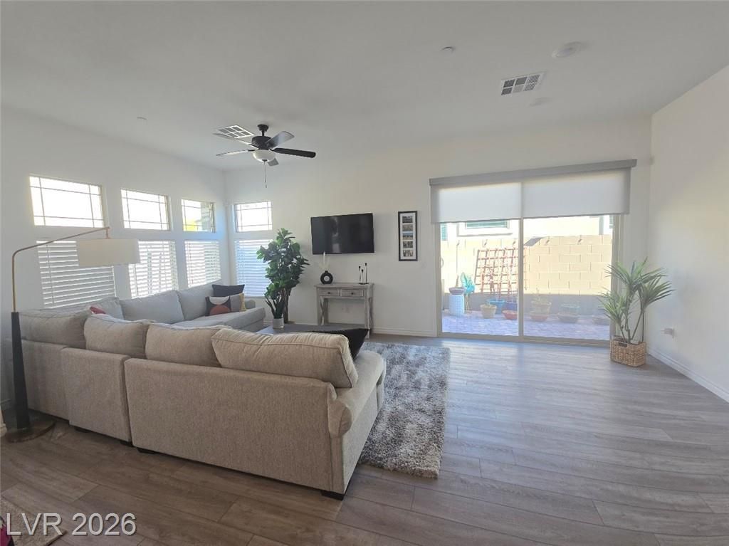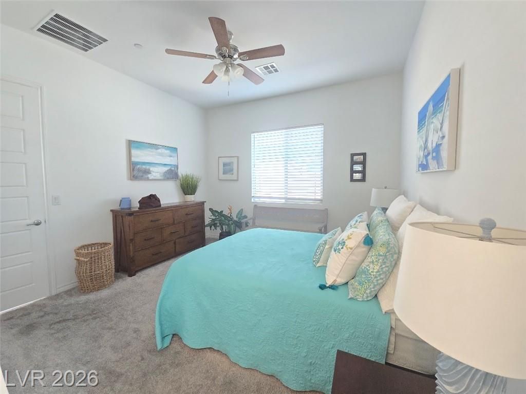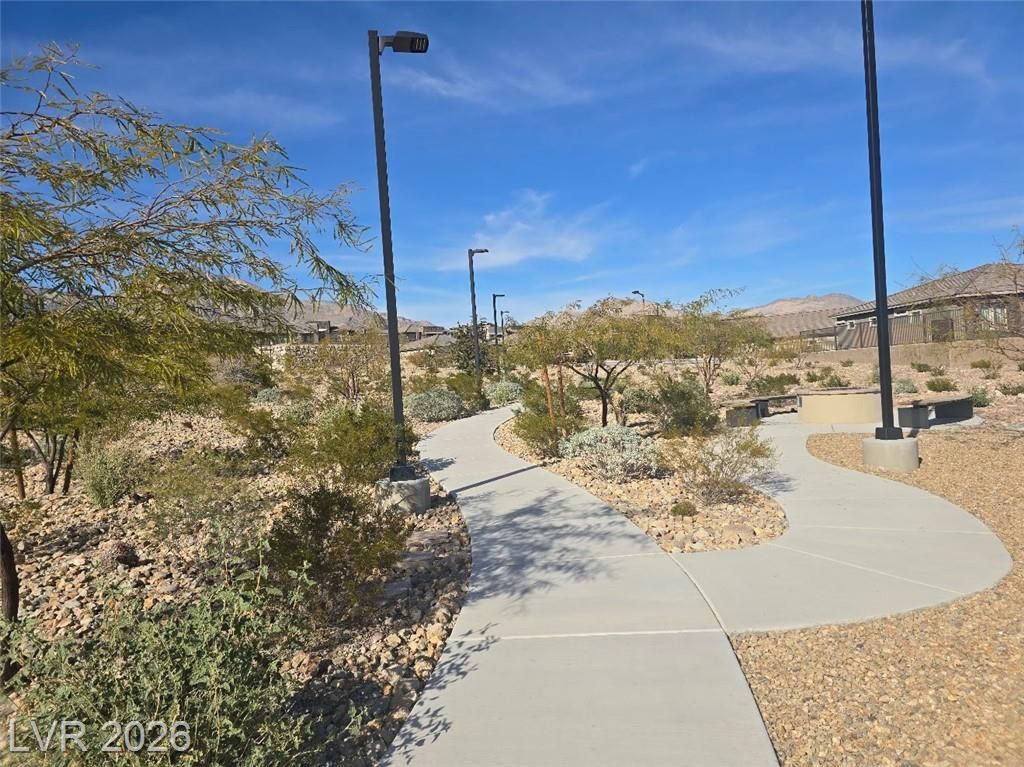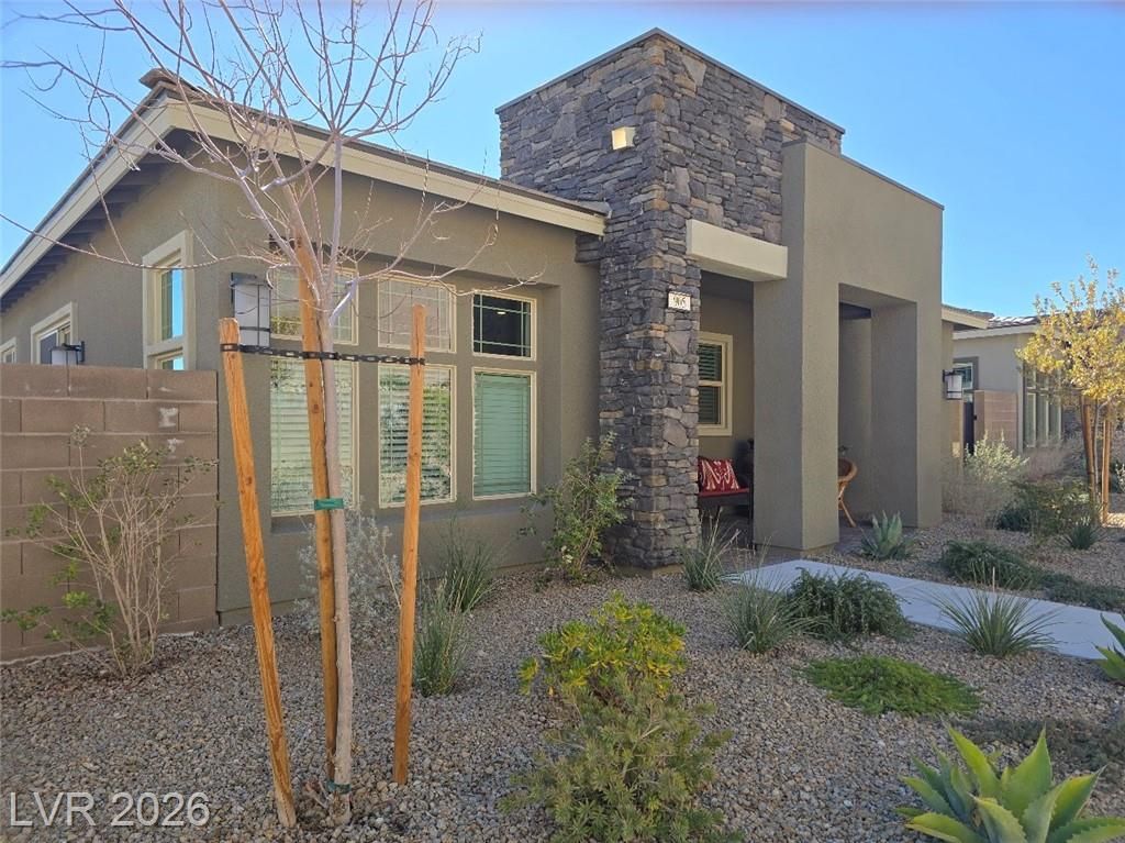 Discover sophisticated resort style living in Summerlin in the guard gated community of Heritage at Stonebridge! Minutes to Red Rock Canyon, Downtown Summerlin & 215 Beltway. PRIME entry from the scenic walking path. Open Concept layout to host incredible gatherings! Gourmet Chef's kitchen with QUARZ countertops a large ISLAND with bar seating + GE Stainless steel appliances. 10 ft ceilings! Luxurious tile plank flooring! Primary suite is separate that has a bath with dual vanities, & walk in shower plus a walk in closet that is nearly 13ft. long! Guest quarters & bath are separate that's great for privacy. Enjoy the outdoors in your private backyard patio area to Grill and Chill! State of the art Clubhouse! Residents get to enjoy the resort style amenities such as a luxury pool, pool cabanas, lap pool, Bocci Ball, Pickle Ball, Tennis & Fitness Center, community events, walking & biking trails, Red Rock, City & Strip views from the trails & clubhouse* Great for outdoor enthusiasts!