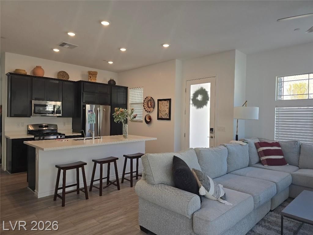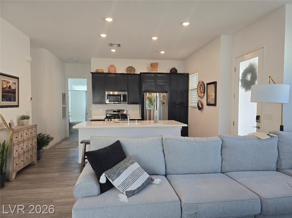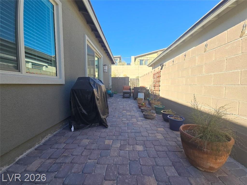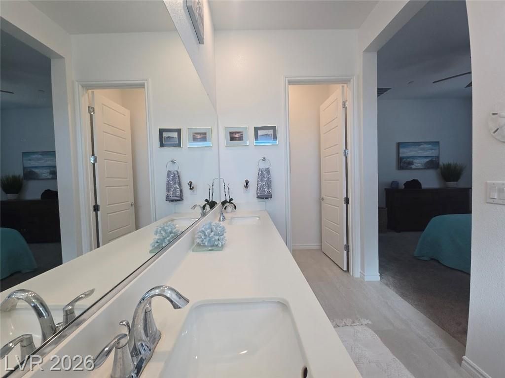 Discover sophisticated resort style living in Summerlin in the guard gated community of Heritage at Stonebridge! Minutes to Red Rock Canyon, Downtown Summerlin & 215 Beltway. PRIME entry from the scenic walking path. Open Concept layout to host incredible gatherings! Gourmet Chef's kitchen with QUARZ countertops a large ISLAND with bar seating + GE Stainless steel appliances. 10 ft ceilings! Luxurious tile plank flooring! Primary suite is separate that has a bath with dual vanities, & walk in shower plus a walk in closet that is nearly 13ft. long! Guest quarters & bath are separate that's great for privacy. Enjoy the outdoors in your private backyard patio area to Grill and Chill! State of the art Clubhouse! Residents get to enjoy the resort style amenities such as a luxury pool, pool cabanas, lap pool, Bocci Ball, Pickle Ball, Tennis & Fitness Center, community events, walking & biking trails, Red Rock, City & Strip views from the trails & clubhouse* Great for outdoor enthusiasts!