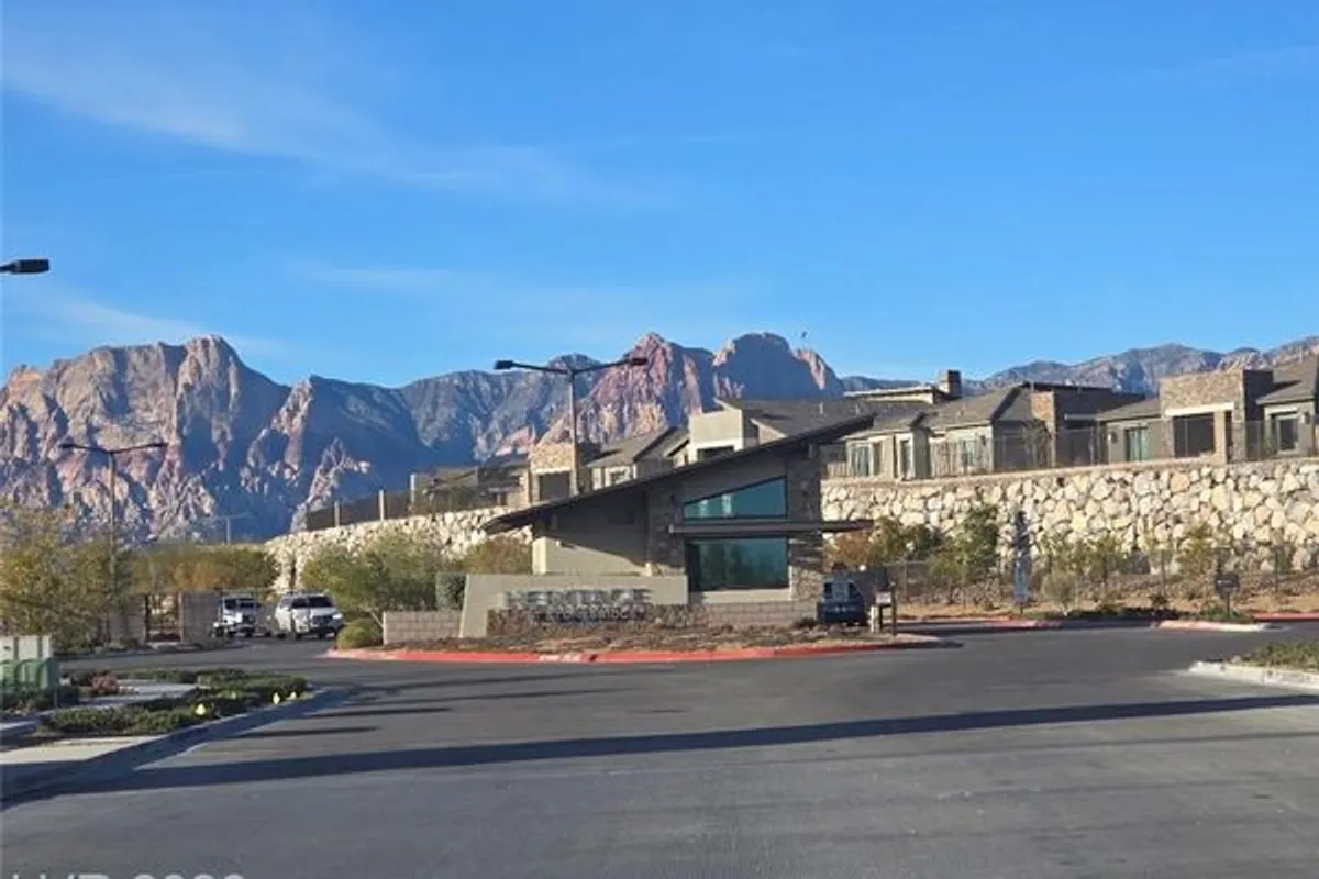 Welcome to premier Summerlin Guard Gated Active Adult resort style living of Heritage at Stonebridge. Minutes to Red Rock Canyon, Downtown Summerlin & 215 Beltway! Model perfect! Open concept design! Spacious GREAT ROOM! Gourmet Chef friendly kitchen with a QUARZ countertops and large ISLAND with bar seating & GE Stainless steel appliances. 10 ft ceilings! Luxury tile plank flooring! Primary suite is separate that has a bath with dual vanities, & walk in shower plus a walk in closet that is nearly 13ft. long! Guest quarters & bath are separate which is great for privacy. Guest parking nearby! Enjoy the outdoors in your private backyard patio area that is easy care maintenance! State of the art Clubhouse! Residents get to enjoy the resort style amenities such as a luxury pool, pool cabanas, lap pool, Bocci Ball, Pickle Ball, Tennis & Fitness Center, community events, walking & biking trails, Red Rock, City & Strip views from the trails & clubhouse** Great for outdoor enthusiasts!