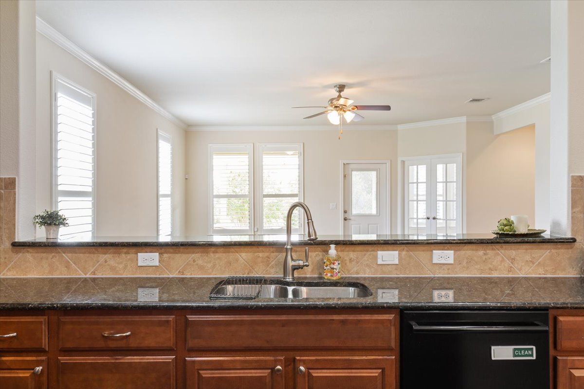 - Breakfast Bar, Ceiling Fan(s), Crown Molding, Separate/Formal Dining Room, Double Vanity, Eat-in Kitchen, French Door(s)/Atrium Door(s), Granite Counters, Kitchen Island, Multiple Dining Areas, NoInteriorSteps, Open Floorplan, Pantry, Recessed Lighting, Walk-In Closet(s), High Speed Internet