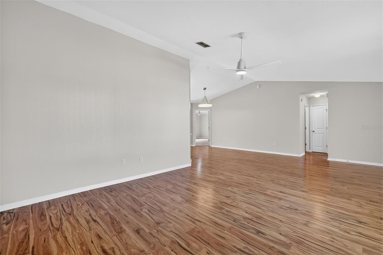 - Ceiling Fan(s), Eat-in Kitchen, High Ceilings, L-Shaped Dining Room, Living/Dining Room, Open Floorplan, Main Level Primary, Thermostat, Vaulted Ceiling(s)