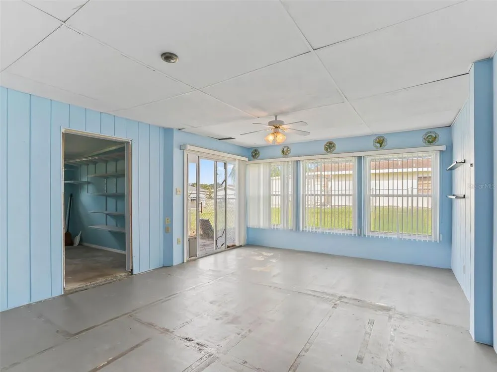 Welcome Home! Step into this cozy 2-bedroom, 2-bath home in a welcoming 55+ community, sitting on nearly a quarter acre with space to breathe, garden, or simply enjoy the Florida lifestyle—inside and out. Enjoy your morning coffee on the covered porch and unwind in the evening on the open patio. Inside, the dining area opens to a bright Florida room, while a spacious bonus room leads to the backyard, perfect for hobbies, guests, or a home office. The kitchen offers ample cabinet and counter space along with stainless steel appliances, ready for your personal touch. A 2-car garage and large parking pad provide plenty of room for vehicles, storage, and visitors. The community includes a pool, hot tub, clubhouse, tennis courts, and shuffleboard, offering a relaxed lifestyle. Whether you’re looking for a comfortable home to personalize or an investment opportunity with solid potential, this property is ready for your vision. Conveniently located just minutes from shopping, dining, and medical facilities, this home offers a great foundation and plenty of possibilities. Come see the potential and imagine the lifestyle waiting for you here.