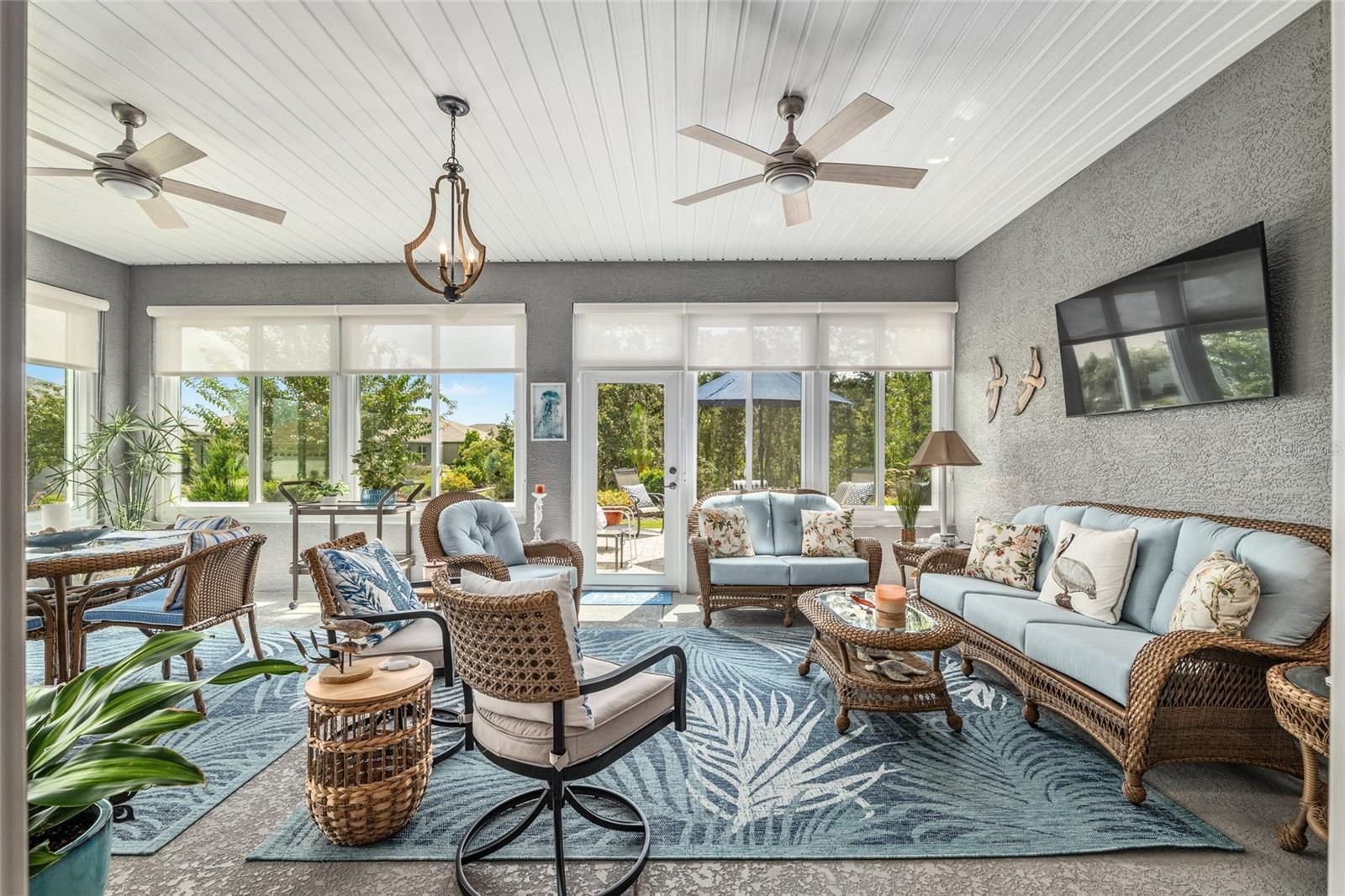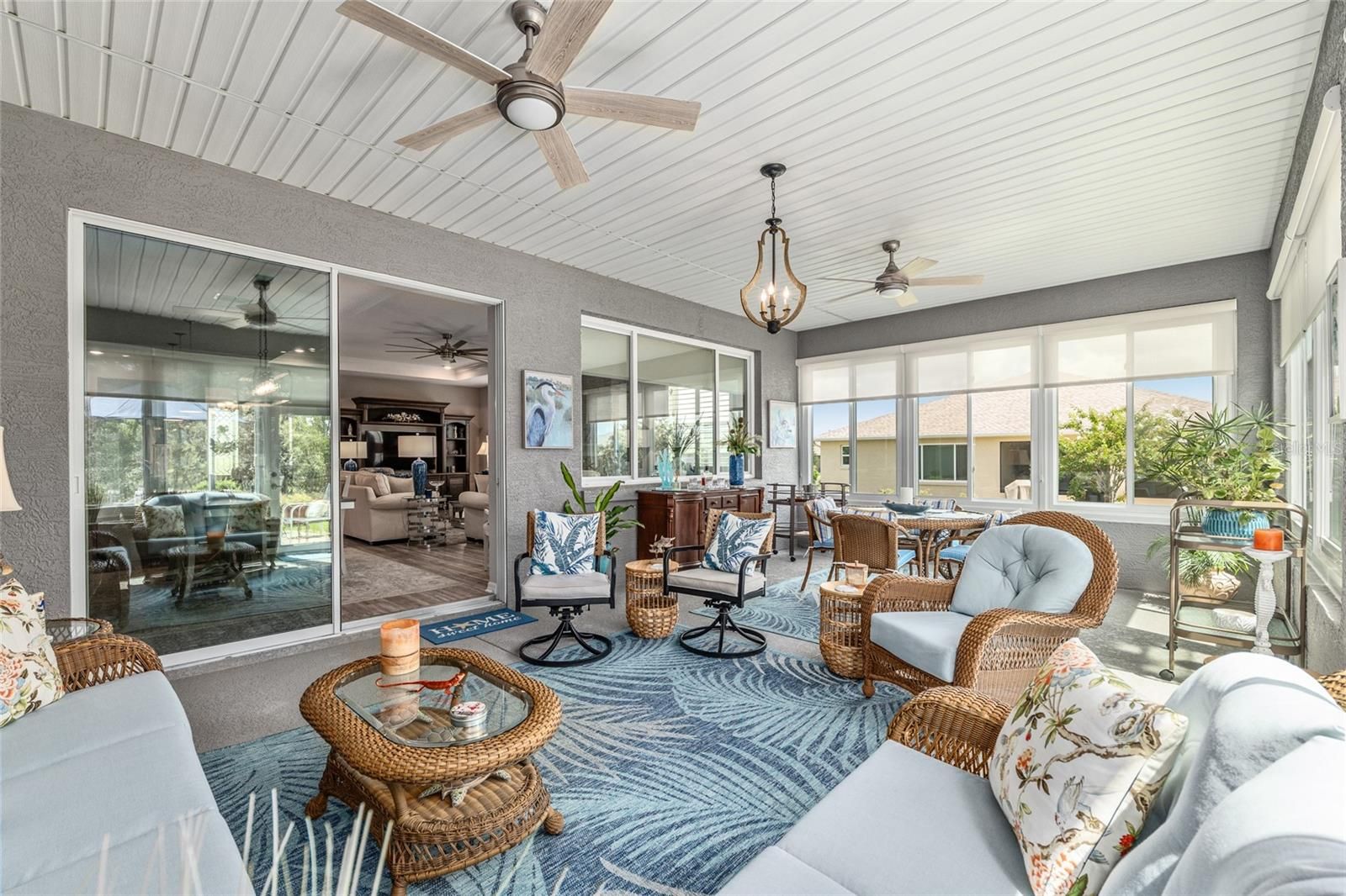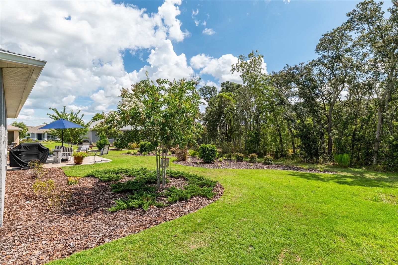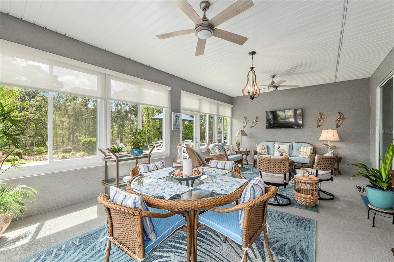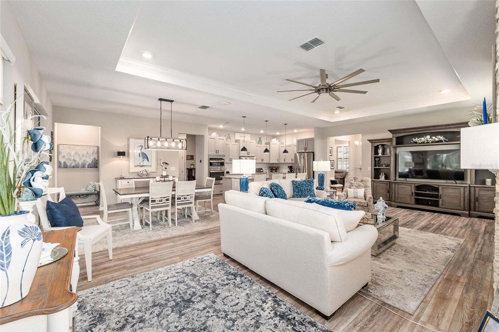 Offering a complimentary 1YR home warranty to the new buyer! If you are looking for an impeccably maintained, styled, and upgraded newer construction home in the Avalon subdivision of On Top of the World - this is it! Nestled on a premium lot with a privately wooded backyard, this 2 bedroom + den, 2 bathroom Ariana model, built in 2021, showcases over 2,000+ sqft of beautifully designed living space. The Florida-inspired interior features high ceilings with various tray detailing, custom Plantation Shutters and shades, brand-new LVP flooring, and fresh paint throughout. The great room greets you with a centerpiece natural stone electric fireplace, perfect for entertaining. Enjoy hosting from your chef’s kitchen, boasting granite countertops, custom wooden cabinetry, GE stainless appliances with gas cooktop, and a large eat-in island. Your private owner’s suite leads to an accessible ensuite bathroom, offering a walk-in shower with bench, dual vanities, and spacious walk-in closet. To the front of the home, you’ll find a separate guest wing with a nearby full bathroom, and a cozy den, ideal for quiet relaxation. Enjoy the sunrise from the comfort of your newly enclosed and insulated extended lanai, or BBQ with friends on the new paver patio surrounded by fresh landscaping. The oversized 2.5-car garage includes golf cart parking, offering plenty of space for your toys and additional storage. Just a short cart ride to OTOW amenities, including The Arbors—this home is the perfect blend of style, comfort, and convenience. Your new lifestyle begins here!