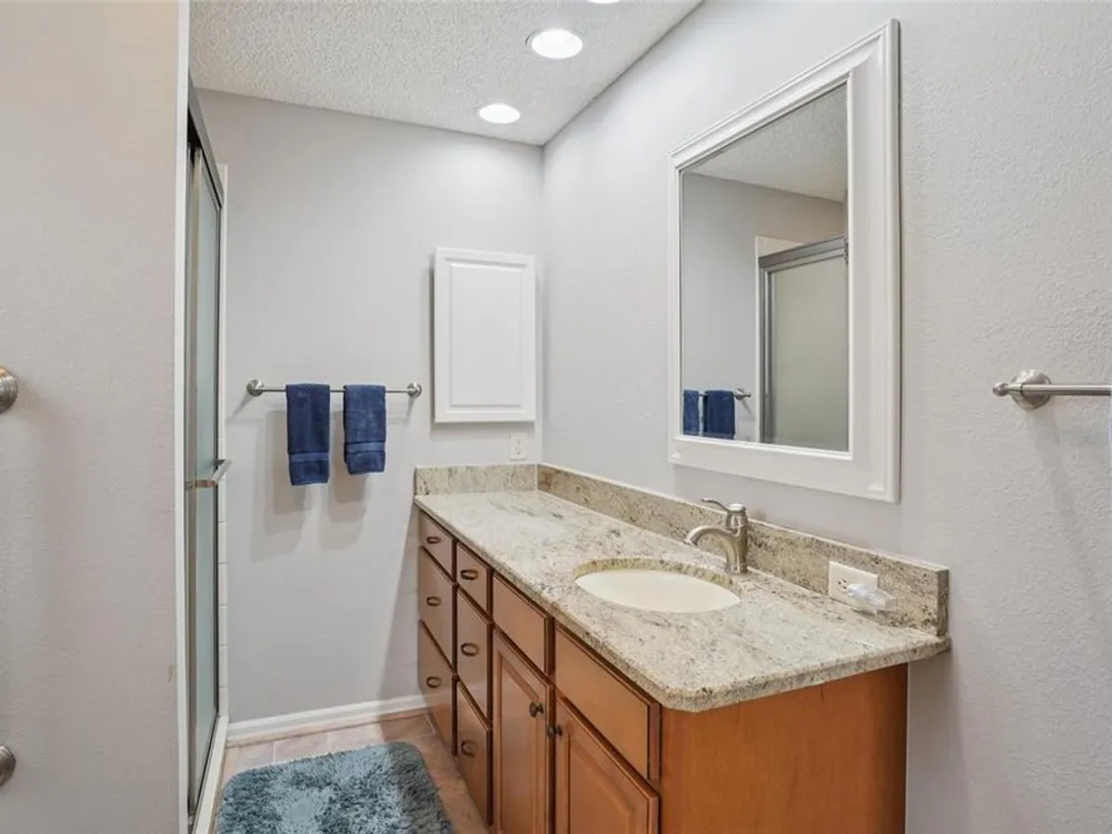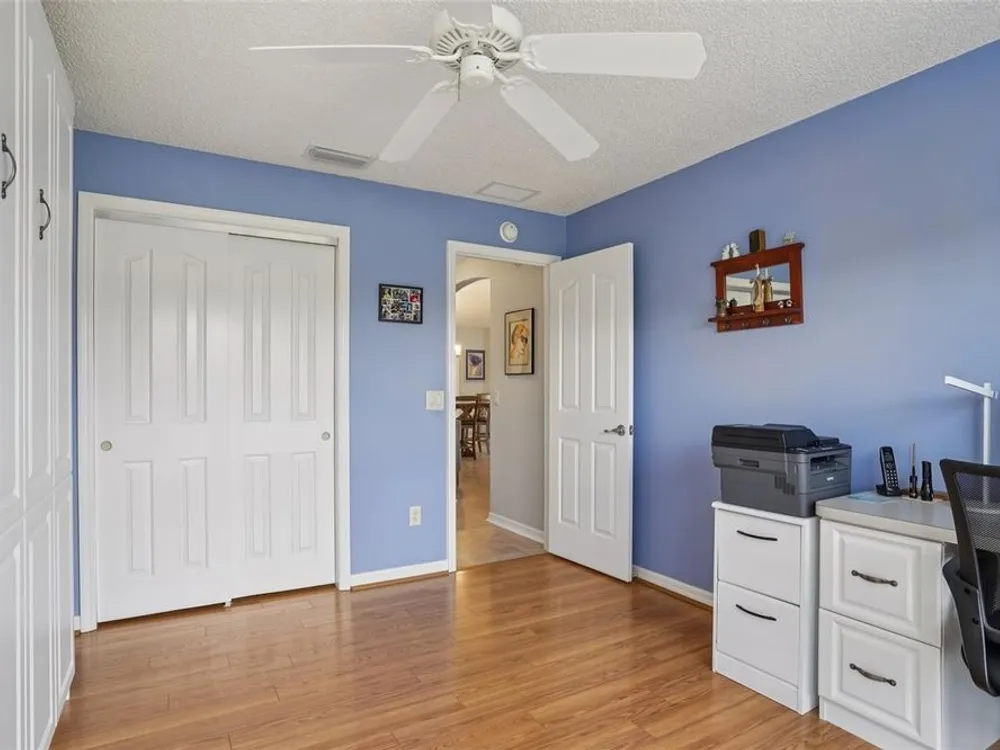 - Ceiling Fan(s), High Ceilings, Living/Dining Room, Open Floorplan, Main Level Primary, Stone Counters, Walk-In Closet(s)
