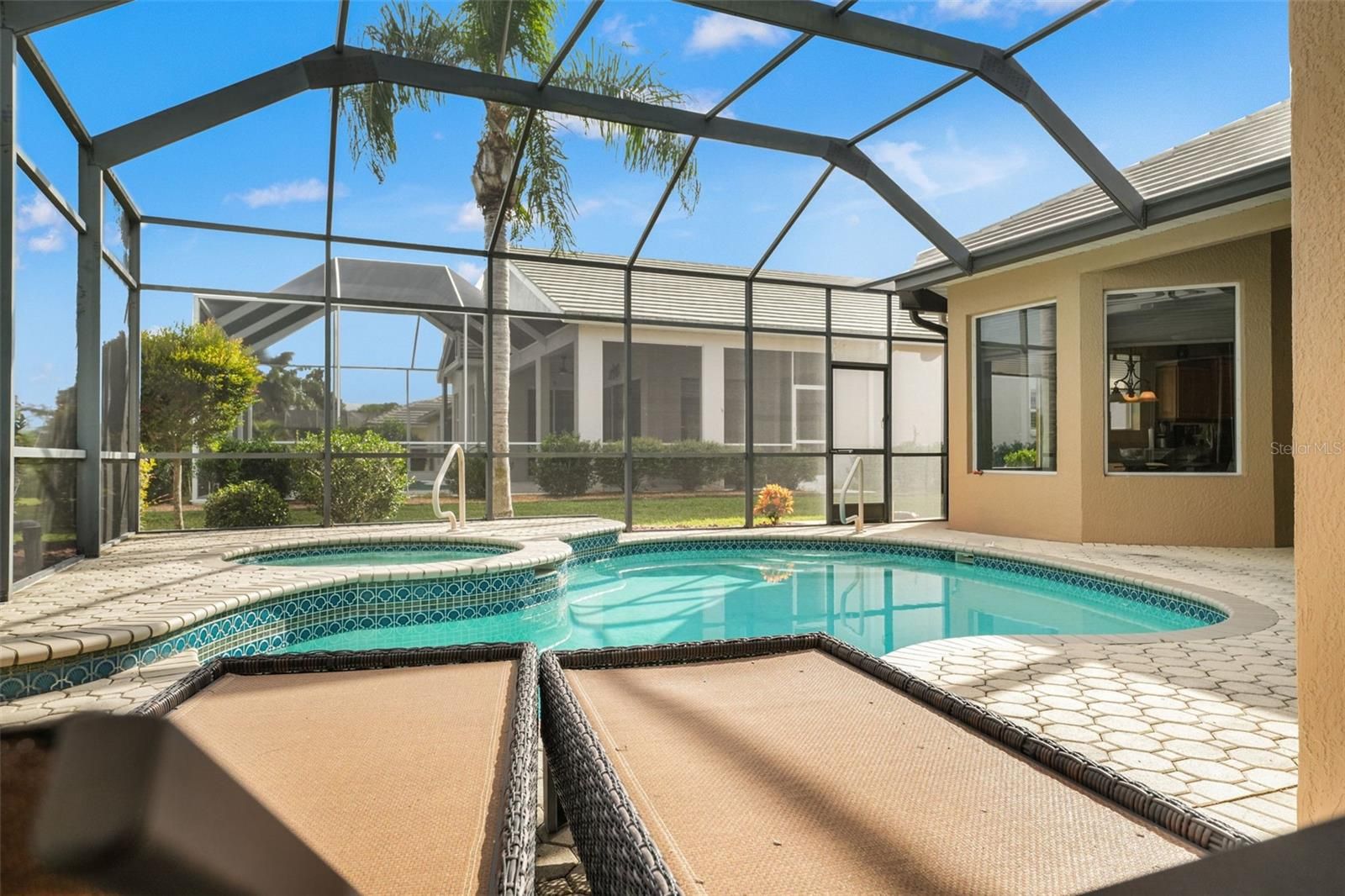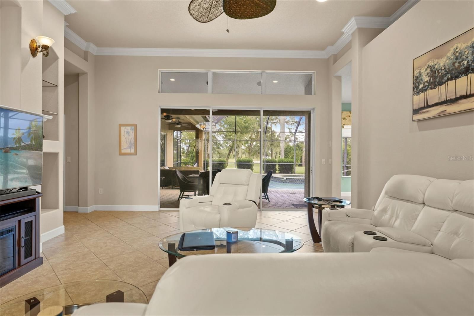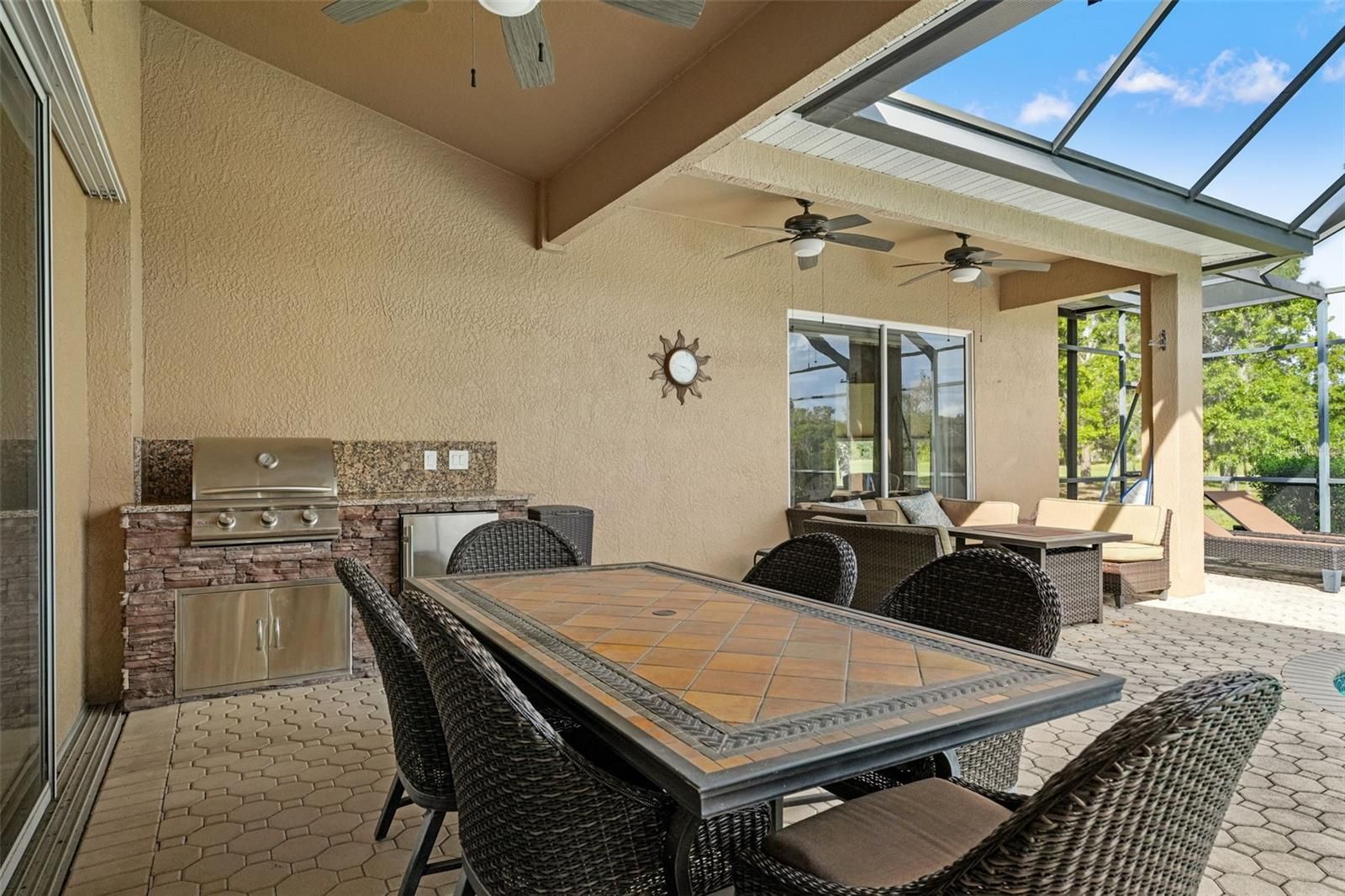 Experience Resort-Style Living in GlenLakes Golf & Country Club! Wake up to breathtaking sunrises every morning from this immaculately maintained Addison-built home perfectly situated on the 10th hole of the GlenLakes championship golf course. The rear of the home faces due east, allowing the morning light to fill your living spaces while you enjoy serene views of the fairway and amazing sunrises over your sparkling pool and spa. Inside, you'll find luxury finishes and thoughtful upgrades throughout — including elegant plantation shutters, crown molding, custom wood cabinetry, granite countertops, and designer light fixtures and fans. The kitchen is a chef's delight with under-cabinet lighting, newer stainless-steel appliances, and smart window treatments that bring both style and convenience. Enjoy the Florida lifestyle year-round with tile floors in every room (no carpet!), a brand-new water heater, and a beautifully landscaped yard accented with Curb-A-Lawn edging, a paver patio, and an inviting newly re-screened lanai overlooking the pool and spa with a built in outdoor kitchen area with top of the line BBQ and refrigerator. The 2 car oversized attached garage comes complete with Tesla wall charger and a side entrance for your golf cart. Nestled within the sought after, gated GlenLakes Golf & Country Club community, residents enjoy resort-style amenities including golf, tennis, pickleball, fitness center, clubhouse dining, and a vibrant social calendar — all just minutes from the Gulf Coast and Weeki Wachee Springs. This home is in a maintenance free area of the community so your dues cover lawn care and irrigation, spend more time relaxing and enjoying your home! Come see this beautiful home in person — and fall in love with the sunrise views, golf course setting, and GlenLakes lifestyle