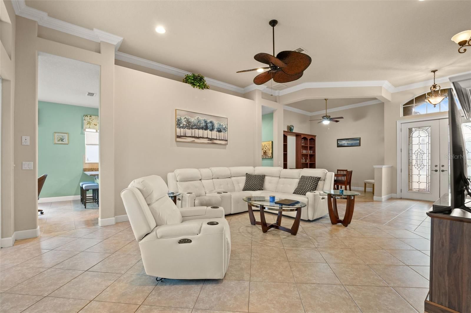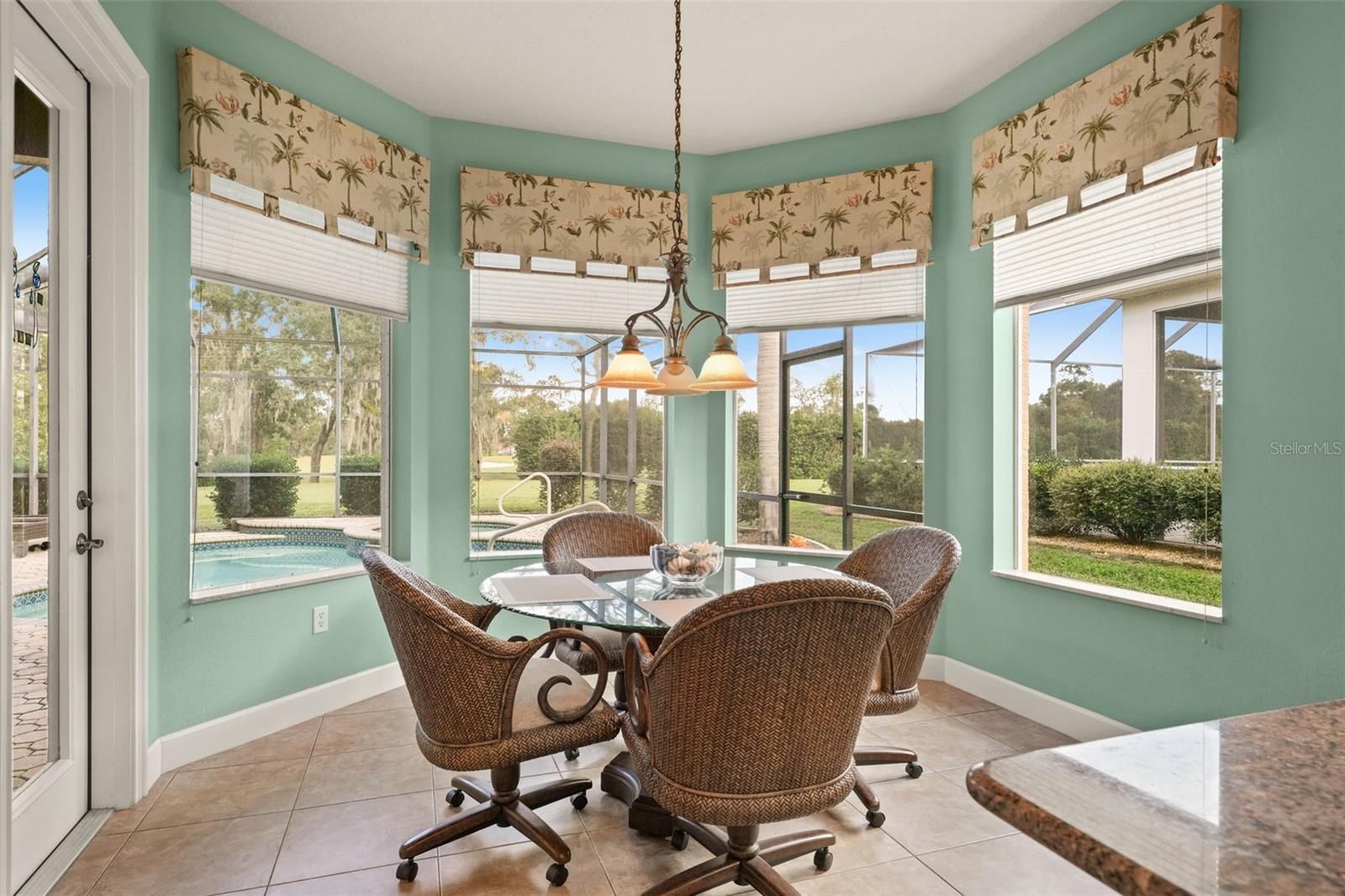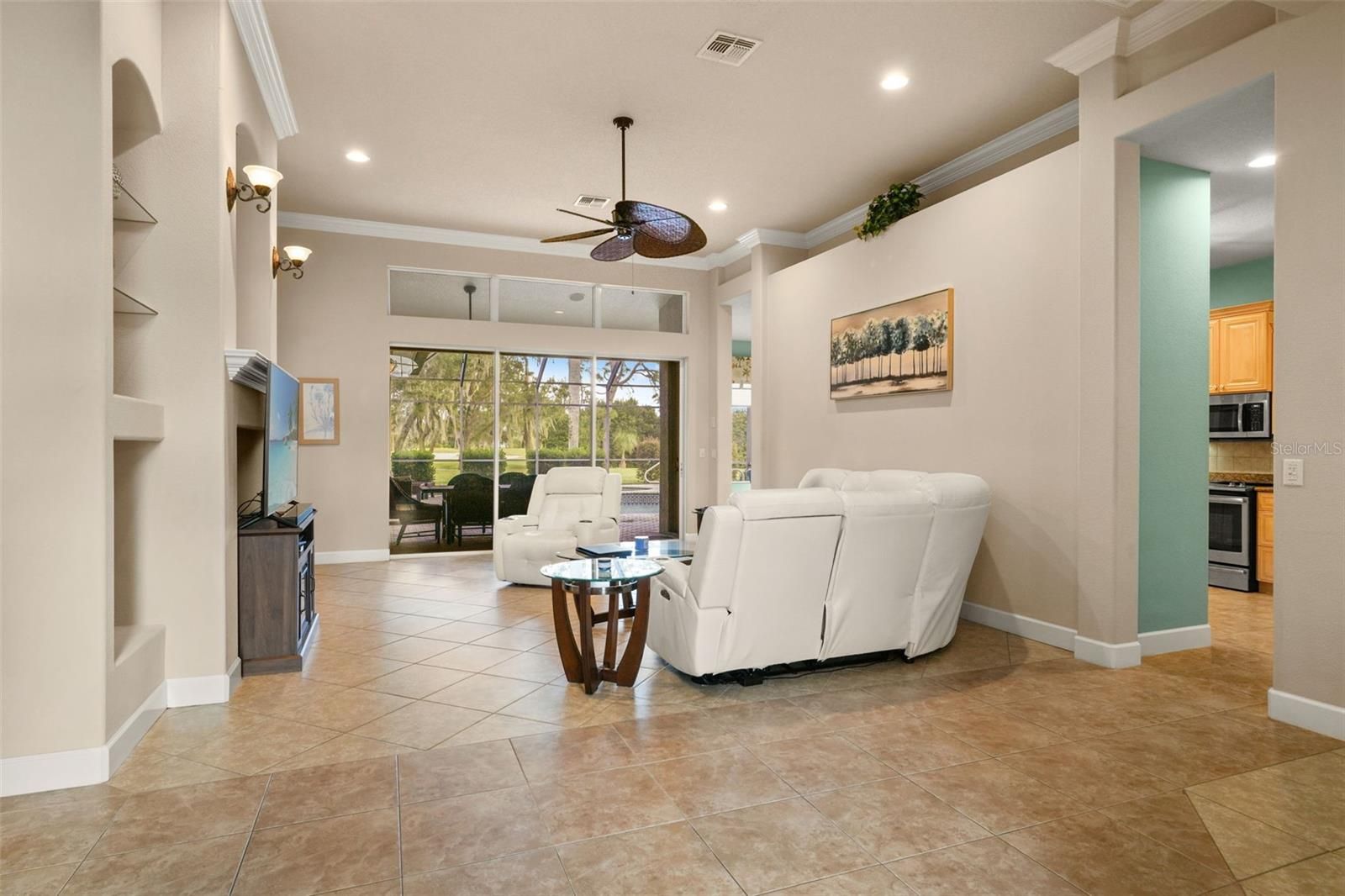 Experience Resort-Style Living in GlenLakes Golf & Country Club! Wake up to breathtaking sunrises every morning from this immaculately maintained Addison-built home perfectly situated on the 10th hole of the GlenLakes championship golf course. The rear of the home faces due east, allowing the morning light to fill your living spaces while you enjoy serene views of the fairway and amazing sunrises over your sparkling pool and spa. Inside, you'll find luxury finishes and thoughtful upgrades throughout — including elegant plantation shutters, crown molding, custom wood cabinetry, granite countertops, and designer light fixtures and fans. The kitchen is a chef's delight with under-cabinet lighting, newer stainless-steel appliances, and smart window treatments that bring both style and convenience. Enjoy the Florida lifestyle year-round with tile floors in every room (no carpet!), a brand-new water heater, and a beautifully landscaped yard accented with Curb-A-Lawn edging, a paver patio, and an inviting newly re-screened lanai overlooking the pool and spa with a built in outdoor kitchen area with top of the line BBQ and refrigerator. The 2 car oversized attached garage comes complete with Tesla wall charger and a side entrance for your golf cart. Nestled within the sought after, gated GlenLakes Golf & Country Club community, residents enjoy resort-style amenities including golf, tennis, pickleball, fitness center, clubhouse dining, and a vibrant social calendar — all just minutes from the Gulf Coast and Weeki Wachee Springs. This home is in a maintenance free area of the community so your dues cover lawn care and irrigation, spend more time relaxing and enjoying your home! Come see this beautiful home in person — and fall in love with the sunrise views, golf course setting, and GlenLakes lifestyle