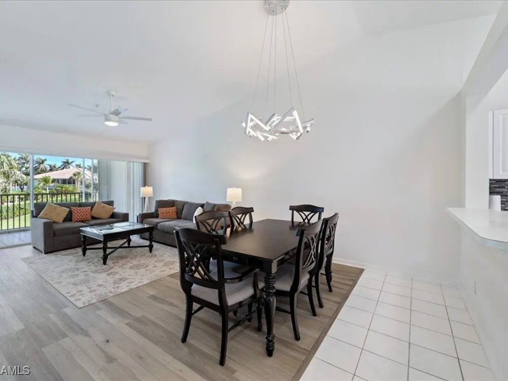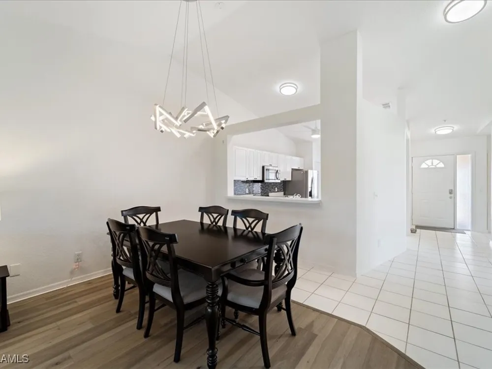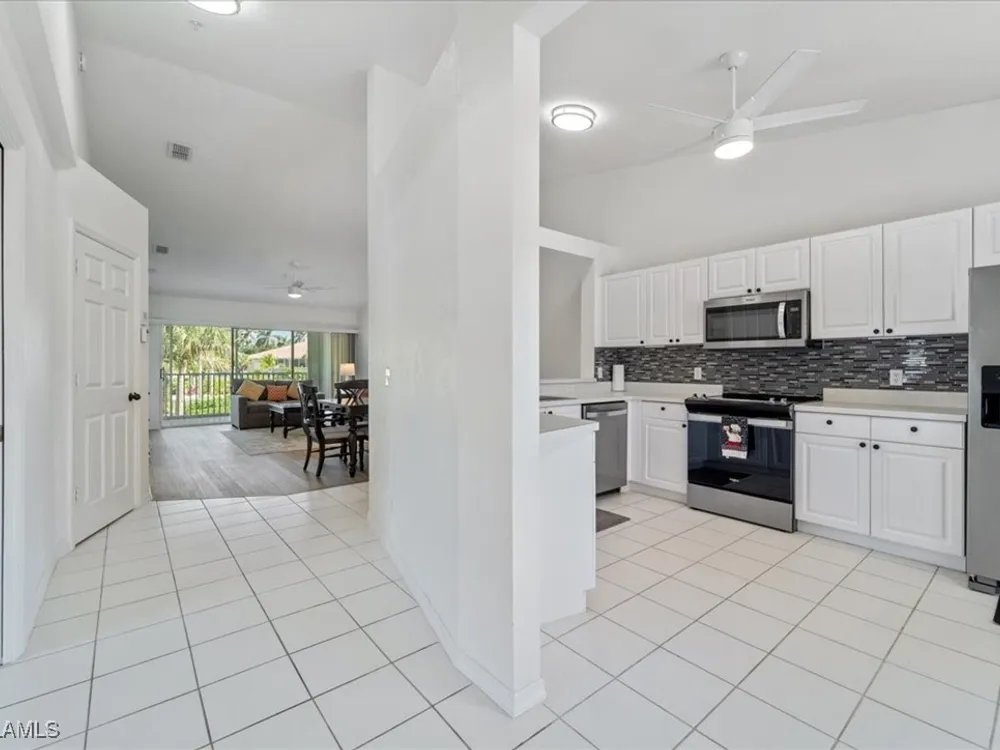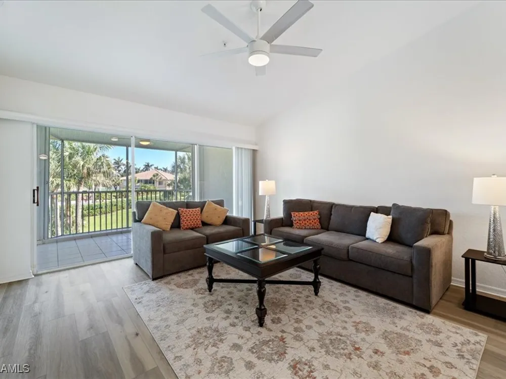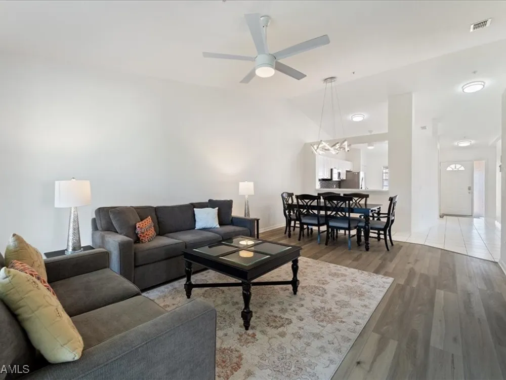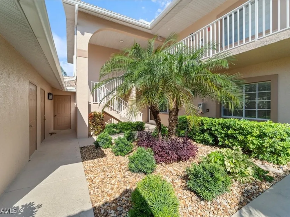 Experience serene and meticulous landscaped views living in this beautiful 3-bedroom, 2-bathroom condo located in the desirable Peridot at Sunstone community within the prestigious Lely Resort. This second-floor end unit offers unparalleled tranquility and a private screened lanai that showcases the lush landscaped property. Inside, soaring cathedral ceilings enhance the open-concept living and dining area with LVT flooring, creating a spacious and inviting atmosphere. The kitchen is well-appointed with new appliances and a spacious eating area, perfect for enjoying morning coffee. The primary suite is a true retreat with a generous size bedroom and bath with double vanity, walk-in shower and large walk-in closet. Ceiling fans throughout the home provide added comfort, and the detached single-car garage adds convenience. Peridot residents enjoy a private neighborhood pool and beautifully maintained surroundings. Located near the main entrance of Lely Resort and Highway 41, this condo offers easy access to shopping, dining, and the pristine beaches of both downtown Naples and Marco Island. Lely Resort’s master-planned community boasts three championship golf courses and the exclusive Players Club & Spa, which includes a resort-style pool, fitness center, dining, and a vibrant tennis center. While membership is not mandatory for this condo, owners can apply to join and enjoy its exceptional amenities. Don’t miss the opportunity to own a piece of paradise in one of Naples’ most sought-after communities.