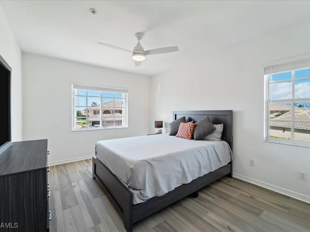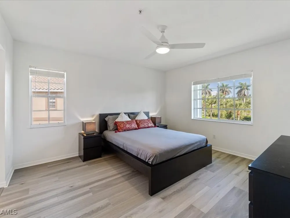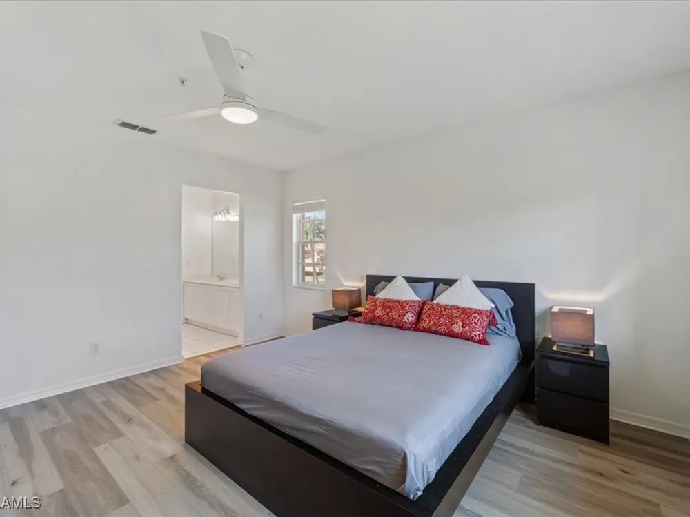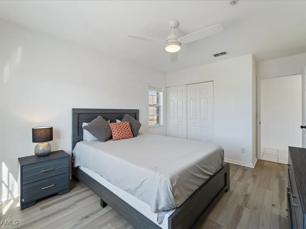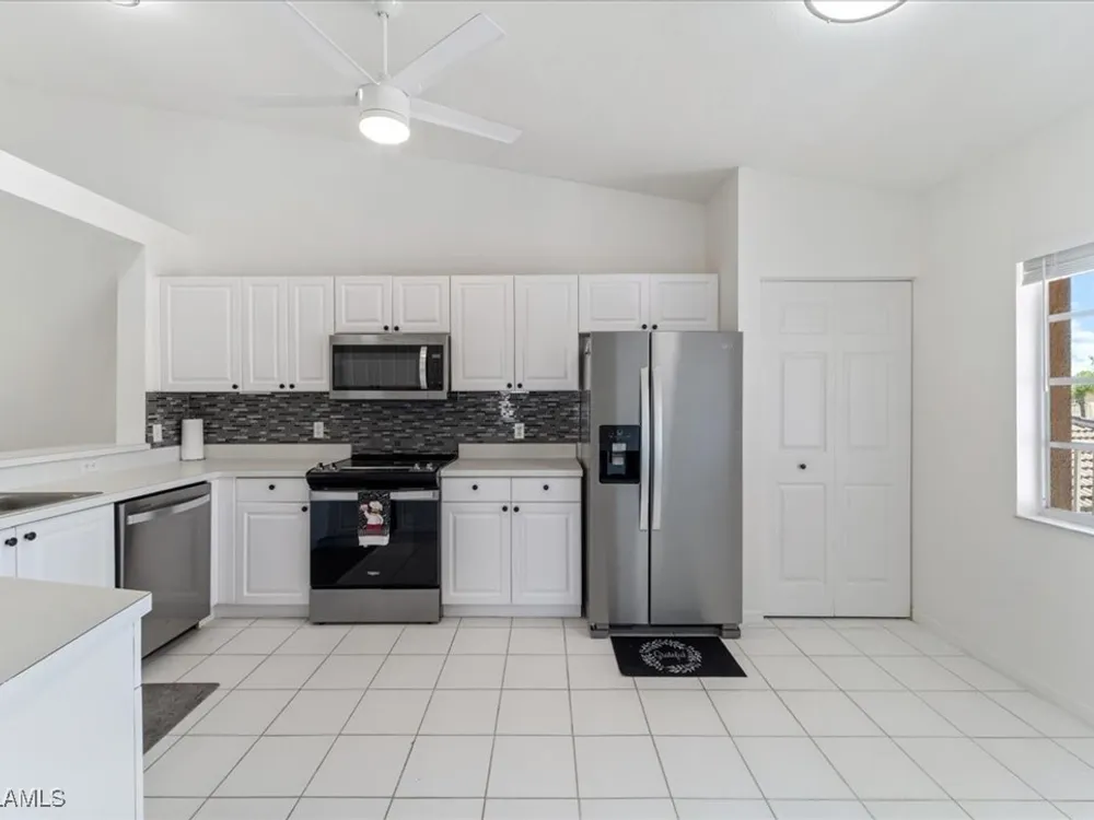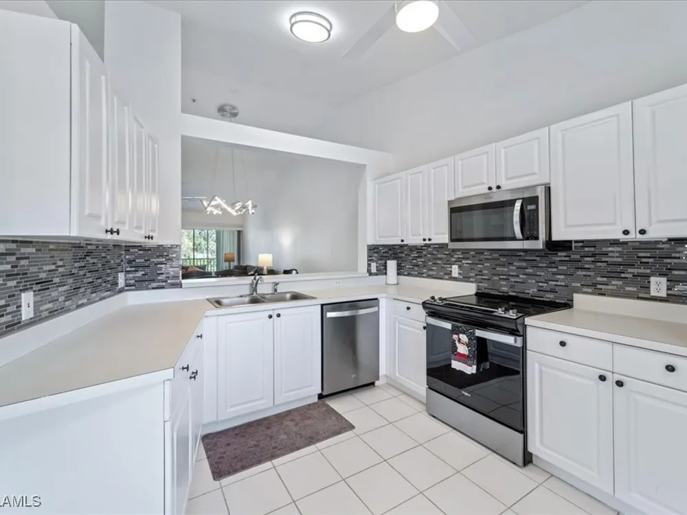 Experience serene and meticulous landscaped views living in this beautiful 3-bedroom, 2-bathroom condo located in the desirable Peridot at Sunstone community within the prestigious Lely Resort. This second-floor end unit offers unparalleled tranquility and a private screened lanai that showcases the lush landscaped property. Inside, soaring cathedral ceilings enhance the open-concept living and dining area with LVT flooring, creating a spacious and inviting atmosphere. The kitchen is well-appointed with new appliances and a spacious eating area, perfect for enjoying morning coffee. The primary suite is a true retreat with a generous size bedroom and bath with double vanity, walk-in shower and large walk-in closet. Ceiling fans throughout the home provide added comfort, and the detached single-car garage adds convenience. Peridot residents enjoy a private neighborhood pool and beautifully maintained surroundings. Located near the main entrance of Lely Resort and Highway 41, this condo offers easy access to shopping, dining, and the pristine beaches of both downtown Naples and Marco Island. Lely Resort’s master-planned community boasts three championship golf courses and the exclusive Players Club & Spa, which includes a resort-style pool, fitness center, dining, and a vibrant tennis center. While membership is not mandatory for this condo, owners can apply to join and enjoy its exceptional amenities. Don’t miss the opportunity to own a piece of paradise in one of Naples’ most sought-after communities.