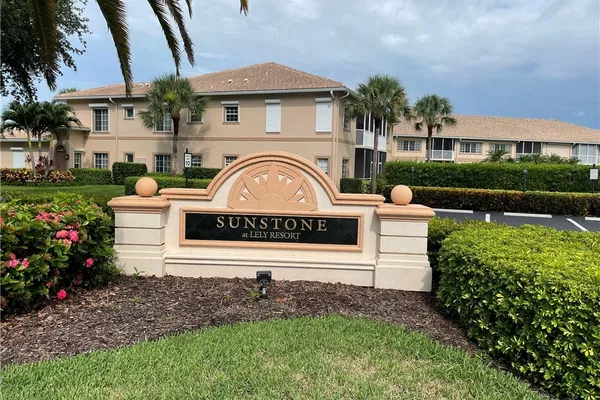 Enjoy fantastic lake views from the screened lanai of this comfortable 2 bedroom plus den condo located in the popular neighborhood of Peridot at Sunstone in the beautiful Lely Resort community. Also has a detached single car garage. Is a 2nd floor unit in a 2 story building so no one lives above you. Very quiet and peaceful. Living /dining room has cathedral ceilings. Also a wet bar. Spacious kitchen has an eat-in breakfast dining area. Comfortable master bedroom also offers views of the very large lake. Master bath offers a walk-in shower and a spa tub. Also has a walk-in closet and second closet. Ceiling fans throughout the unit. Neighborhood is very well maintained and peaceful. It has a great location within Lely Resort with quick access to the main entrance and Hwy 41. Also has a private neighborhood pool. The master planned community of Lely Resort provides many amenities for the residents including 3 great champion golf courses. Also, there is the beautiful private membership Players Club clubhouse which has a full restaurant, pool, fitness center and active tennis center. Ownership of this condo does not require membership in the Players Club, but the owner can apply for membership. The convenient central location of Lely Resort provides an equally short direct drive to the beaches,shopping,activities and restaurants of both downtown Naples and Marco Island.