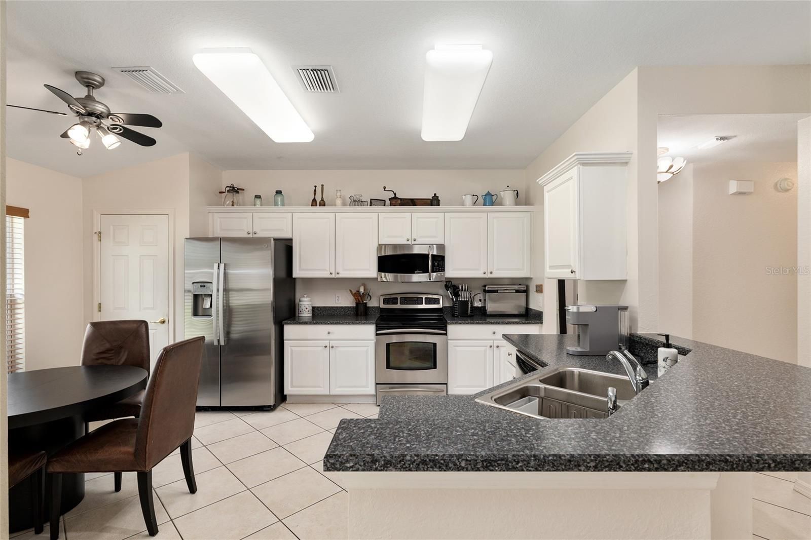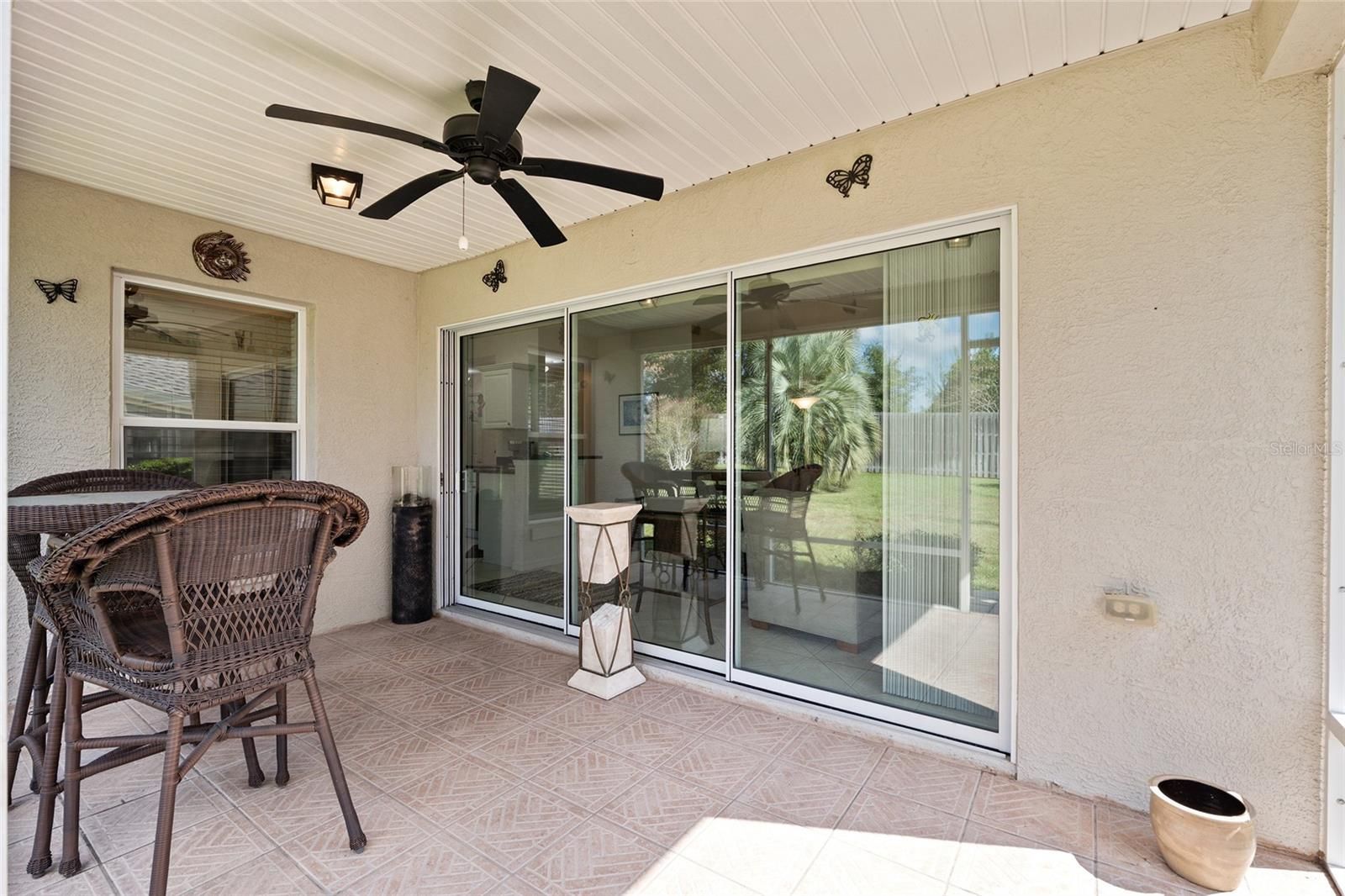This beautifully maintained Alydar model offers 2 bedrooms, 2 baths, and 1,346 sq ft of comfortable living space. The home features tile flooring in the main areas, cozy carpeted bedrooms, and an open layout filled with natural light. The kitchen showcases stainless steel appliances and overlooks the living and dining spaces. A triple slider opens to the tiled, screened in lanai with quiet views of your semi private back yard. Additional features include an inside laundry room, paver driveway, roof replaced in 2019, and a new AC in 2024. Enjoy the active lifestyle and resort style amenities of Del Webb Spruce Creek Golf & Country Club including golf, pools, fitness center, and community clubs.