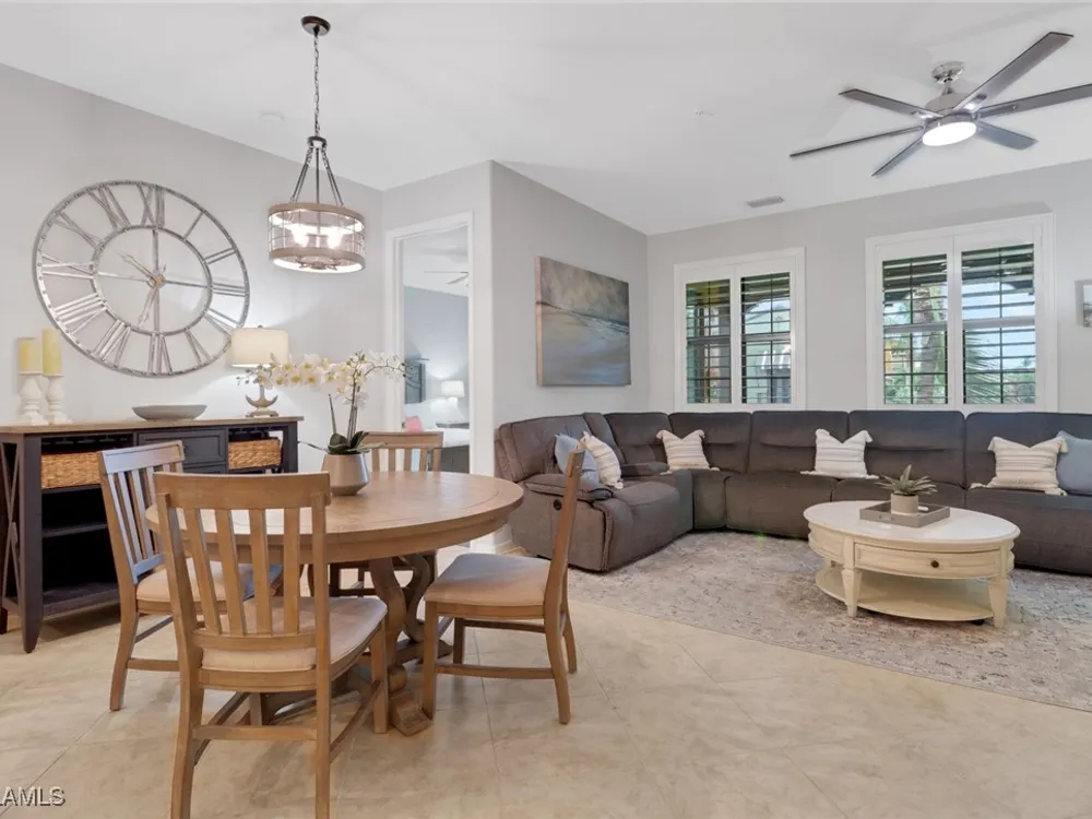 Welcome to your dream home in the highly desirable Ole' community at Lely Resort! This inviting 3 bedroom, 2 bathroom townhouse with a 2-car garage offers a spacious, open layout with just under 1,800 sq. ft. of thoughtfully designed living space. The popular San Pablo floor plan is perfect for both everyday comfort and effortless entertaining. Throughout the home, you'll find a neutral color palette that enhances the welcoming atmosphere, along with beautiful plantation shutters, laminate flooring in bedrooms and stairs, updated light fixtures and fans, and a screened lanai and porch for added charm. Step outside to the largest lanai in Ole', where you can sip your morning coffee. This home is being sold furnished, meaning you can move in and start enjoying resort-style living right away. As an added bonus, the community has brand-new roofs. The property is just a short walk away from all the exciting clubhouse amenities. As a resident, you’ll enjoy exclusive access to the vibrant Ole' Village Center, where a friendly pub, TVs, billiard tables, and delicious food await. The resort-style amenities are designed for ultimate relaxation and enjoyment, including a beautiful pool, toddler splash area and private cabanas. For those who enjoy staying active, you’ll have access to a state-of-the-art fitness center and aerobics studio, a movie theater, and a peaceful library. Sports enthusiasts can take full advantage of the tennis, pickleball, racquetball, and basketball courts. Located within the expansive 3,000-acre Lely Resort, you will be surrounded by stunning natural beauty, including three championship golf courses, scenic walking and running trails, and serene lakes and preserves. Whether you’re searching for a primary residence or a peaceful vacation retreat, you’ll find yourself living the endless vacation lifestyle in the enchanting Ole' community.