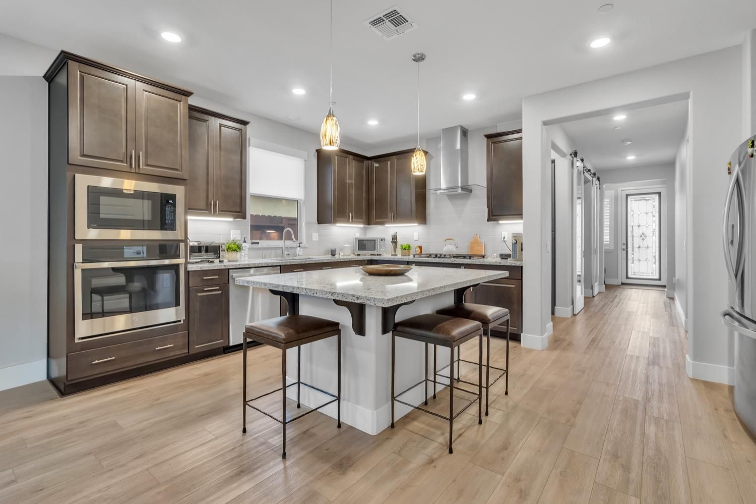 - Built-In Electric Oven, Free-Standing Refrigerator, Gas Cooktop, Built-In Gas Range, Range Hood, Ice Maker, Dishwasher, Disposal, Microwave, Double Oven, Tankless Water Heater