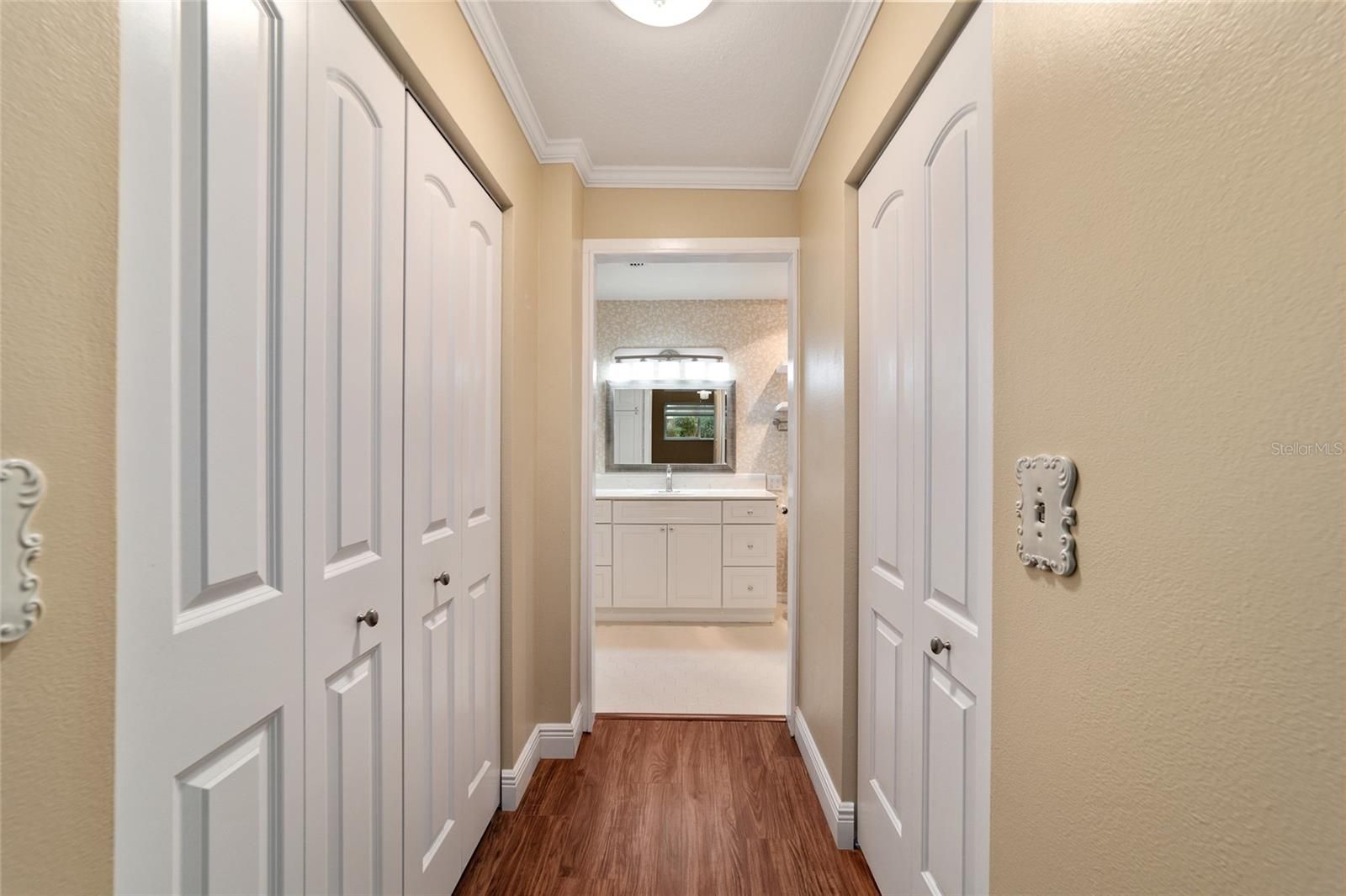 - Cathedral Ceiling(s), Ceiling Fan(s), Eat-in Kitchen, High Ceilings, Living/Dining Room, Main Level Primary, Split Bedrooms, Walk-In Closet(s), Window Treatments