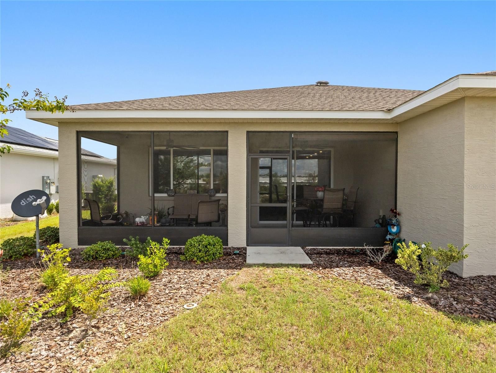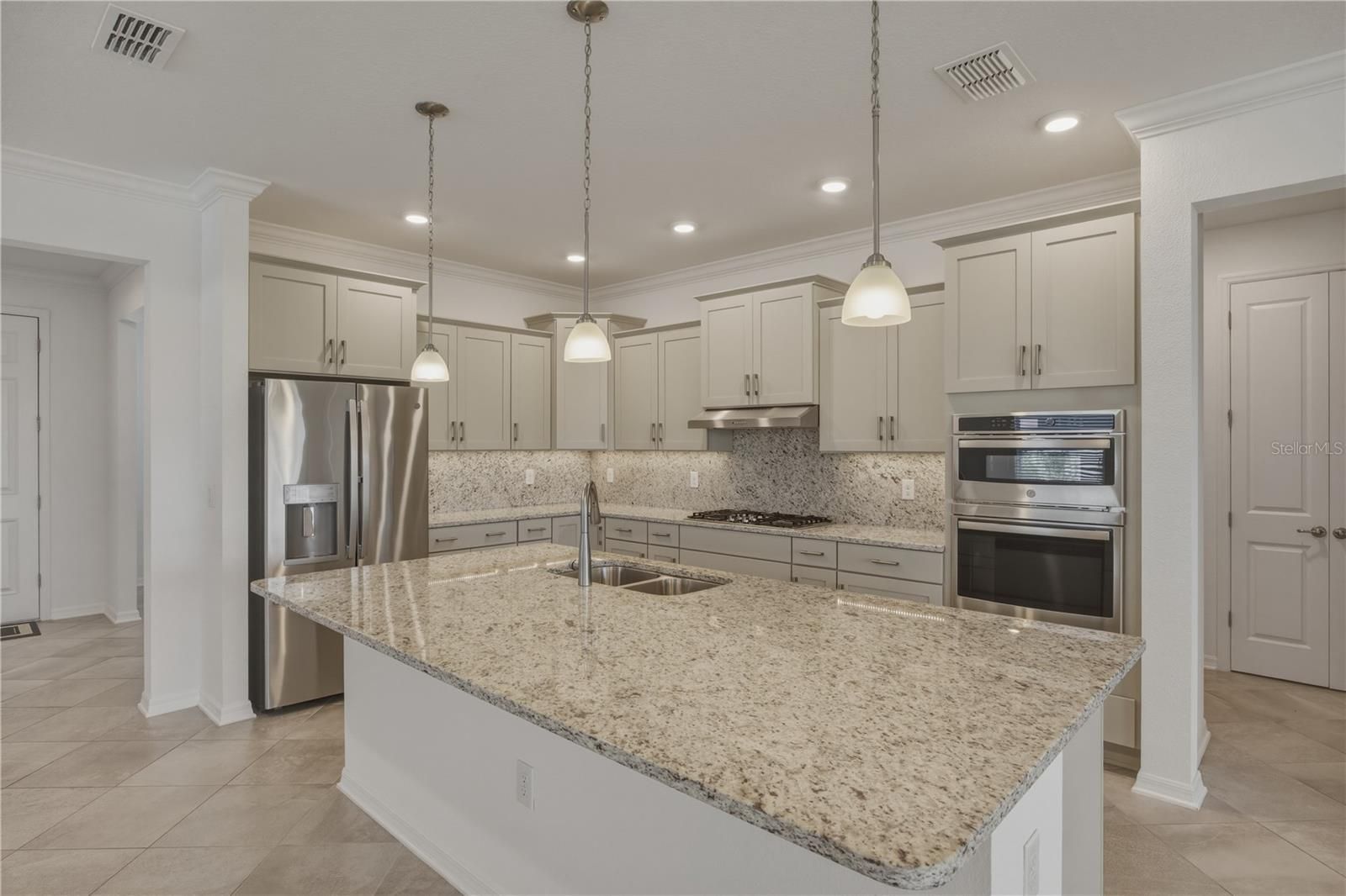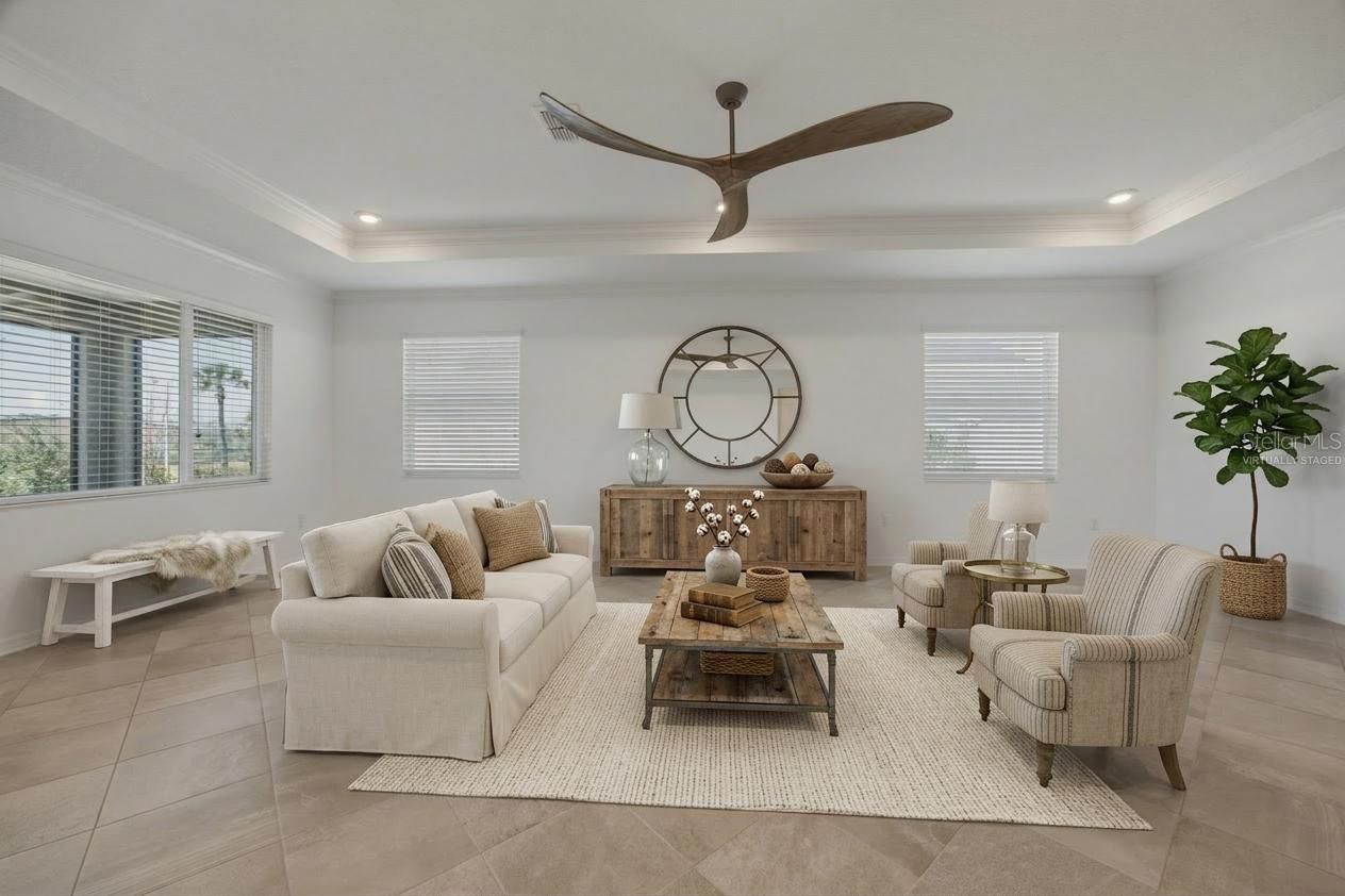 One or more photo(s) has been virtually staged. Welcome to this beautifully upgraded Ariana model located in the highly sought-after Avalon Phase 7 of On Top of the World. Perfectly positioned on a premium lot with no rear neighbors, this move-in-ready home offers the ideal combination of privacy, comfort, and modern elegance. Featuring 2 bedrooms, 2 bathrooms, and a versatile flex room, this thoughtfully designed floor plan provides both functionality and style. From the moment you step inside, you’ll notice the stunning tile flooring laid on the diagonal, creating a seamless and sophisticated flow throughout the home. Crown molding, tray ceilings in the living room, and dimmable lighting add an extra touch of refinement. The gourmet kitchen is truly the heart of the home, showcasing upgraded staggered cabinetry with crown molding, quartz countertops, under-cabinet lighting, and stylish pendant lighting. Outfitted with stainless steel appliances, including built-in double ovens, a gas cooktop, a microwave, and a refrigerator with dual ice makers, this space is perfect for both everyday living and entertaining. The spacious primary suite is designed for comfort and convenience, featuring an oversized, beautifully tiled walk-in shower and a unique pass-through closet that connects directly to the laundry room. The second bathroom also includes a fully tiled shower, offering a cohesive and upgraded feel throughout the home. Additional highlights include ceiling fans throughout, 3-inch faux wood blinds, dimmable lighting, a washer and dryer, and smart home readiness. The garage is equally impressive with durable and attractive epoxy flooring, and the home is equipped with additional exterior outlets—perfect for holiday lighting, outdoor entertaining, or added convenience. Step outside to enjoy the screened-in lanai, complete with sun shades—perfect for relaxing while taking in the peaceful setting of your private backyard with no rear neighbors. This home also features an upgraded elevation, enhancing its curb appeal and making a lasting first impression. Living in On Top of the World means access to an exceptional array of amenities designed for an active and social lifestyle. Residents enjoy multiple resort-style pools, state-of-the-art fitness centers, golf courses, walking and biking trails, and a wide variety of clubs and activities. Additional features include tennis, pickleball, and bocce courts, craft rooms, hobby spaces, and on-site dining options. With gated security and a vibrant community atmosphere, On Top of the World offers a lifestyle that goes far beyond just a place to live. This is a rare opportunity to own a highly upgraded, move-in-ready home in one of the area’s most desirable communities. Schedule your private showing today.