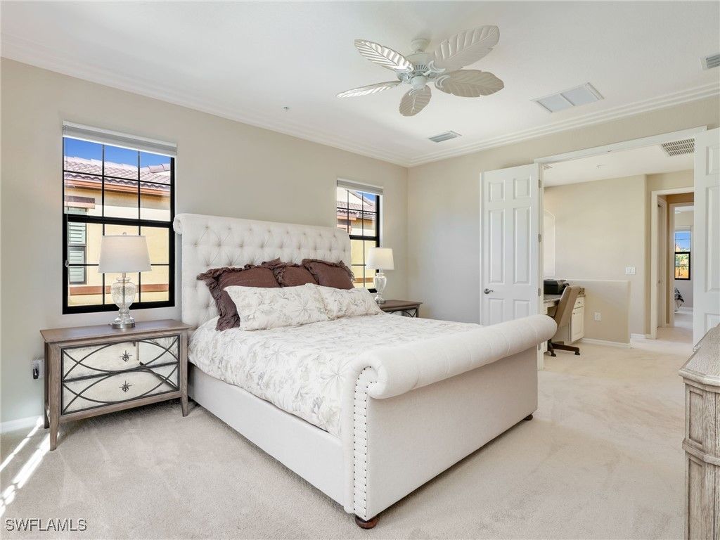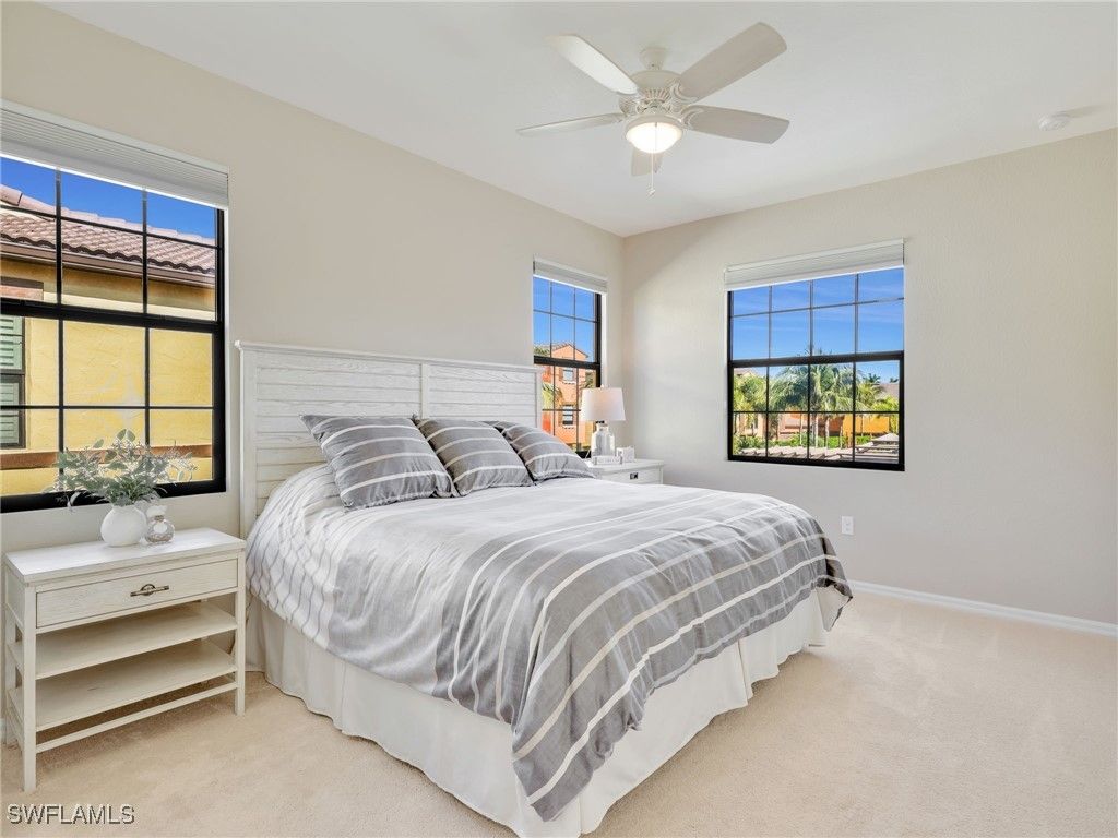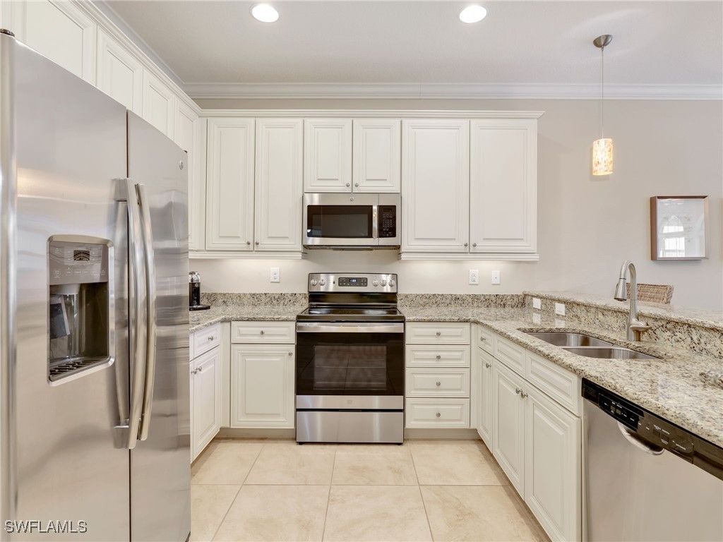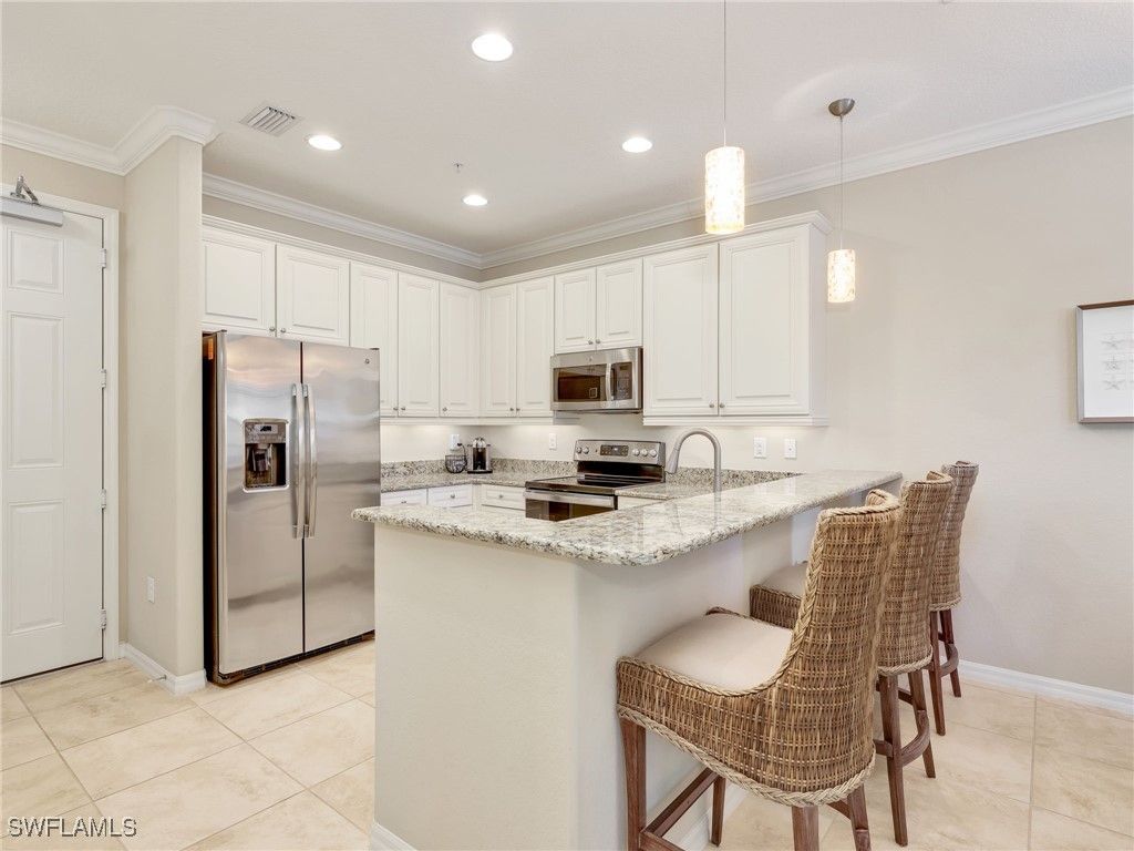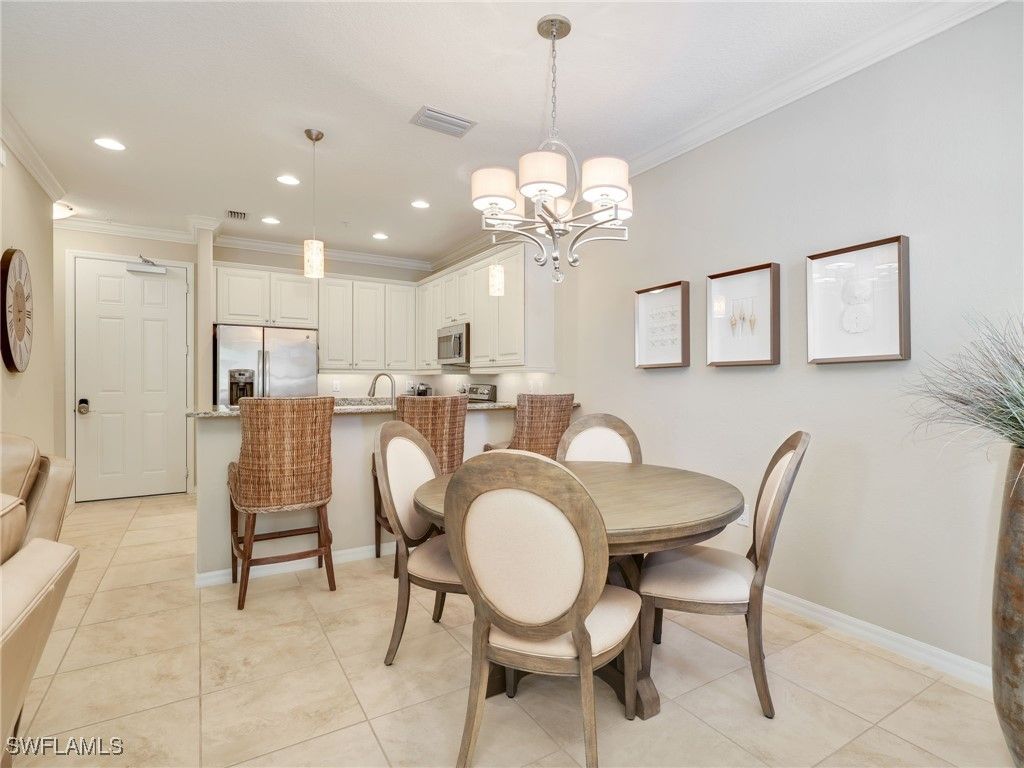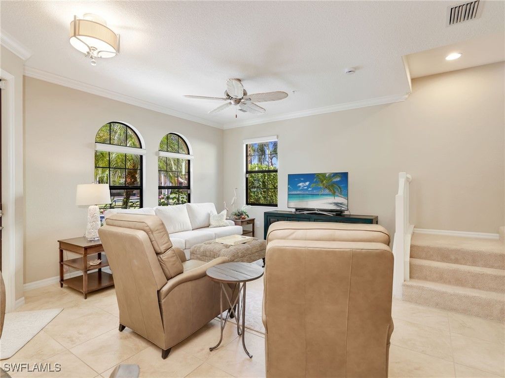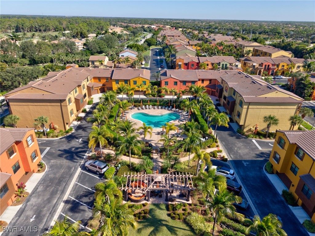 Set at the heart of the Olé community in Lely Resort, this impeccably maintained residence offers the rare combination of space, privacy, and a true resort-inspired lifestyle. Positioned on a central quad, the pool is just steps outside your back door. The home enjoys a sense of openness and community while living with the comfort and functionality of a single-family residence—without the upkeep. Spanning approximately 1,715 square feet, the thoughtfully designed floor plan features three bedrooms and two-and-a-half baths, complemented by crown molding and a clean, timeless interior. An attached two-car garage provides generous extra storage, an additional refrigerator in garage, and everyday convenience including upgraded closets in all bedrooms. In addition, there is an office space with desk in the residence as well as a laundry room. Recent updates include a brand-new air conditioning system installed in 2025, along with newer washer, dryer, and stove. A whole-home water filtration system adds another layer of comfort, as well as smart homes features, a security system, storm impact windows and doors and much more. This property has been meticulously cared for throughout. Life in Olé at Lely Resort is centered around an expansive amenity campus offering more than 20,000 square feet of activities and gathering spaces. Residents enjoy a resort-style pool with food and beverage service, a state-of-the-art fitness center, private movie theater, pub and bistro dining, ice cream parlor, and a dedicated children’s pool area. Outdoor enthusiasts will appreciate tennis, pickleball, basketball, bocce ball, volleyball, and beautifully landscaped green spaces that create a vibrant yet relaxed atmosphere. Ideally located, this home places you just minutes from shopping, grocery stores, and local dining, with easy access to downtown Naples, 5th Avenue South. Both the beaches of Naples and Marco Island are approximately 15 minutes away, offering the best of Southwest Florida at your doorstep. This is an exceptional opportunity to enjoy the Olé lifestyle at Lely Resort—where everyday living feels like a getaway, and paradise truly feels like home.