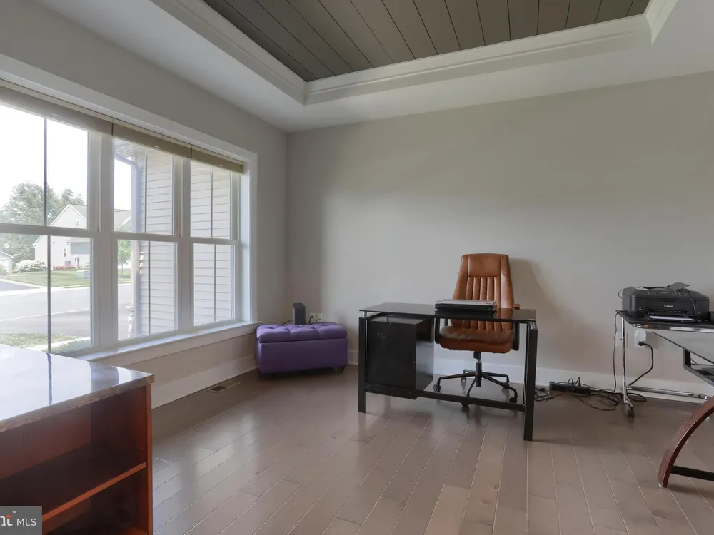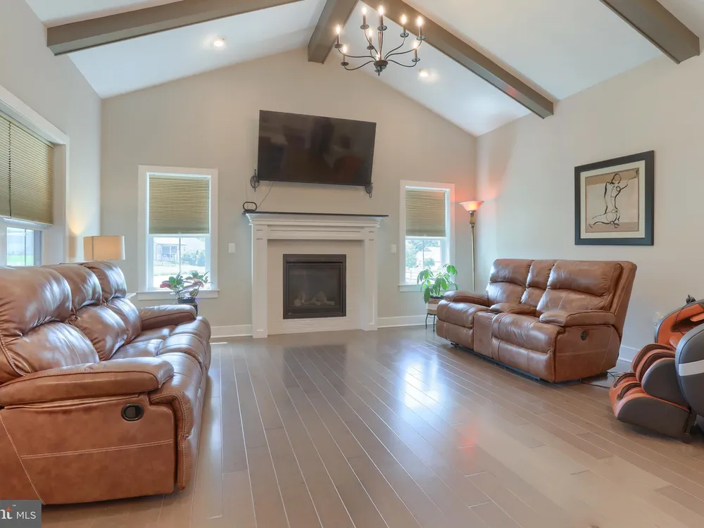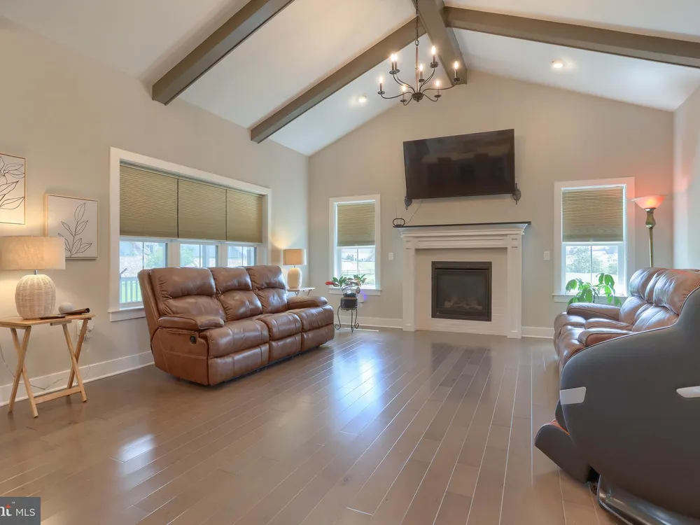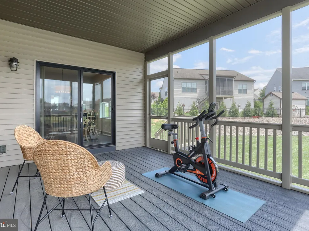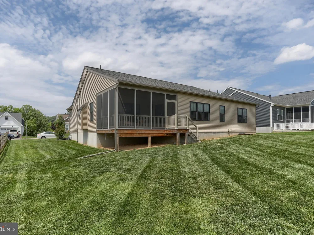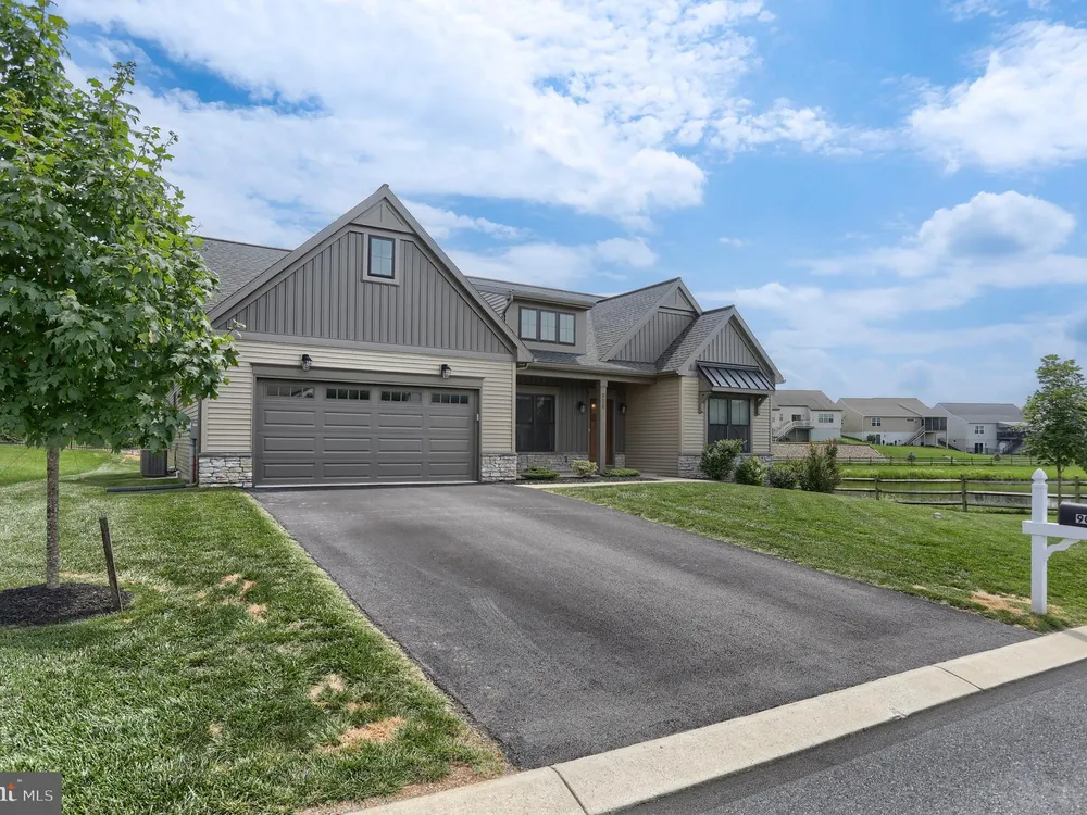 Welcome to the Northfield – a beautifully appointed, one-story residence by Landmark Homes in the award-winning Crossings at Sweetbriar 55+ community. Step into a thoughtfully designed layout with 2,000 sq ft of living space, featuring 2 bedrooms and 2 full baths. Warm hardwood floors extend throughout the main living areas, creating a seamless and inviting atmosphere from the moment you enter. Cook and entertain in the open kitchen, showcasing attractive cabinetry, stainless steel appliances, quartz countertops, and a stylish tile backsplash. The cathedral ceiling with decorative wood beams continues into the living room, where a cozy gas fireplace with a tile surround awaits. Adjacent to the dining area, sliding glass doors lead to a screened in deck—perfect for al fresco mornings or evening relaxation. Tucked away for privacy, the owner’s suite impresses with a tray ceiling, a spa-like bathroom with a tile shower and double bowl vanity, and a spacious walk-in closet with custom shelving. A private guest suite with its own full bathroom offers comfort and convenience for visiting friends or family. Need a home office or hobby room? The additional flex space, currently used as an office, features striking double barn doors—adding character to the home while allowing you to create either an open entry or a more private retreat. Everyday functionality is just as impressive, with a mudroom entry from the 2-car garage that includes a built-in bench, coat pegs, and a large walk-in pantry. Window treatments are included, making this move-in ready home even more appealing. Located in Crossings at Sweetbriar, one of Ideal Living’s Top 100 Places to Live for 2025, residents enjoy a low maintenance lifestyle surrounded by scenic farmland with easy access to shopping, dining, and top medical centers. Community amenities include a private clubhouse with pool and fitness room, as well as walking trails that meander through over 20 acres of preserved open space. Ready for refined and relaxed living in a community that truly delivers? Let’s schedule your showing and start the next chapter in this beautifully curated home. Former model home with abundant upgrades, can't build this home new for under 600k today!