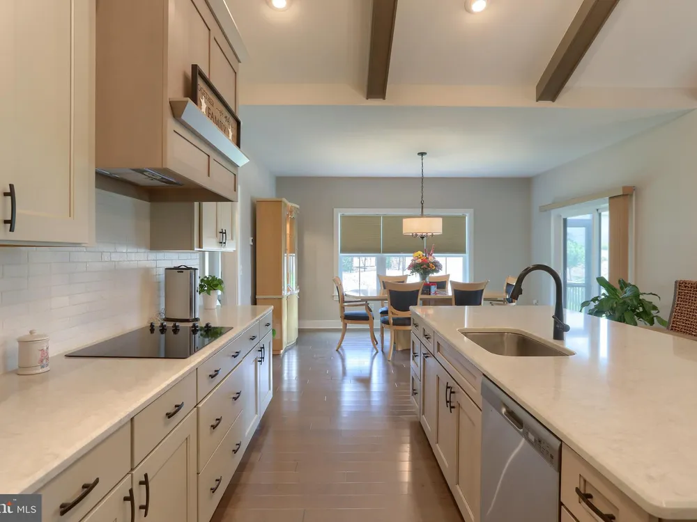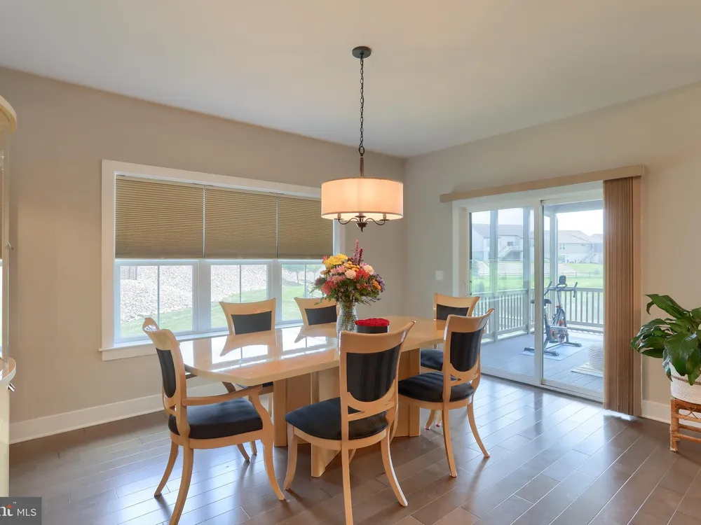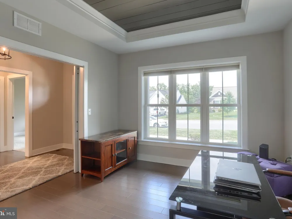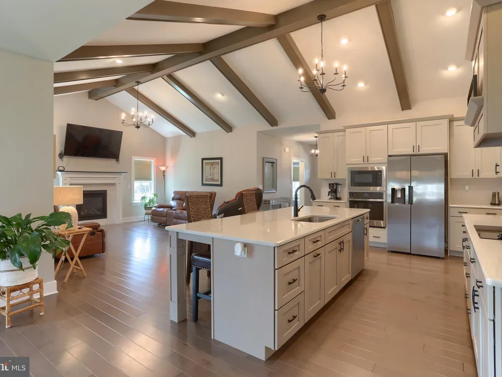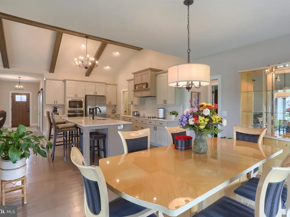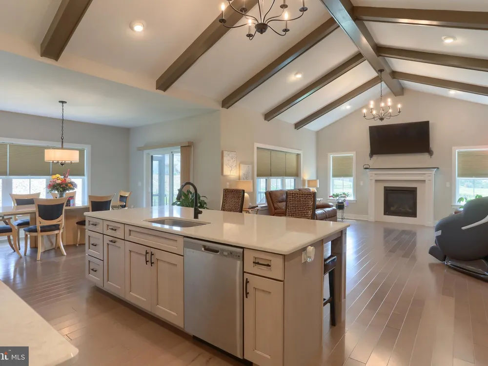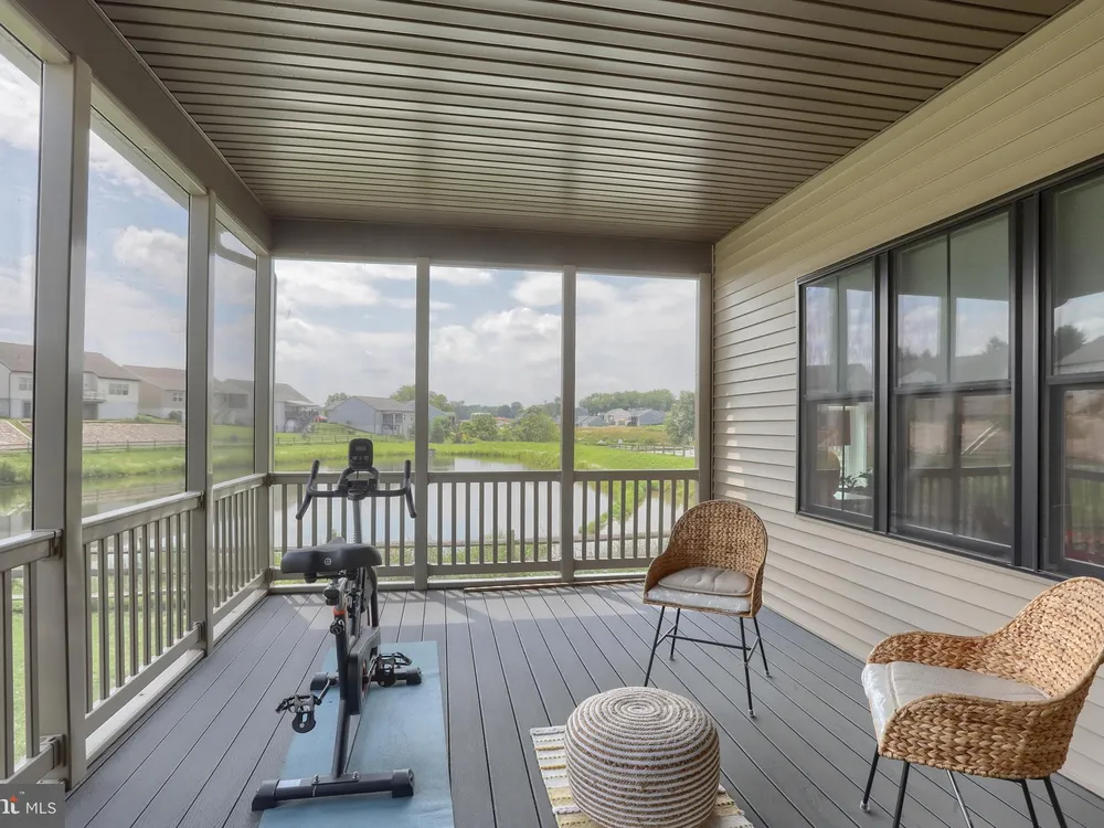 Welcome to the Northfield – a beautifully appointed, one-story residence by Landmark Homes in the award-winning Crossings at Sweetbriar 55+ community. Step into a thoughtfully designed layout with 2,000 sq ft of living space, featuring 2 bedrooms and 2 full baths. Warm hardwood floors extend throughout the main living areas, creating a seamless and inviting atmosphere from the moment you enter. Cook and entertain in the open kitchen, showcasing attractive cabinetry, stainless steel appliances, quartz countertops, and a stylish tile backsplash. The cathedral ceiling with decorative wood beams continues into the living room, where a cozy gas fireplace with a tile surround awaits. Adjacent to the dining area, sliding glass doors lead to a screened in deck—perfect for al fresco mornings or evening relaxation. Tucked away for privacy, the owner’s suite impresses with a tray ceiling, a spa-like bathroom with a tile shower and double bowl vanity, and a spacious walk-in closet with custom shelving. A private guest suite with its own full bathroom offers comfort and convenience for visiting friends or family. Need a home office or hobby room? The additional flex space, currently used as an office, features striking double barn doors—adding character to the home while allowing you to create either an open entry or a more private retreat. Everyday functionality is just as impressive, with a mudroom entry from the 2-car garage that includes a built-in bench, coat pegs, and a large walk-in pantry. Window treatments are included, making this move-in ready home even more appealing. Located in Crossings at Sweetbriar, one of Ideal Living’s Top 100 Places to Live for 2025, residents enjoy a low maintenance lifestyle surrounded by scenic farmland with easy access to shopping, dining, and top medical centers. Community amenities include a private clubhouse with pool and fitness room, as well as walking trails that meander through over 20 acres of preserved open space. Ready for refined and relaxed living in a community that truly delivers? Let’s schedule your showing and start the next chapter in this beautifully curated home. Former model home with abundant upgrades, can't build this home new for under 600k today!