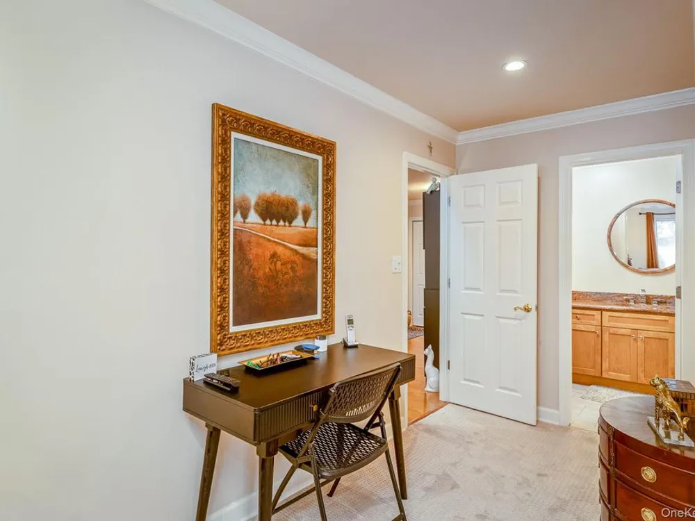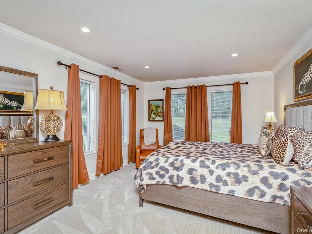 - Bedroom on Main Level, Bath on Main Level, Crown Molding, Eat-in Kitchen, Separate/Formal Dining Room, Granite Counters, Primary Bathroom, Primary Downstairs, Recessed Lighting, Storage