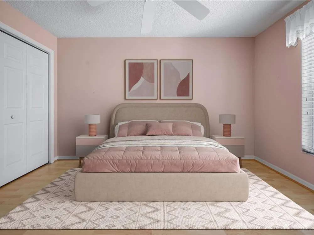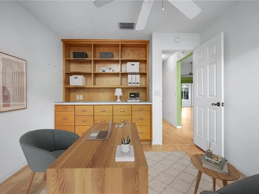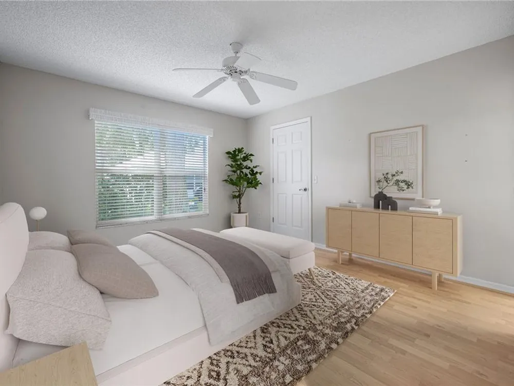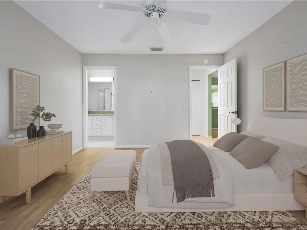 - Ceiling Fan(s), High Ceilings, Living/Dining Room, Open Floorplan, Split Bedrooms, Thermostat, Walk-In Closet(s)