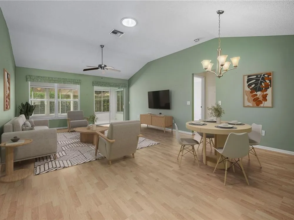 One or more photo(s) has been virtually staged. Nestled in the desirable Orange Blossom Gardens of Lady Lake, part of the world-renowned Villages 55+ community, this charming block home offers both comfort and access to an active lifestyle. Built in 2000 and thoughtfully cared for by only two owners, the home features 2 bedrooms, 2 bathrooms, an office, 2 car garage, Florida room, and more than 1,500 square feet of living space under air with a spacious open floor plan that seamlessly connects the living, dining, and kitchen areas. Offering three bedrooms and two bathrooms, the layout is ideal for both everyday living and entertaining. Recent updates include a roof replacement in October 2020 and an AC and coil replacement in July 2021, ensuring peace of mind for years to come. The home sits on a generous 5,400 square foot lot, providing plenty of outdoor potential. Living here means enjoying all The Villages has to offer, from community pools and recreation centers to championship and executive golf courses. Residents can take advantage of tennis, pickleball, and fitness facilities, as well as thousands of organized social clubs catering to every interest. Shops, dining, and nightly live entertainment are just minutes away at the popular Spanish Springs Town Square, making this home the perfect blend of comfort, convenience, and community.