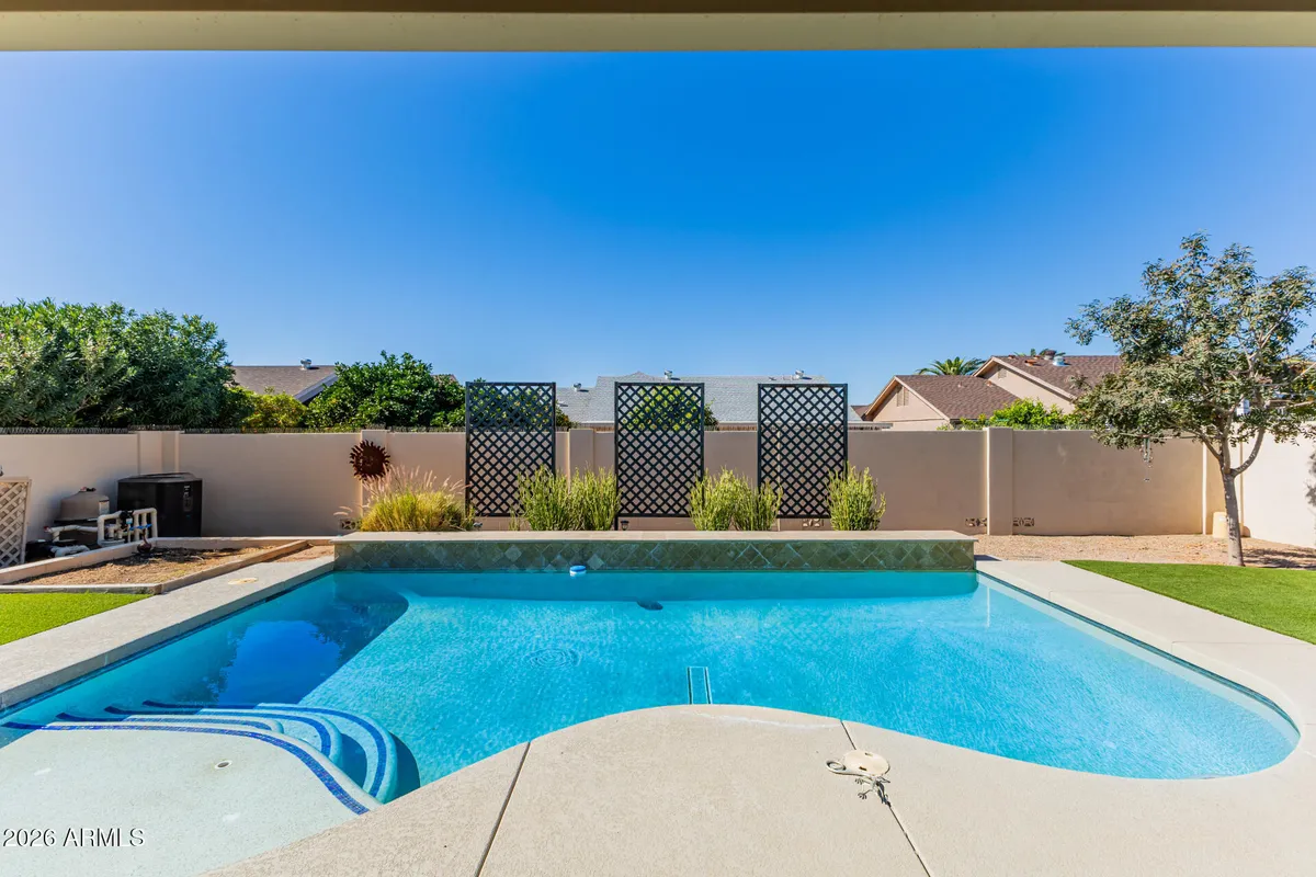 Luxury Living in Fountain of the Sun! Floorplan Remodel and Interior and Exterior updates! Split floorplan, Kitchen Open to Living, Private Pool, Fenced Yard, Low Maintenance High Grade Turf, Water and Time Controlled Gardening Boxes. Solar Assumable Or Negotiable Payoff! GE Washer and Dryer. Furnished! Golf Course, Pool, Community Center, Activity Center and Birdies Bar and Grill!