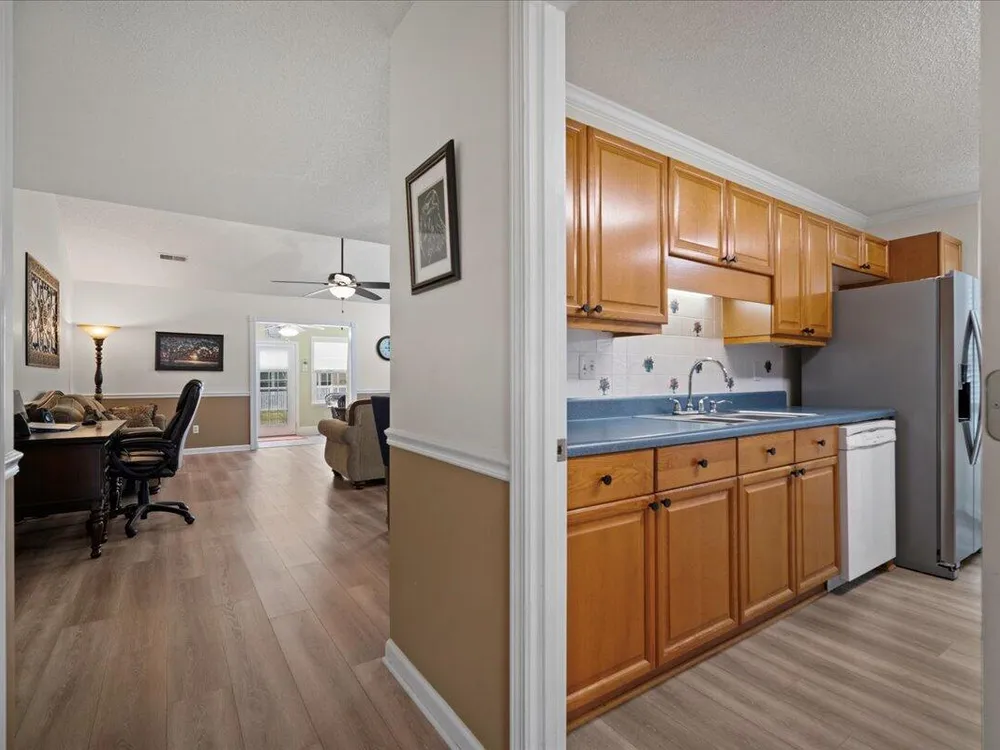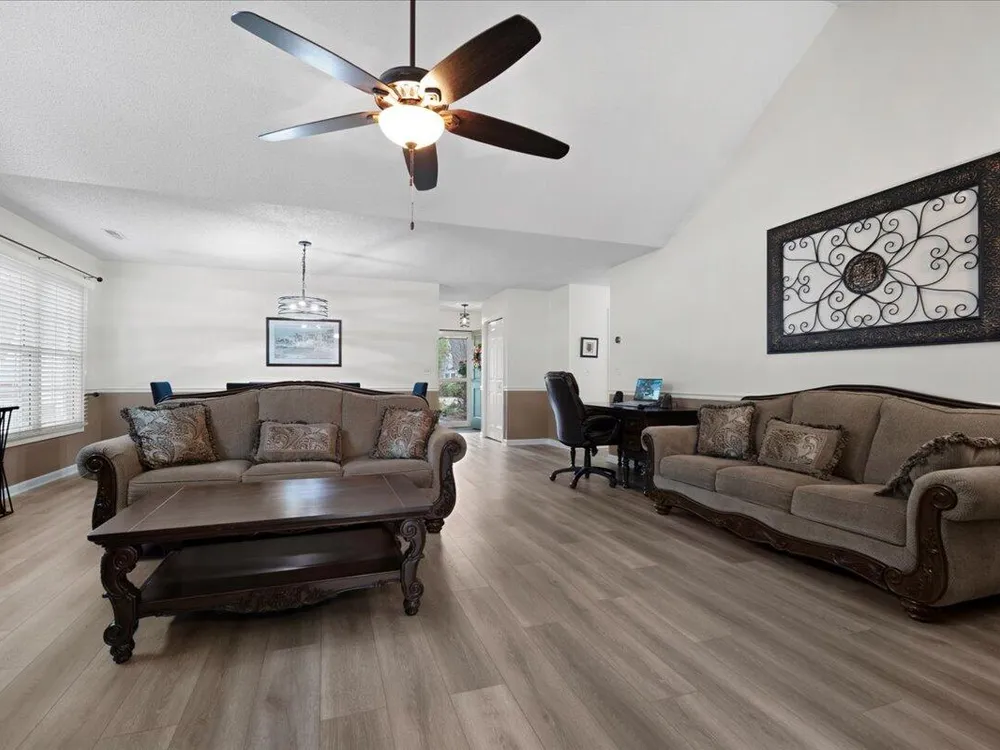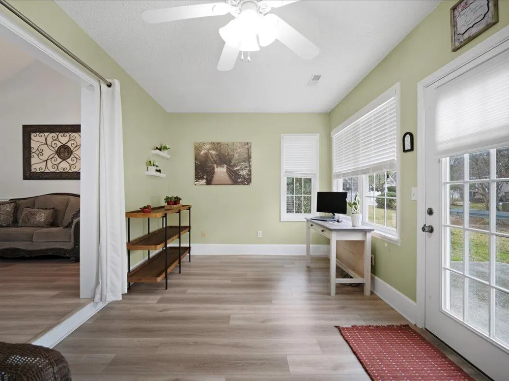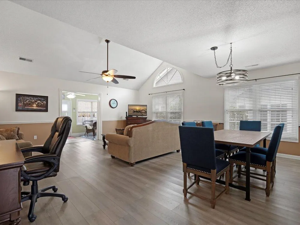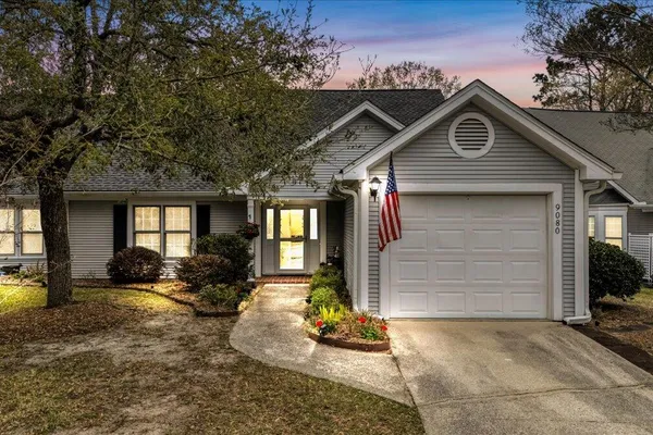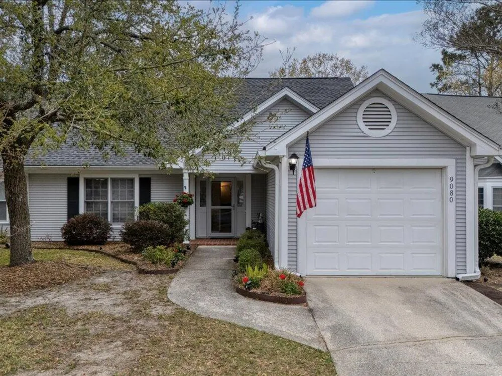 Back on market due to no fault of the seller. Charming Low-Maintenance Home in The Elms of Charleston - A Premier Active Adult Community!Welcome to 9080 Delancey Circle, a beautifully maintained attached single-family home nestled in the desirable gated Active 55+ community of The Elms of Charleston. Offering a blend of comfort, convenience, and natural beauty, this home is perfect for those looking to enjoy retirement in a peaceful yet vibrant setting.Step inside and be greeted by a bright and open layout designed for effortless living. The well-appointed kitchen with an eat-in area offers plenty of space for casual meals and direct access to the garage for added convenience.As you move into the spacious living and dining area, soaring vaulted ceilings create an inviting atmosphere, perfect for entertaining family and friends. At the back of the home, a serene sun room provides a relaxing retreat where you can sip your morning coffee while enjoying the sounds of nature. It's the perfect spot to watch the squirrels, the birds and maybe a rabbit or two right from your own home! The two-bedroom layout offers privacy and comfort, with a generously sized secondary bedroom and a well-designed primary suite located down a quiet hallway. Luxury Vinyl Plank (LVP) flooring flows throughout the entire home, adding a modern touch with easy maintenance. Amenities include a large beautiful clubhouse with a full kitchen, well-equipped game room, a library, an exercise room, a swimming pool, a bocce ball court as well as pickle ball/tennis courts. There are also ongoing social events and activities scheduled every month based on the expressed interests of the residents. Located in a prime area, this home is just minutes from I-26, Trident Hospital, Wanamaker County Park, Northwoods Mall and moreensuring everything you need is always within reach. Don't miss out on this well-cared-for gemschedule your showing today and discover why this home is a must-see! This home is currently covered with a Choice Home Warranty that will transfer to the buyer at closing.