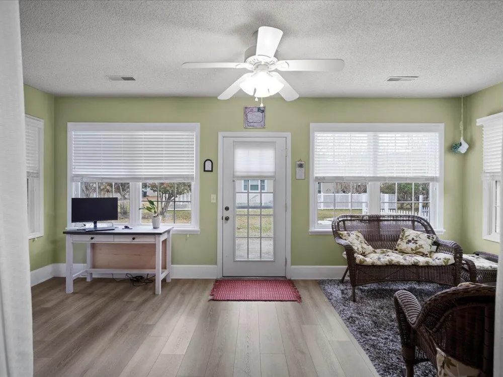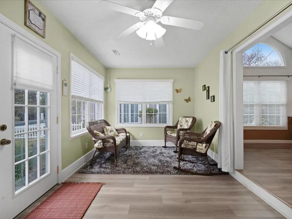 - Popcorn Ceiling, Cathedral Ceiling(s), Vaulted Ceiling(s), High Ceilings, Walk-In Closet(s), Ceiling Fan(s), Eat-in Kitchen, Entrance Foyer, Living/Dining Room, Sunroom