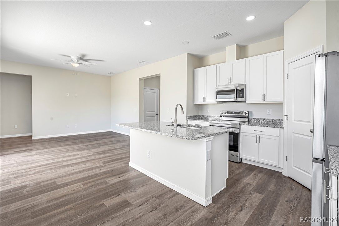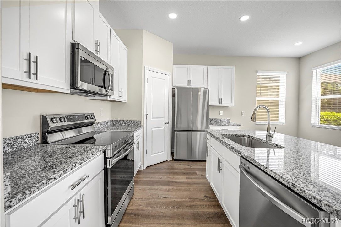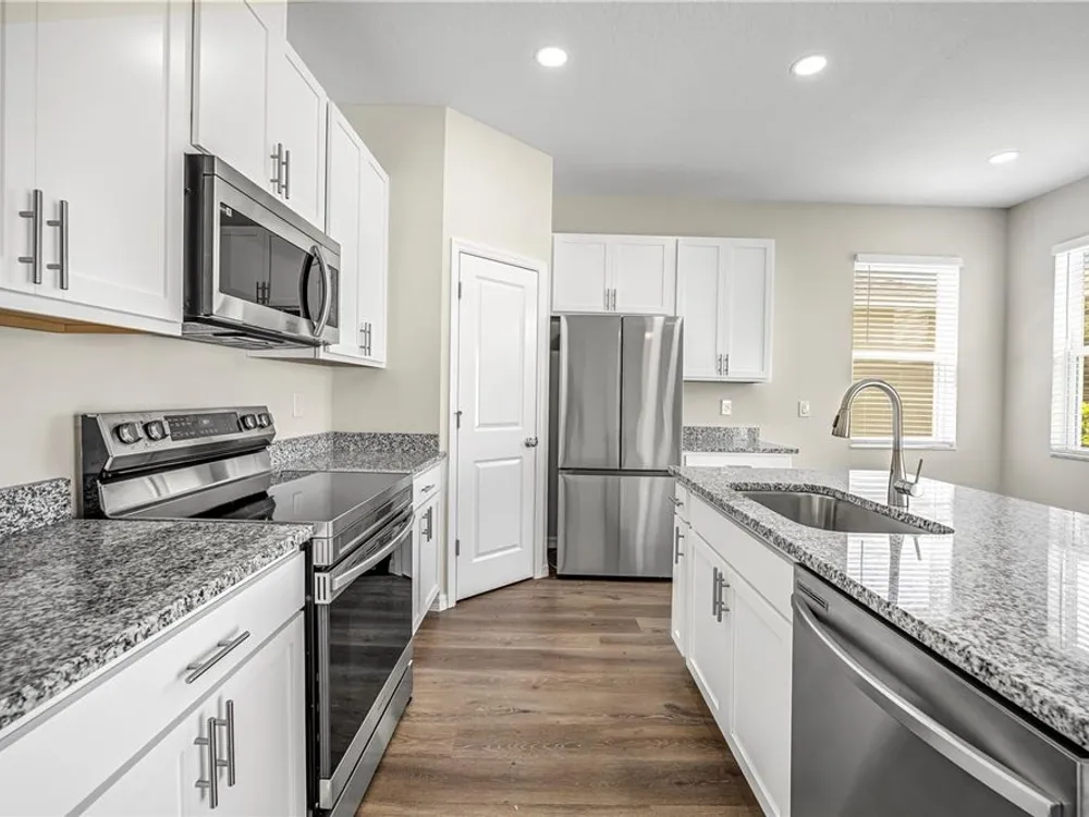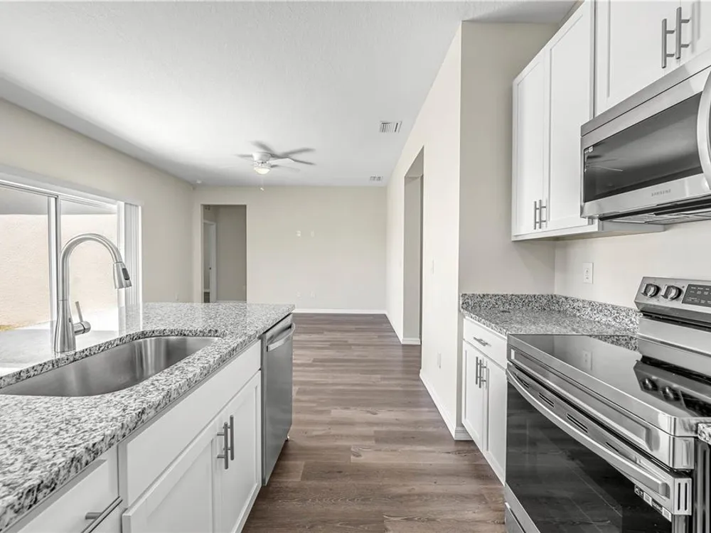One or more photo(s) has been virtually staged. Ready for Immediate Occupancy! Seller is offering $5,000 to be used toward the buyer’s closing costs and prepaids, or applied toward the first year of HOA dues! This brand-new 3-bedroom, 2-bathroom home with a 2-car garage offers 1,550 sq ft of living space (2,069 total) and is located in the highly sought-after gated community of GlenLakes Country Club! Step inside and be welcomed by a spacious, open layout ideal for modern living. The kitchen boasts rich wood cabinetry, granite countertops, stainless steel appliances, a breakfast bar that seats three, LED lighting, and beautiful, easy-to-maintain flooring that runs throughout the entire home. The bright and airy living room includes sliding glass doors that open to the backyard. Enjoy the convenience of an indoor laundry room, complete with washer and dryer. The generous primary suite features a walk-in closet and a private bath with dual sinks, a tub/shower combo, wood vanity, and sleek LED lighting. Two additional bedrooms are located near the guest bath, which includes granite counters, tile-surround tub/shower combo, and matching cabinetry. This home is nestled within GlenLakes, home to a stunning 18-hole championship golf course and a vibrant clubhouse offering a full-service restaurant and the popular 19th Hole Grill & Bar. Gated community with 24/7 security for peace of mind. Conveniently located near major shopping centers, restaurants, and everyday essentials. Drive your golf cart to the many amenities: fitness center, tennis and pickleball courts, lakeside pool and spa, game and card rooms, billiards, library, yoga studio, dog park, playground, and Veterans Memorial. With over 100 clubs and social groups to join, there’s always something to enjoy! Located just 1 hour from Tampa, and close to beaches, Pine Island sunsets, boating, fishing, kayaking, and more. HOA dues include cable and internet for added value and convenience!