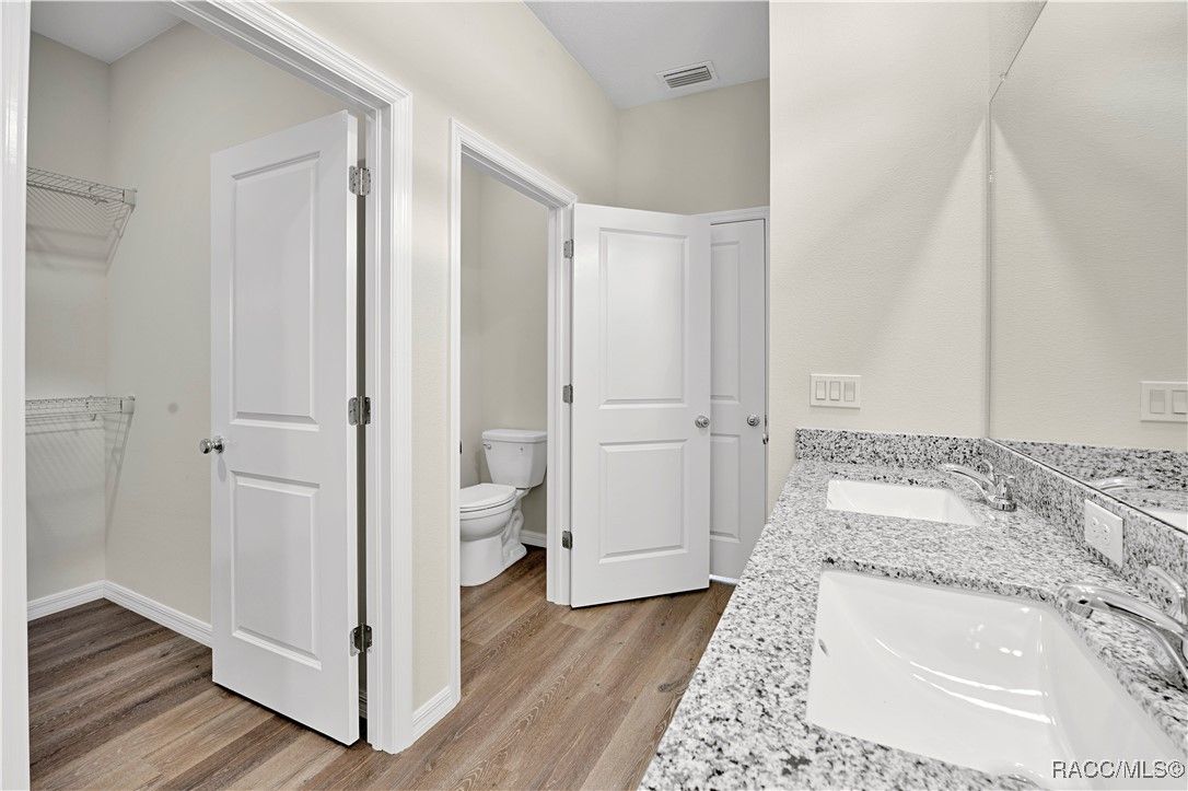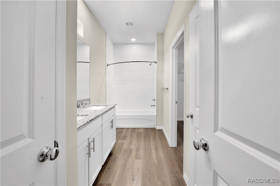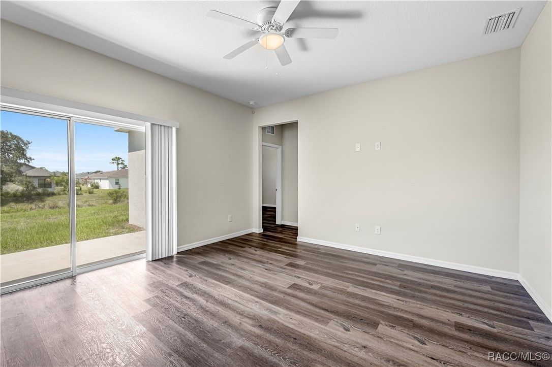 - Main Level Primary, Primary Suite, Pantry, Stone Counters, Solid Surface Counters, Tub Shower, Walk-In Closet(s), Sliding Glass Door(s)