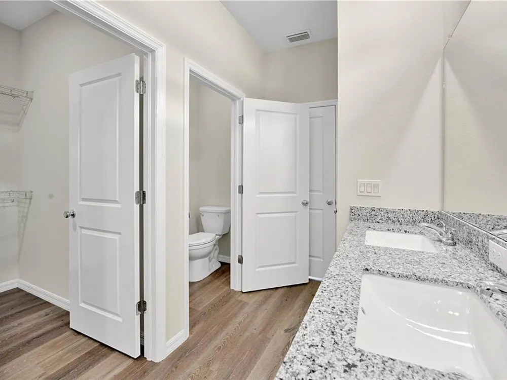 - Ceiling Fan(s), Main Level Primary, Solid Surface Counters, Stone Counters, Walk-In Closet(s)