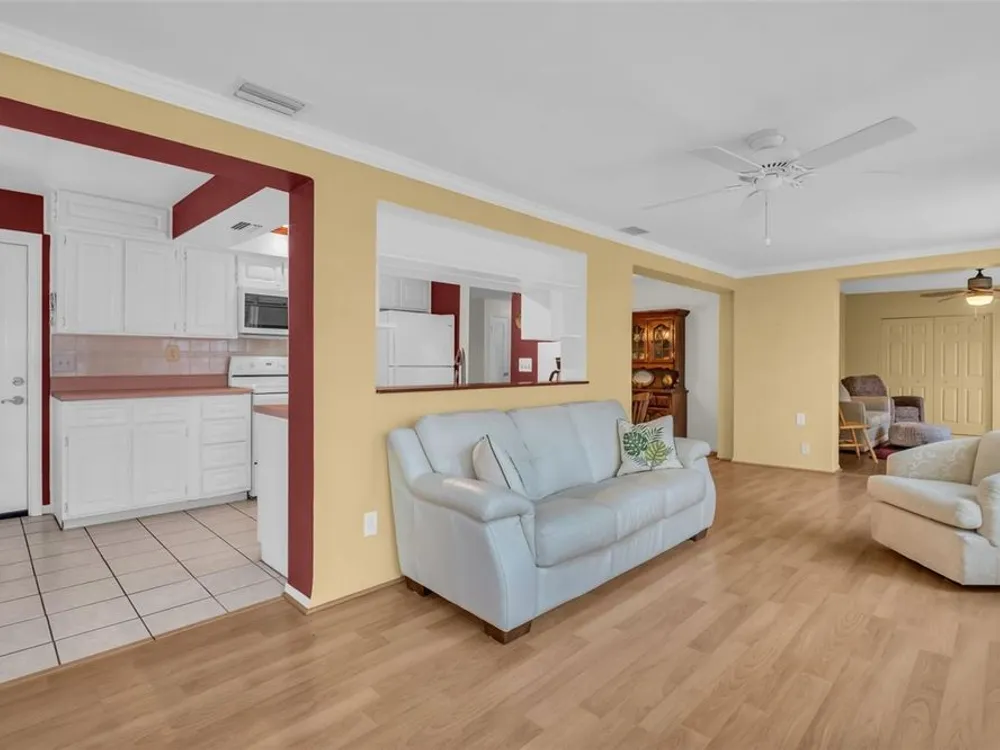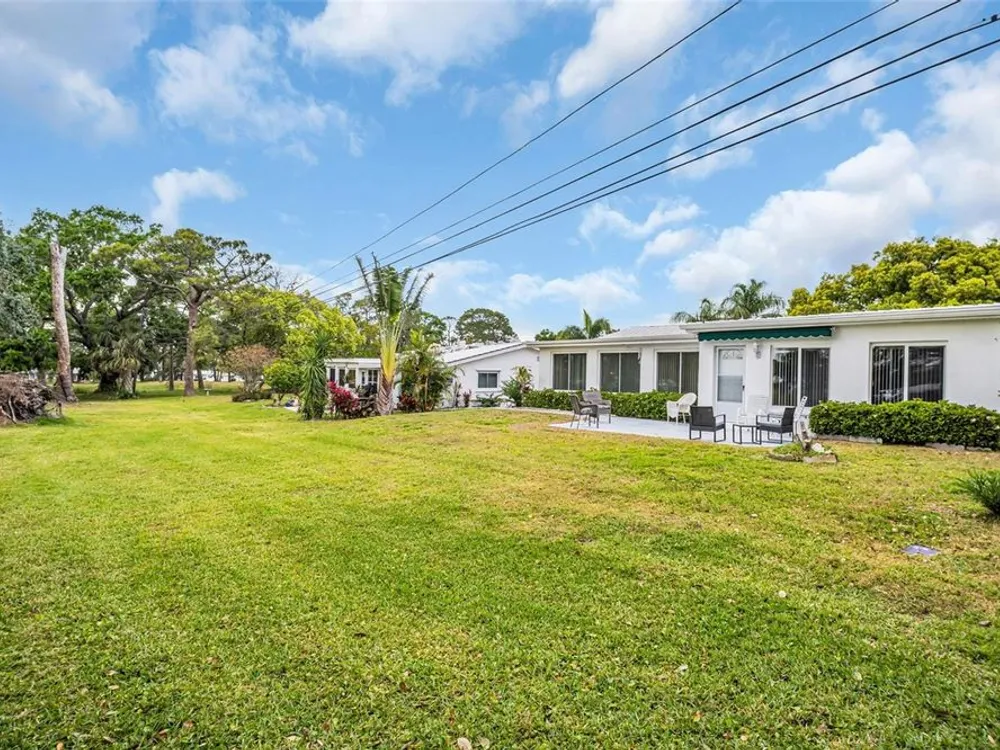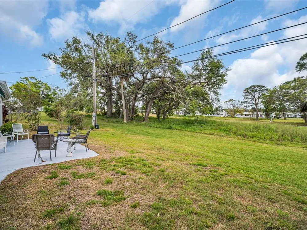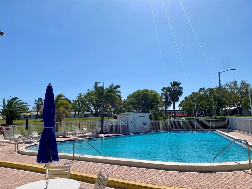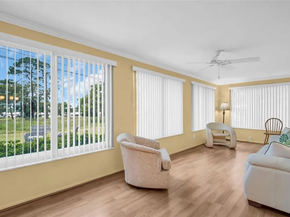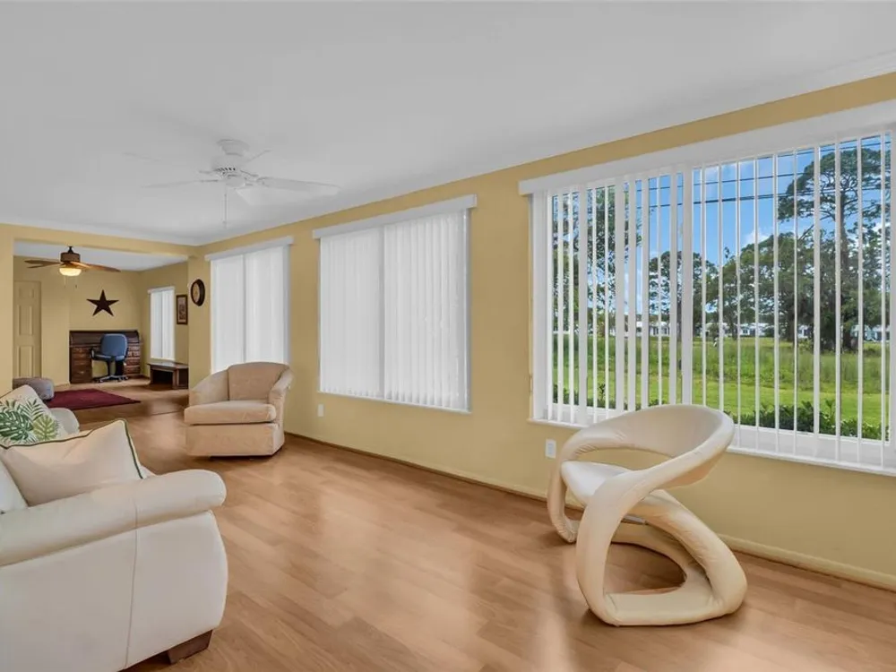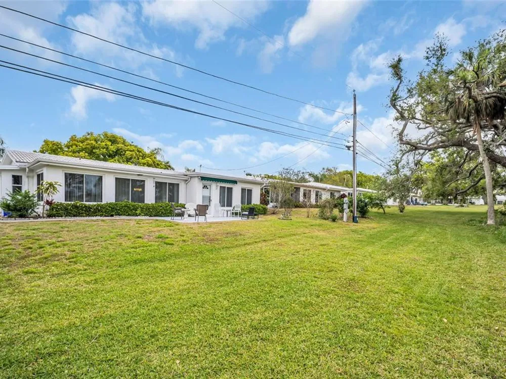 Discover EASY, LOW-MAINTENANCE LIVING in this delightful 2-bedroom, 2-bath home with a VERSATILE BONUS ROOM that could serve as a THIRD BEDROOM, office, or hobby space - a modified SKIPPER MODEL. LOCATED DIRECTLY ACROSS FROM THE CLUBHOUSE, you'll have convenient access to the community activities, social events, shuffleboard, and the HEATED POOL. Enjoy PEACEFUL GREEN SPACE WITH NO REAR NEIGHBORS, offering a serene backyard retreat. The $263 a month HOA fee covers ROOF and HOUSE PAINTING every 9 years, along with WATER, SEWER, TRASH, and LAWN CARE, making homeownership truly HASSLE-FREE. This home features a RARE EAT-IN KITCHEN with lots of cabinets and counter space perfect for casual dining. Recent updates include a New electrical Panel, Dishwasher, and HVAC within the last 2 years. The Barrel Tile Roof installed in 2010 has years of remaining life left. The One-car garage has an attic spacious enough to stand up, providing excellent storage options along with the built-in cabinets. The FURNITURE IS OPTIONAL, allowing for a Move-in-ready experience or a space to make your own. LOCATED just minutes from the beaches, yet NO FLOOD INSURANCE IS REQUIRED. LOCATED in an extremely Active 55 community makes this an ideal opportunity for your primary residence or your lock-and-go second home.