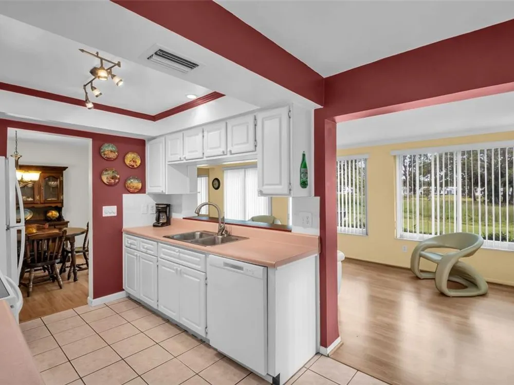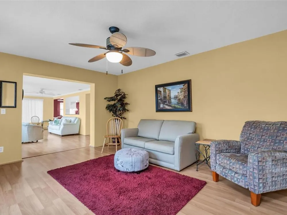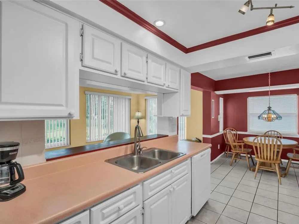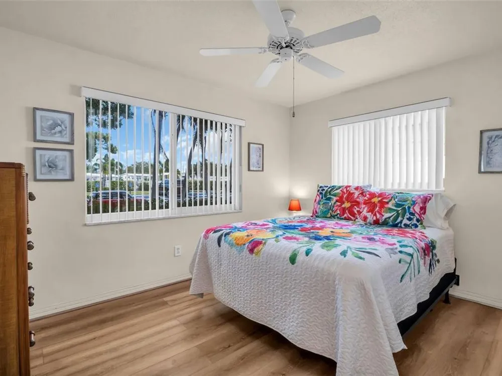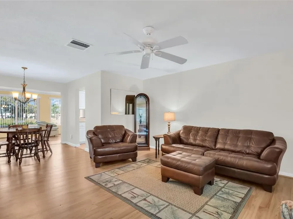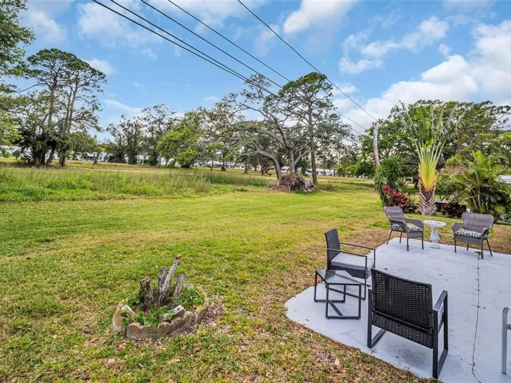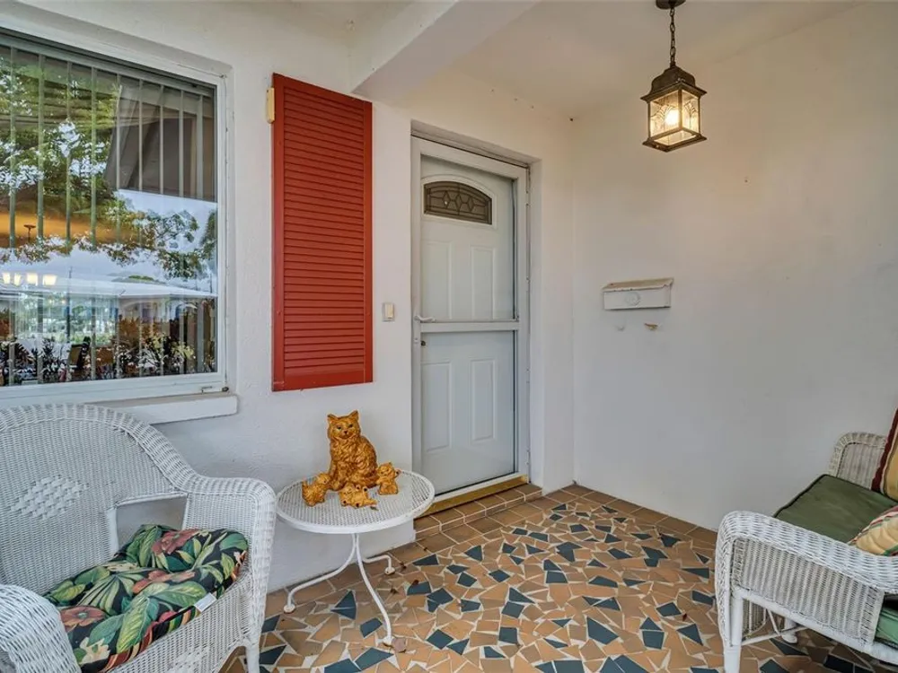 Discover EASY, LOW-MAINTENANCE LIVING in this delightful 2-bedroom, 2-bath home with a VERSATILE BONUS ROOM that could serve as a THIRD BEDROOM, office, or hobby space - a modified SKIPPER MODEL. LOCATED DIRECTLY ACROSS FROM THE CLUBHOUSE, you'll have convenient access to the community activities, social events, shuffleboard, and the HEATED POOL. Enjoy PEACEFUL GREEN SPACE WITH NO REAR NEIGHBORS, offering a serene backyard retreat. The $263 a month HOA fee covers ROOF and HOUSE PAINTING every 9 years, along with WATER, SEWER, TRASH, and LAWN CARE, making homeownership truly HASSLE-FREE. This home features a RARE EAT-IN KITCHEN with lots of cabinets and counter space perfect for casual dining. Recent updates include a New electrical Panel, Dishwasher, and HVAC within the last 2 years. The Barrel Tile Roof installed in 2010 has years of remaining life left. The One-car garage has an attic spacious enough to stand up, providing excellent storage options along with the built-in cabinets. The FURNITURE IS OPTIONAL, allowing for a Move-in-ready experience or a space to make your own. LOCATED just minutes from the beaches, yet NO FLOOD INSURANCE IS REQUIRED. LOCATED in an extremely Active 55 community makes this an ideal opportunity for your primary residence or your lock-and-go second home.