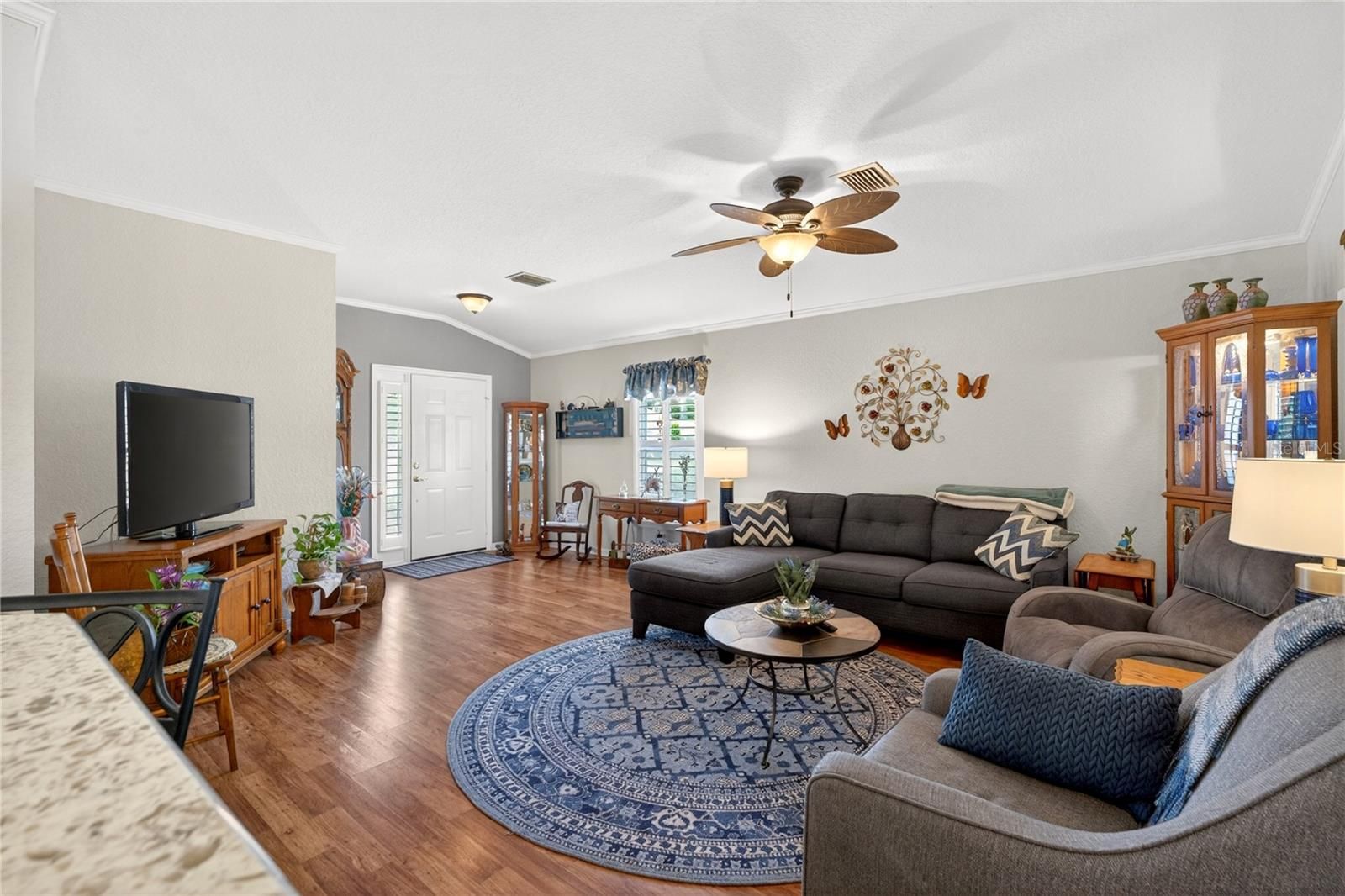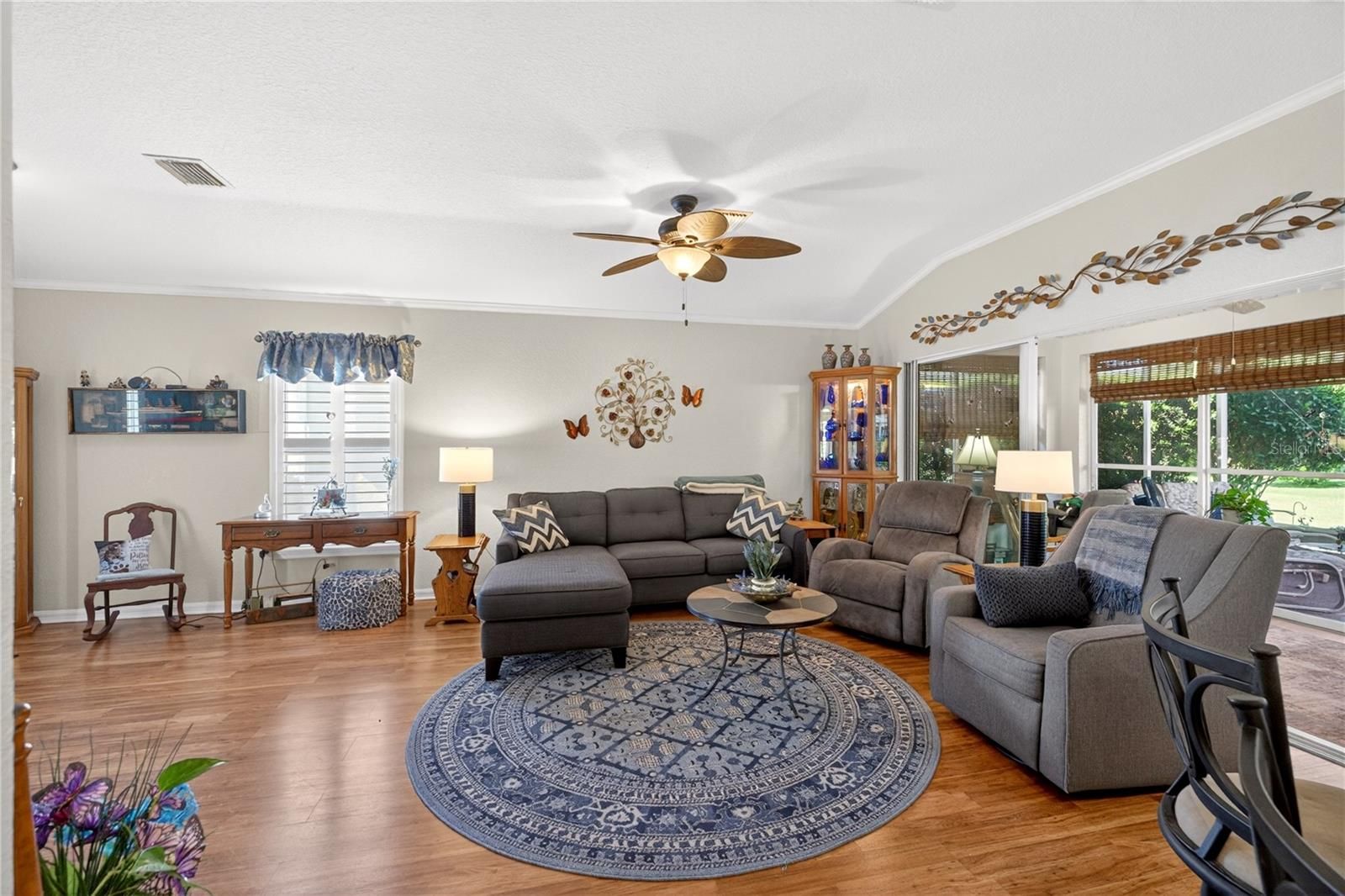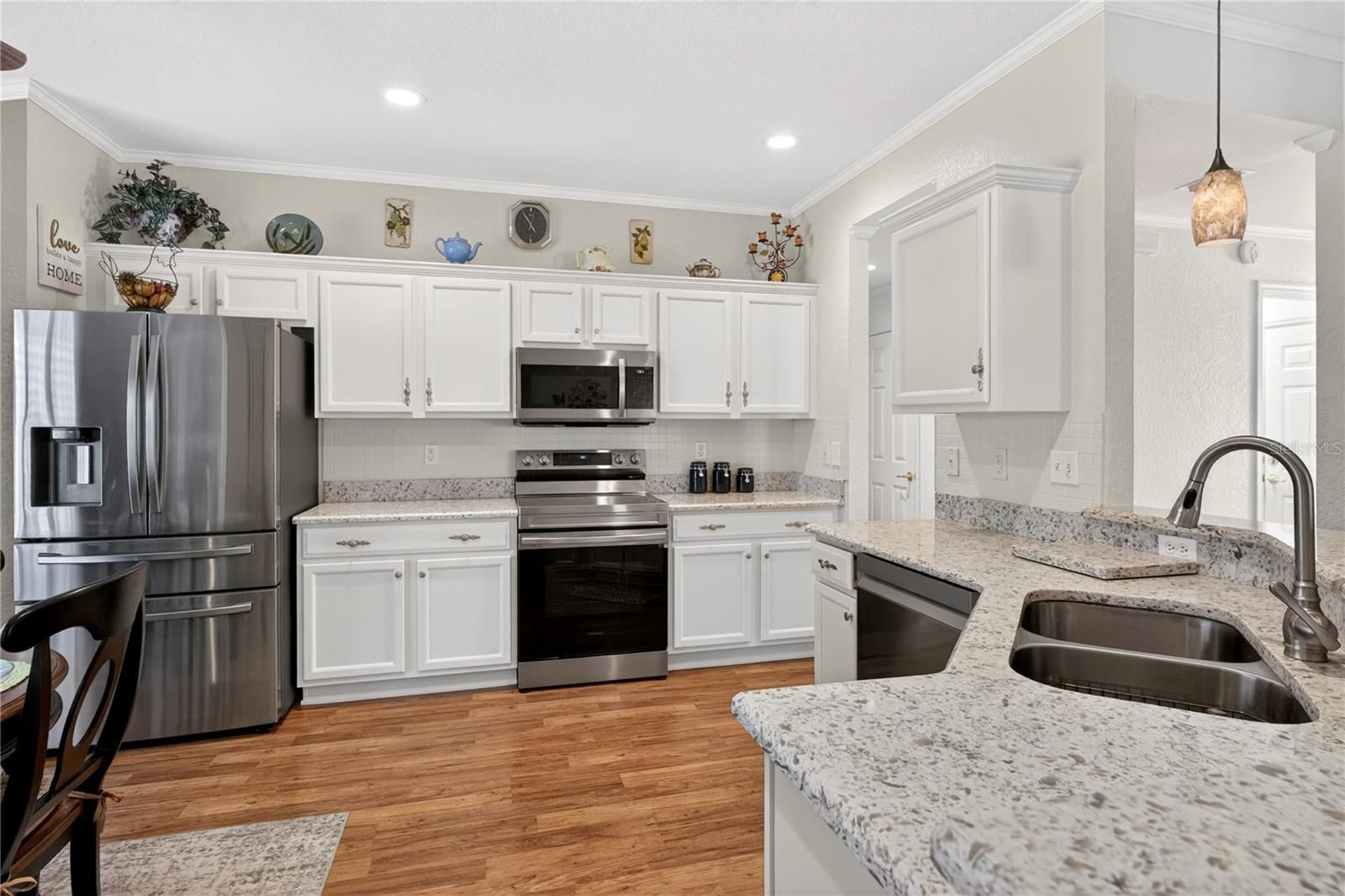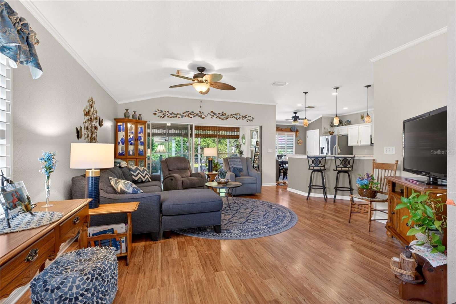If you are looking for a well taken care of home, this is it. The Beautiful Alydar model truly move in ready, everything has been done. ROOF 2021 ** HEAT PUMP HVAC 2017 with Humidity Control and UV light Extra $3000 ** PLUMBING REPIPE 2017 ** NO CARPET ** NEW LAMINET FLOORING 2015 including the TILE **QUARTZ COUNTERTOP 2020 with NEW SINK ** WOOD CABINETS PAINTED 2025 ** PULLOUTS IN ALL KITCHEN CABINETS ** NEW RECESS LIGHTING THROUGHOUT ** NEW PENDANT LIGHTS ** STOVE & MICROWAVE 2023 ** REFRIGERATOR & DISHWASHER 2025 ** PLANTATION SUTTER THROUGHOUT ** CROWN MOLDING ** INTERIOR HOME JUST ALL REPAINTED 2025 ** NEW BLINDS ON LANAI 2024 ** BIRD CAGE CANVAS REPLACED 2025 ** GARAGE FLOOR EPOXY 2023 ** SINK IN GARAGE INSTALLED IN 2017 ** SCREEN ON GARAGE ** PULL DOWN STEPS TO ATTIC ** ** EXTRA INSULATION ADDED 2022 ** HIDE-A-WAY SCREEN on FRONT DOOR **NEW SPRINKLER SYSTEM ** LANDSCAPE CURBING ** Seller just had the Home Pressure Washed and Windows Washed. Plumbing, electrical and HVAC under a service/warranty contract. Home had an enclosed Lanai, covered Screen Room and open Patio with Pavers. Private Back Yard. This home offers an open floor plan with eat in kitchen, split bedrooms and inside laundry. Call for your showing today.