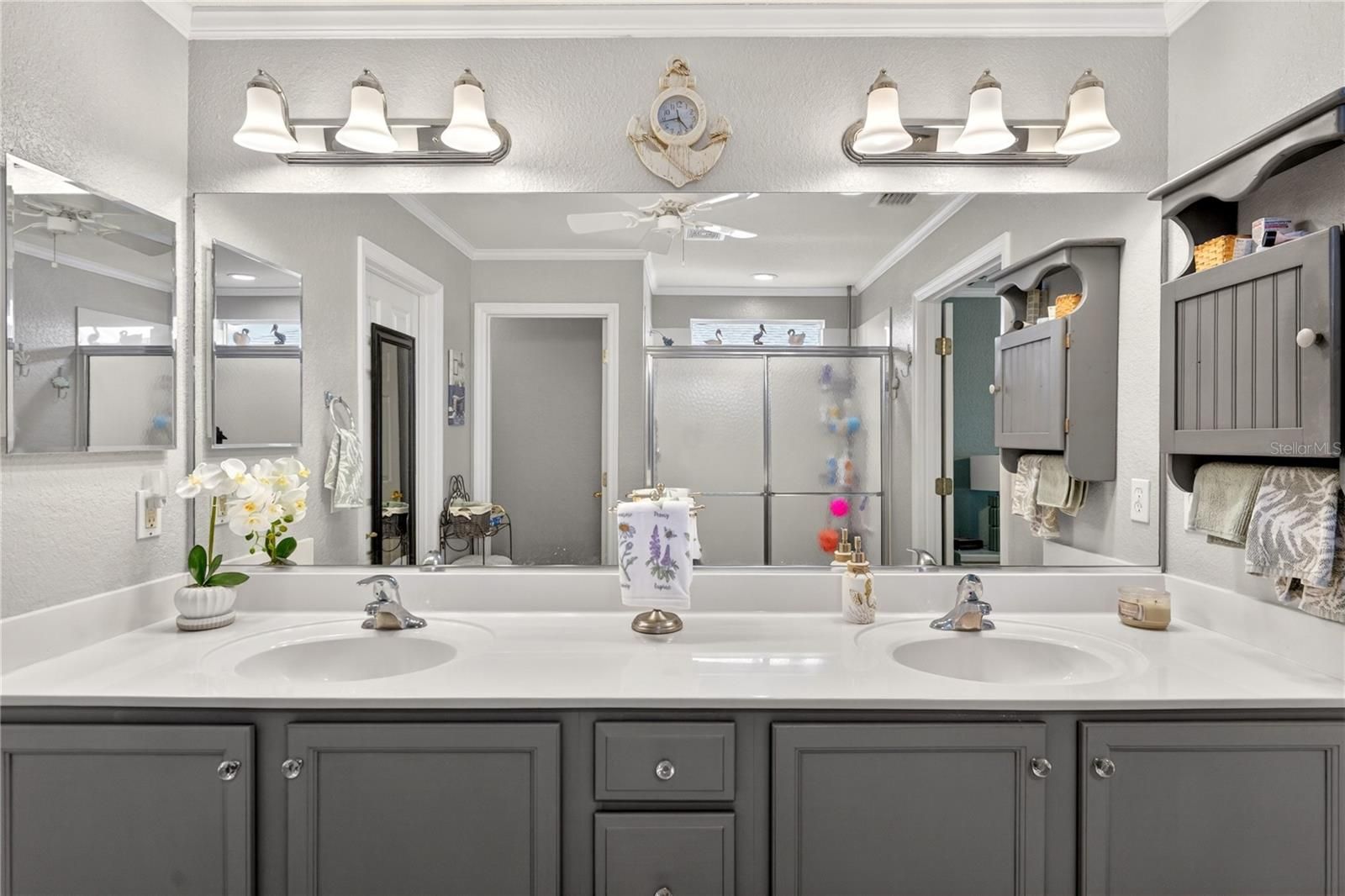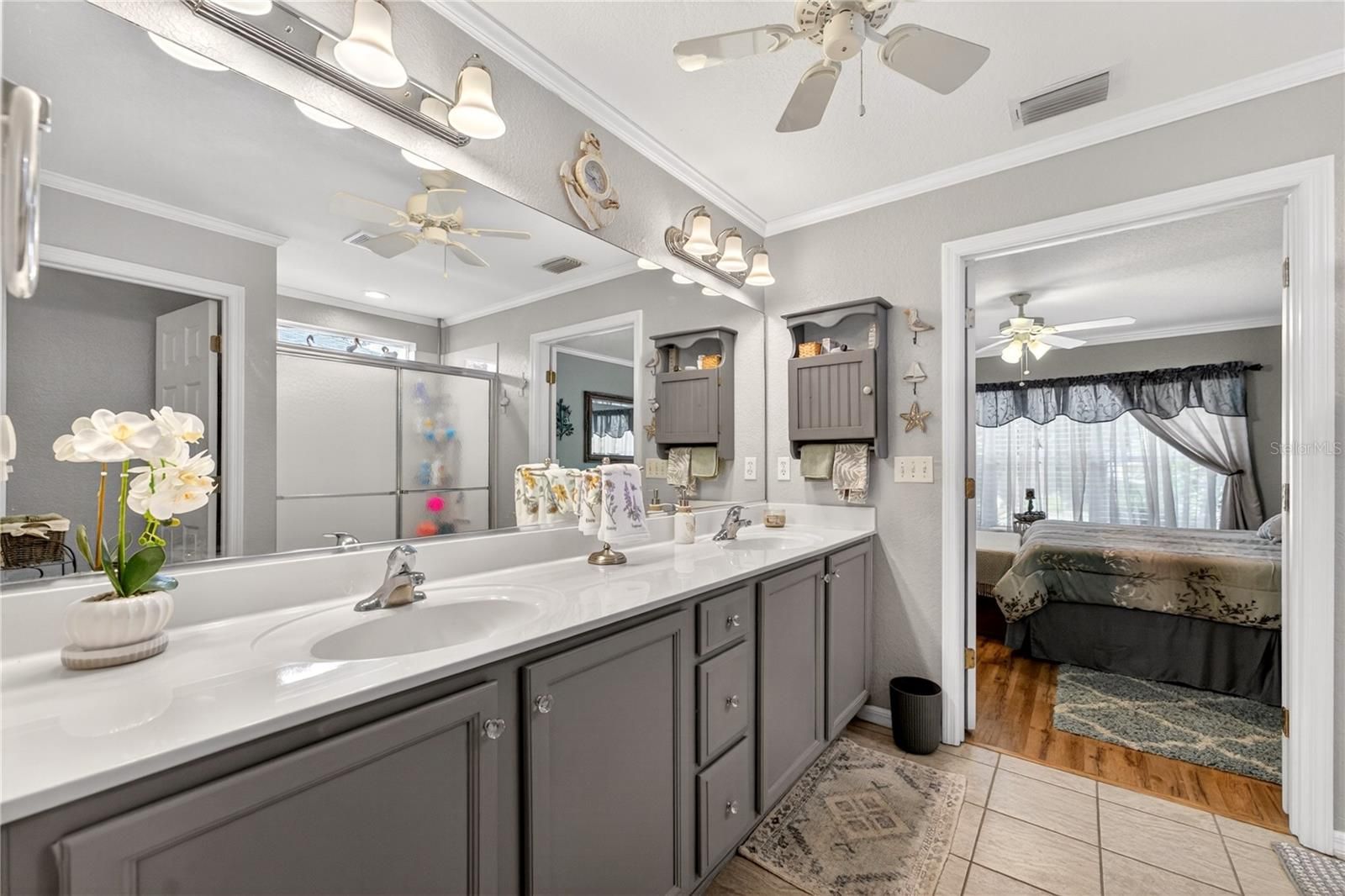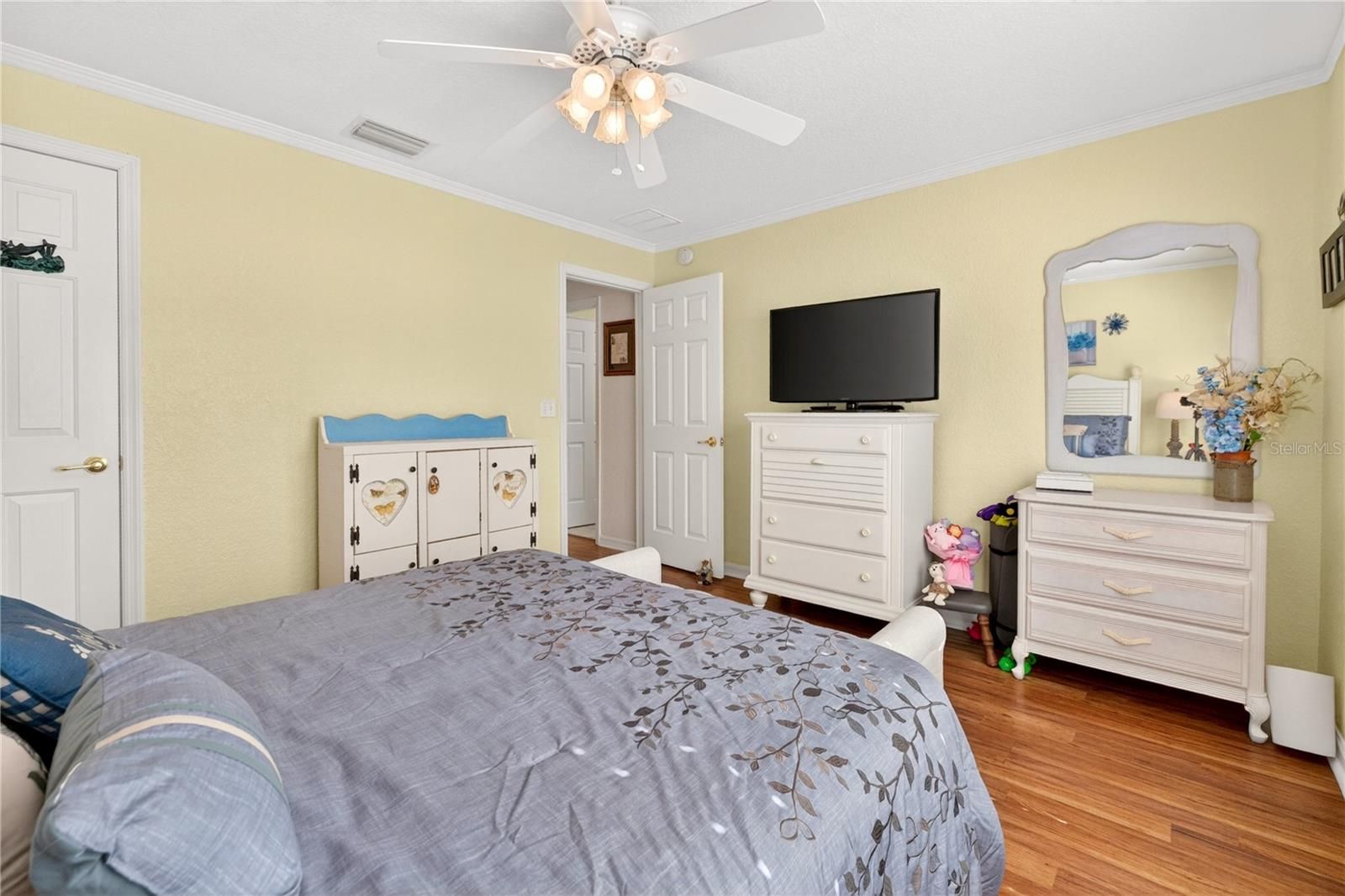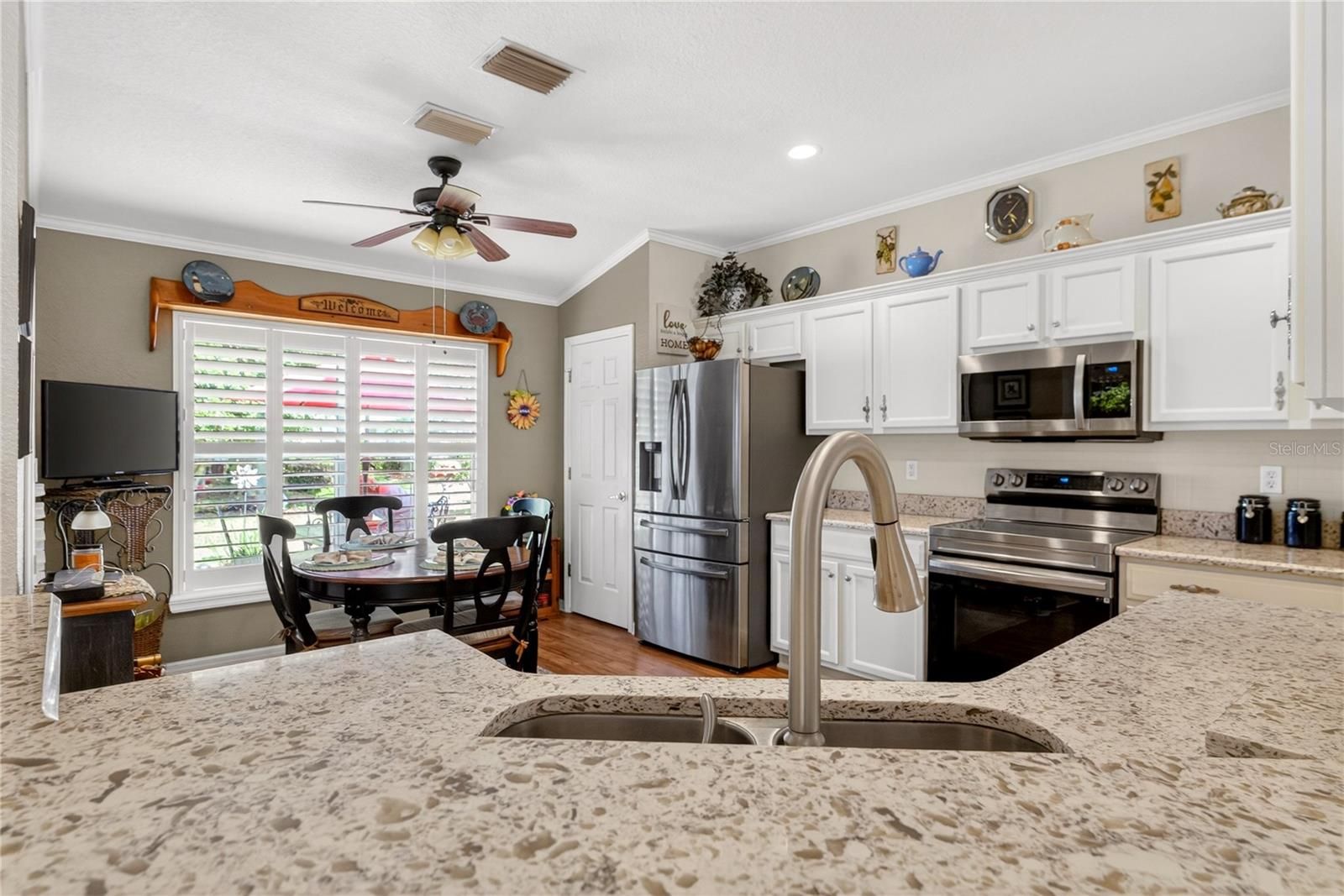 If you are looking for a well taken care of home, this is it. The Beautiful Alydar model truly move in ready, everything has been done. ROOF 2021 ** HEAT PUMP HVAC 2017 with Humidity Control and UV light Extra $3000 ** PLUMBING REPIPE 2017 ** NO CARPET ** NEW LAMINET FLOORING 2015 including the TILE **QUARTZ COUNTERTOP 2020 with NEW SINK ** WOOD CABINETS PAINTED 2025 ** PULLOUTS IN ALL KITCHEN CABINETS ** NEW RECESS LIGHTING THROUGHOUT ** NEW PENDANT LIGHTS ** STOVE & MICROWAVE 2023 ** REFRIGERATOR & DISHWASHER 2025 ** PLANTATION SUTTER THROUGHOUT ** CROWN MOLDING ** INTERIOR HOME JUST ALL REPAINTED 2025 ** NEW BLINDS ON LANAI 2024 ** BIRD CAGE CANVAS REPLACED 2025 ** GARAGE FLOOR EPOXY 2023 ** SINK IN GARAGE INSTALLED IN 2017 ** SCREEN ON GARAGE ** PULL DOWN STEPS TO ATTIC ** ** EXTRA INSULATION ADDED 2022 ** HIDE-A-WAY SCREEN on FRONT DOOR **NEW SPRINKLER SYSTEM ** LANDSCAPE CURBING ** Seller just had the Home Pressure Washed and Windows Washed. Plumbing, electrical and HVAC under a service/warranty contract. Home had an enclosed Lanai, covered Screen Room and open Patio with Pavers. Private Back Yard. This home offers an open floor plan with eat in kitchen, split bedrooms and inside laundry. Call for your showing today.